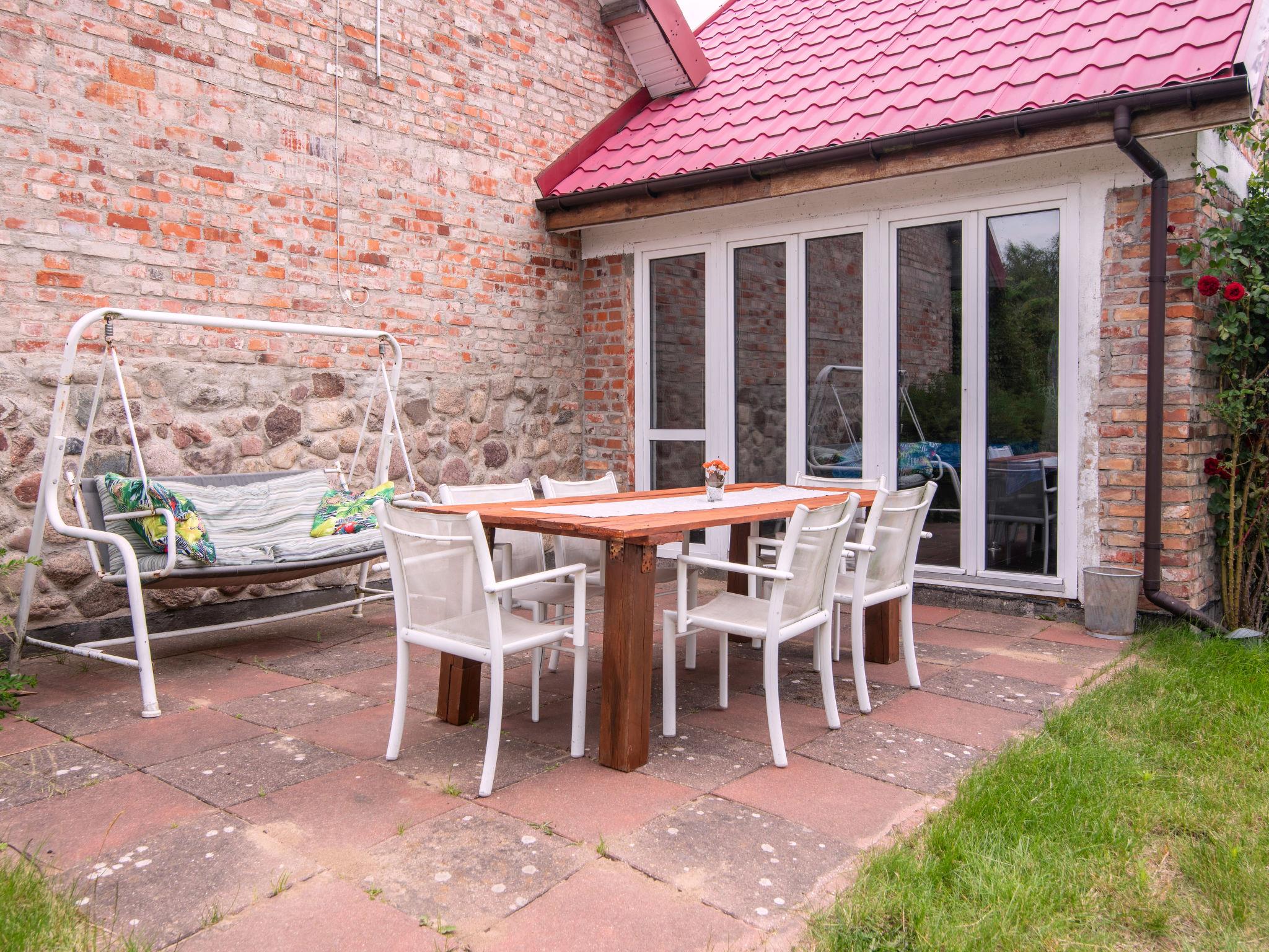 Anielino 9 km from Dobra: Single-family house "Angelino", built in 2007. 10 km from the lake, in the countryside. Private: property 5'000 m2 (fenced), garden 100 m2, meadow 1'000 m2, swimming pool (26 m2, depth 150 - 160 cm, seasonal availability: 01.May. - 30.Oct.). Tennis, volleyball, children's playground (swing). In the house: washing machine, tumble dryer. Available: bicycles (6), boat (extra). Parking on the premises. E-charging station. Shop 10 km, grocery 1.5 km, supermarket 10 km, restaurant 10 km, bus stop 1.5 km, pebble beach 10 km, rocky beach 10 km, indoor swimming pool 30 km, swimming bay 10 km, public bathing area 10 km. Riding stable 5 km. Nearby attractions: Miedzyzdroje 90 km. Well-known lakes can easily be reached: Dobre 10 km. Please note: The owner does not accept any youth groups. Fishing [permit required]. Animals in the neighbourhood. This property is a stylish stone and wood house and sometimes the floors creak (this is the beauty and advantage of this property). There is a key box by the entrance door (self-check-in possible).