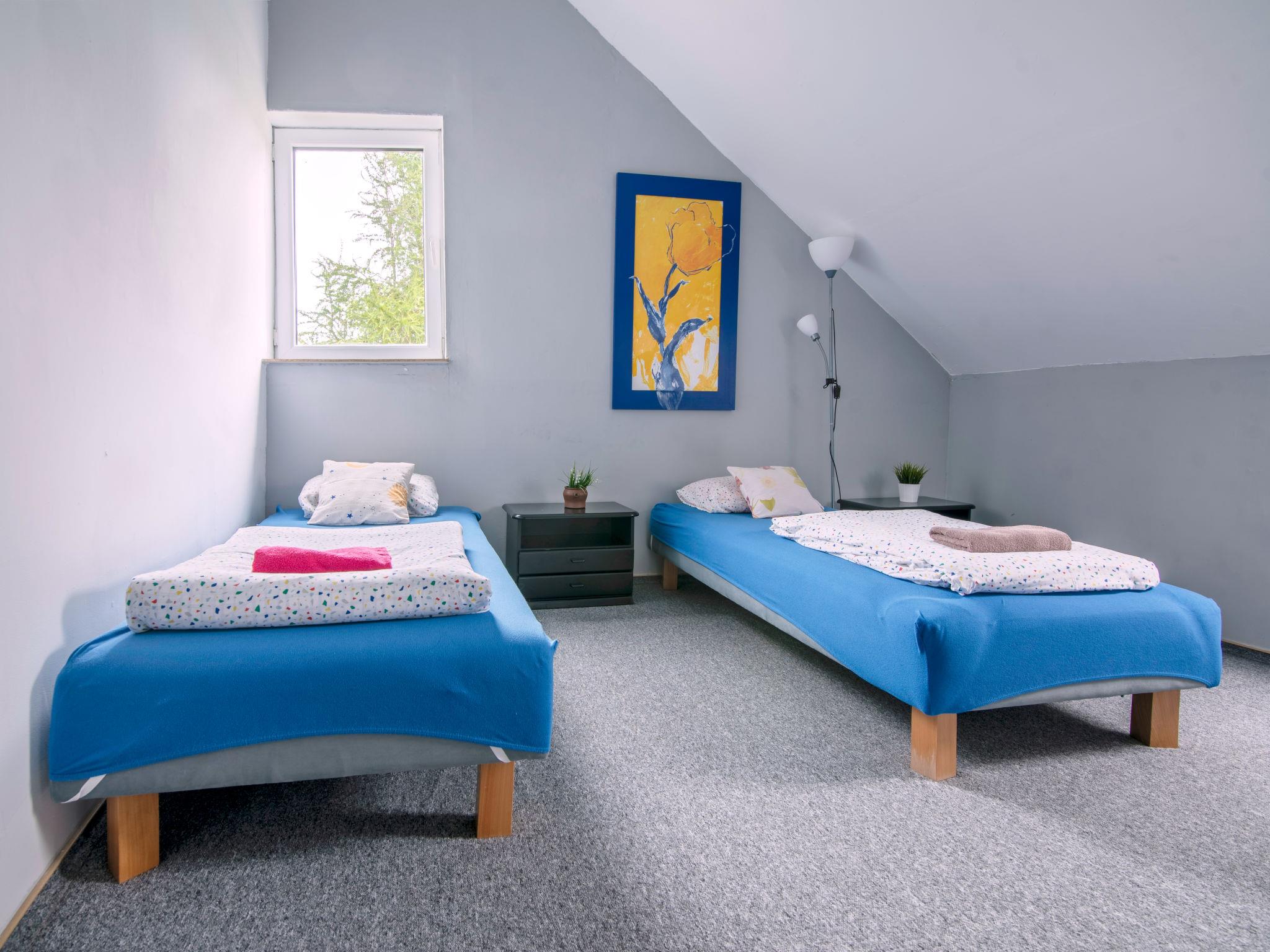 6-room house 250 m2 on 2 levels. Open large living room 80 m2 with Scandinavian wood stove, satellite TV, radio and hi-fi system. Exit to the garden, to the terrace. 1 room 10 m2 with 1 double bed (160 cm, length 200 cm) (1 pers.). Billiard room 25 m2. Open kitchen (oven, dishwasher, 4 ceramic glass hob hotplates, microwave, freezer). Shower/WC. Upper floor: 1 room 20 m2, with sloping ceilings with 1 double bed (160 cm, length 200 cm). 1 room 20 m2, with sloping ceilings with 2 beds (90 cm, length 200 cm). 1 room 16 m2, with sloping ceilings with 2 beds (90 cm, length 200 cm). Bath/WC. Electric heating, wood heating (extra). Terrace 10 m2. Terrace furniture, barbecue, deck chairs (2), box-room. Facilities: logs (free). Internet (WiFi, free). Parking. Please note: maximum 2 pets/ dogs allowed. Smoke alarm. On request: car for 5 pax (50euro/day + fuel). Motorboat (extra paid 200 EUR/day). Smart tennis court. At disposal room with specialized equipment FITNESS supporting weight loss and body sculpting and a room with an automatic washing machine and dryer.