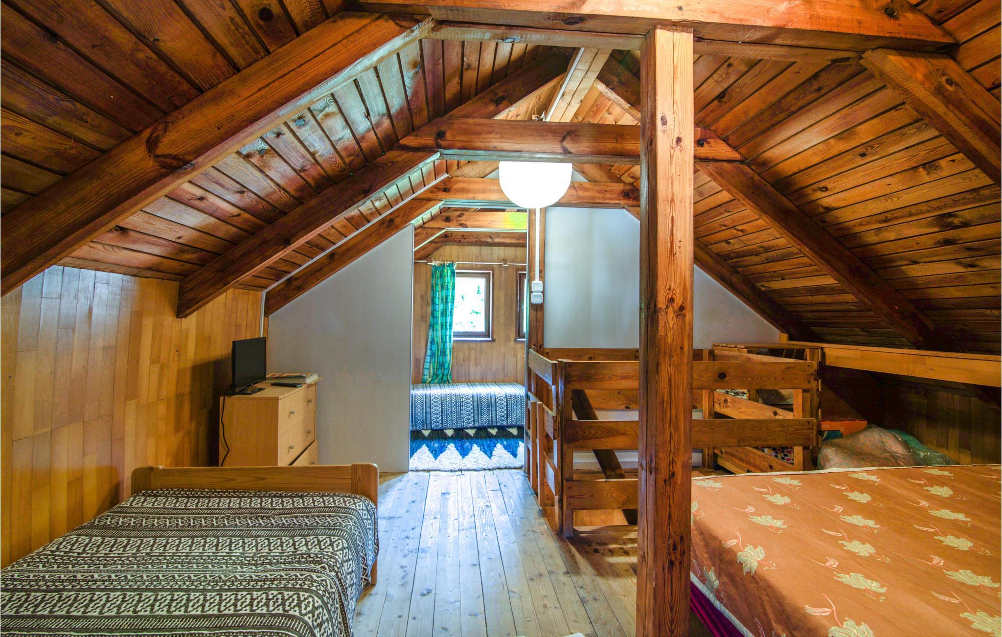 Er du på utkikk etter en god base for en vakker ferie i et innsjørikt område? Ja, da er dette huset det perfekte valget! Boligen ligger bare noen hundre meter fra innsjøen, og her kan alle føle seg hjemme. På grunn av husets opprinnelige karakter skaper treverket inne i boligen og peisen en hyggelig og varm atmosfære. Lag mat sammen på kjøkkenet og nyt deilig mat og solnedgangen med et glass vin på den overbygde terrassen.