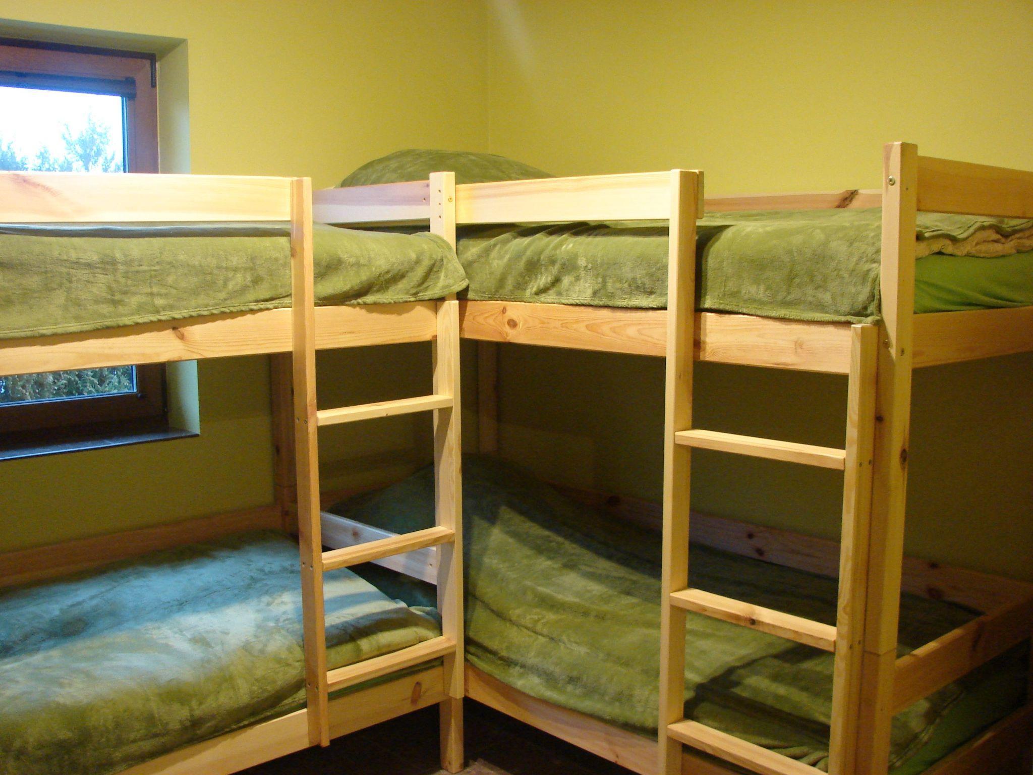 Each cottage consists of a living room with a kitchen, a room with a double bed, a room with two bunk beds and a bathroom.