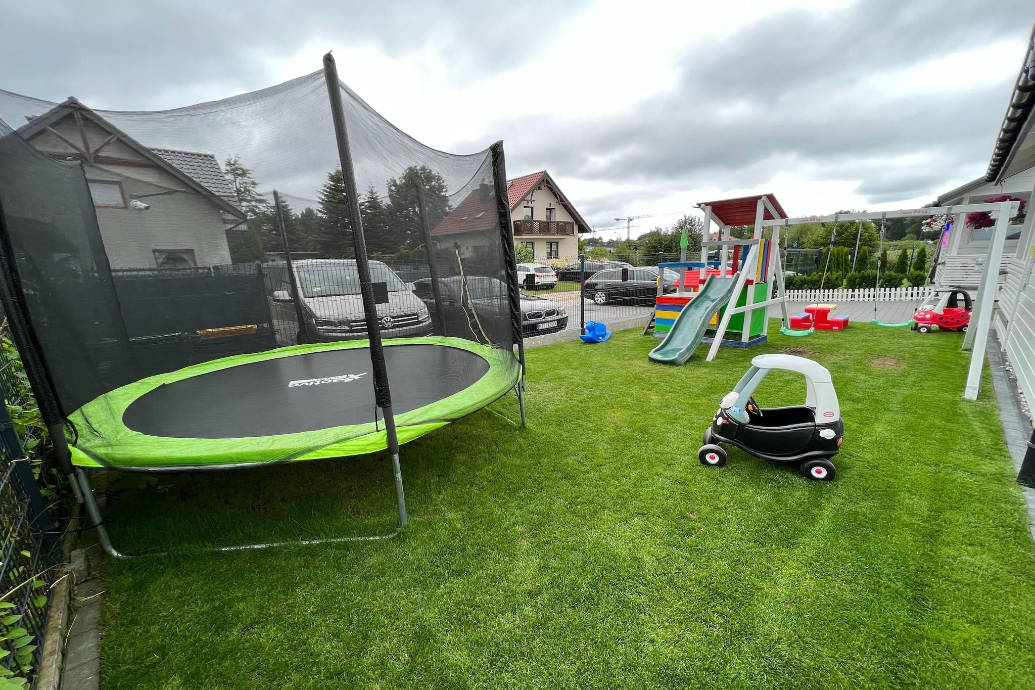 Et intimt feriested (kun 7 feriehus) ligger på et godt vedlikeholdt, inngjerdet område, i et stille, fredelig område, men svært nær sentrum av feriestedet. Noen få skritt til stor butikk, restaurant og kafé. Det er bare litt over 400 meter til den vakre strandstranden.En annen attraksjon er den lokale Bukowo-innsjøen med utleie av vannutstyr. Et en-etasjes, komfortabelt feriehus består av en stue med kjøkkenkrok, 2 separate soverom og et bad med dusj. Stuen har en 2-seters sofa, TV og bord med stoler. I det ene soverommet er det en dobbeltseng, i det andre soverommet er det en køyeseng (3-person - 2-manns seng nede, 1 person oppe). Hytta er utstyrt med klimaanlegg med varme- og kjølefunksjon. Trådløst internett er tilgjengelig. Parkeringsplass rett foran hytta. Ferieanlegget har en attraktiv lekeplass for barn. Prisen for oppholdet inkluderer: sengetøy, vannforbruk, klimaanlegg, internett, parkering, sluttrengjøring. Attraksjoner i nærheten: Områdets største attraksjon er rene, brede og urørte strender som strekker seg fra Dabkowice i vest, gjennom kurstedene Dabki, Bobolin, Darlówko, til ferielandsbyen Wicie i øst. De oppmuntrer til sunne turer og bekymringsløs soling. En sykkelsti går langs hele denne kysten, takket være den kan du enkelt komme deg til og besøke de nærliggende kystbyene. Det er også Lake Bukowo i nærheten - et virkelig paradis for seilere og windsurfing-entusiaster. Ved innsjøen er det leie av vannutstyr og til og med en liten strand. I nærheten av feriestedet er det også en hestegård, som inviterer rideentusiaster til å ri i paddocken og ri i marka. I nabolandet Bobolin er det også en mystisk attraksjon, som er de lokale bunkerne, rester av andre verdenskrig.