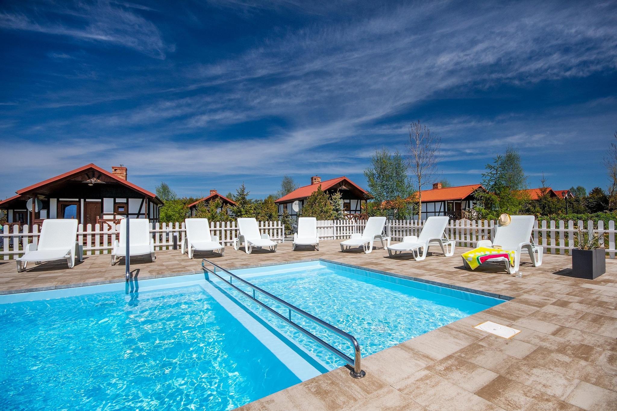 Et familierekreasjonssenter med svømmebasseng og enkel tilgang til strandstranden (vei, gang- og sykkelsti). Butikker og spisesteder er tilgjengelig i kort avstand. Komfortable, enetasjes feriehytter med overbygde terrasser. Hver består av en stue (dobbel utfellbar sofa, bord, TV) koblet til kjøkkenet, et soverom med køyeseng (dobbeltseng nede, enkeltseng oppe) og et bad med dusj. Hyttene er utstyrt med peis (ved inkludert i prisen). Trådløst internett er tilgjengelig. I det inngjerdede området til rekreasjonskomplekset kan gjestene nyte et oppvarmet sommerbasseng (inngjerdet, med et separat plaskebasseng for barn), en attraktiv lekeplass, grillhytter, en parkeringsplass og en idrettsplass. Det er også en restaurant hvor du kan bestille både frokost og lunsj. Prisen for oppholdet inkluderer: sengetøy, håndklær, strøm- og vannforbruk, ved, sluttrengjøring, internett, parkering, opphold med hund (maks. 1). Darlowo er et feriested med et rikt gastronomisk tilbud og en rekke attraksjoner for gjester som slapper av her. Sammen med kystdistriktet (Darlówko) skaper de et sjarmerende sted å tilbringe en attraktiv ferie. Et fantastisk mikroklima, en ren, bred strand og attraksjonene i den gamle middelalderbyen. Darlowo venter på turister hele året. I tillegg til vakre strender, er Darlówkos hovedattraksjoner: fyret, skyvebroen, havnen og mange andre interessante steder. Mange arrangementer arrangeres i sommersesongen. I Darlówko er det en marina hvor du kan leie flytende utstyr og en havn som cruiseskip seiler fra. Det er også et attraktivt badeland.