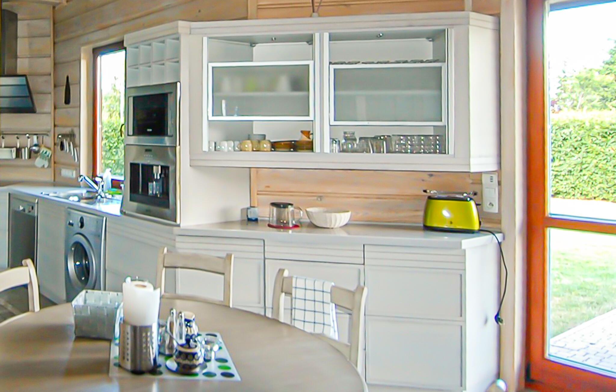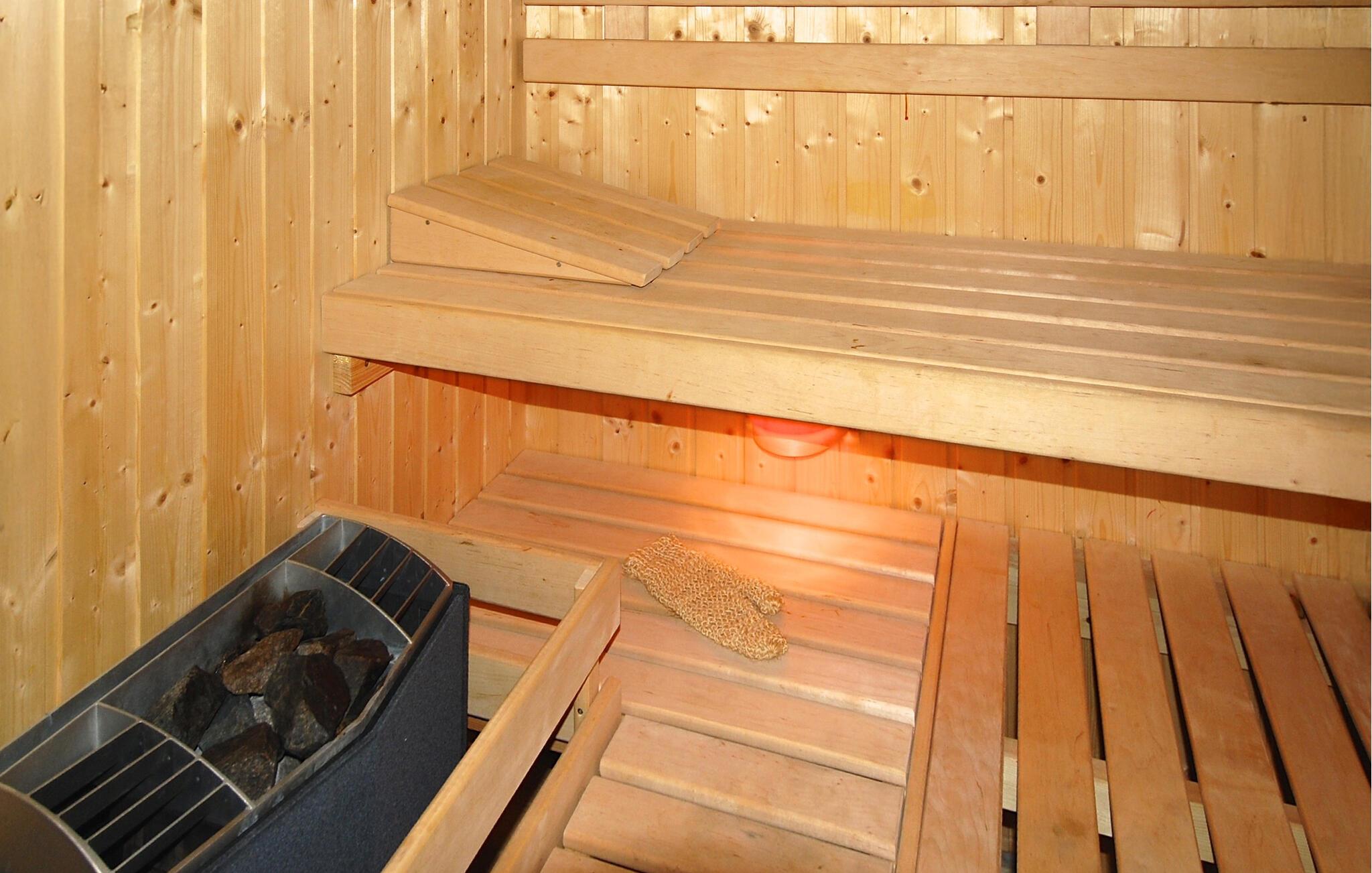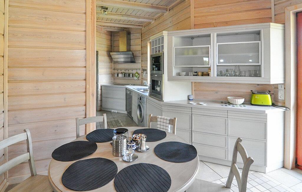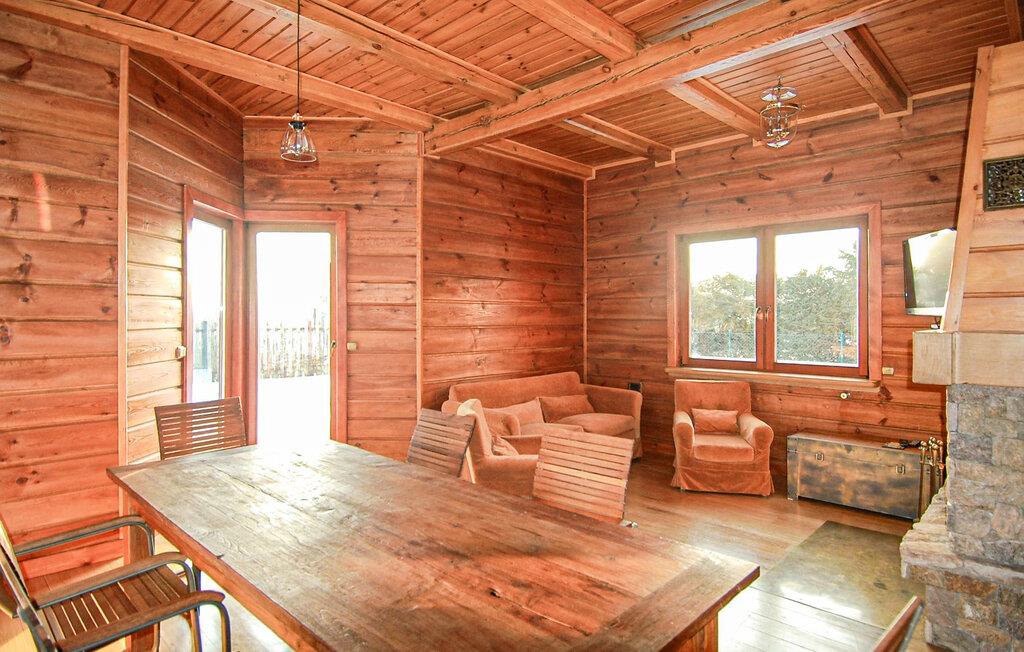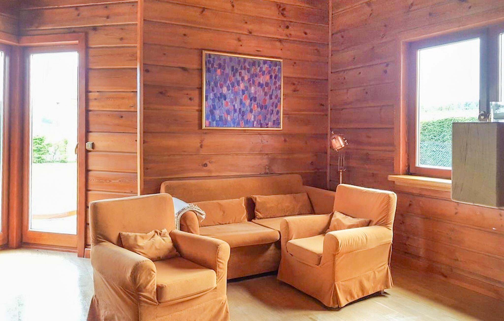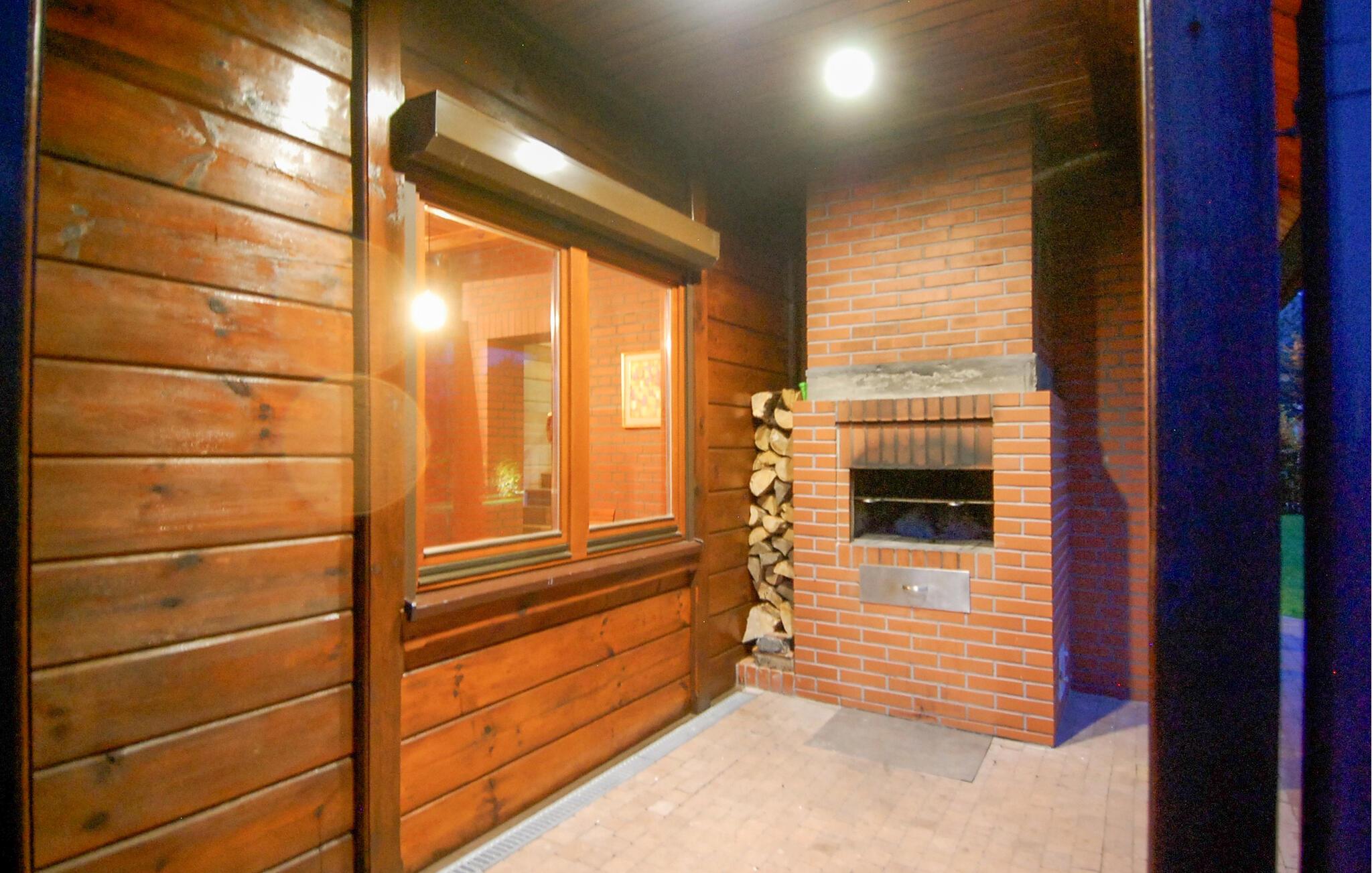 Stig inn og opplev et feriehus som umiddelbart gir en følelse av trygghet takket være den varme trearkitekturen og mye naturlig lys. Den åpne stuen ønsker deg velkommen med komfortable lenestoler, en sofa og en peis i naturstein, som skaper en koselig atmosfære på kjøligere kvelder. Len deg tilbake, les en god bok eller tilbring tid sammen foran TV-en. Bruk det store spisebordet til lange måltider eller koselige spillkvelder. På det lyse kjøkkenet med god oppbevaringsplass kan du enkelt tilberede favorittrettene dine. Etterpå kan du unne deg en stund i badstuen og legge hverdagen bak deg.