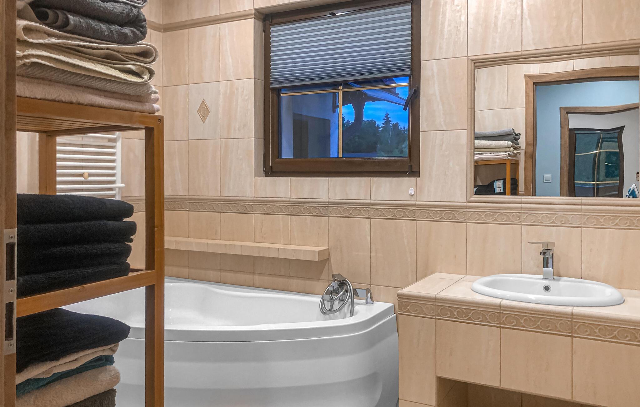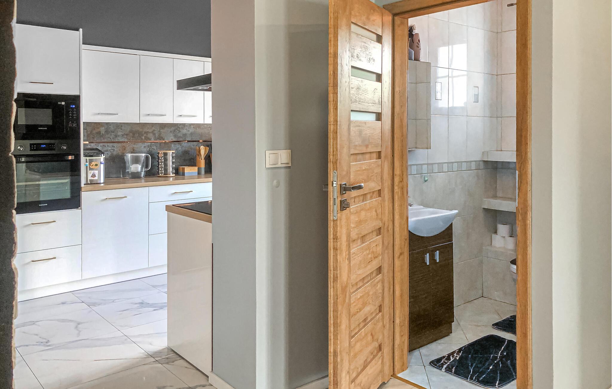 Dra nytte av de mange sykkel- og turstiene som går gjennom det kuperte landskapet og gir deg stadig skiftende utsikt over innsjøer, åkrer og små landsbyer. Debrzno-sjøen ligger bare noen få minutter fra huset, og er perfekt for bading, fiske eller en båttur. Legg hverdagen bak deg mens du sitter ved bredden og lytter til vannets klukken eller bare nyter solnedgangen. Utforsk Debrzno, en sjarmerende liten by med en begivenhetsrik historie, regional mat og varm gjestfrihet.
