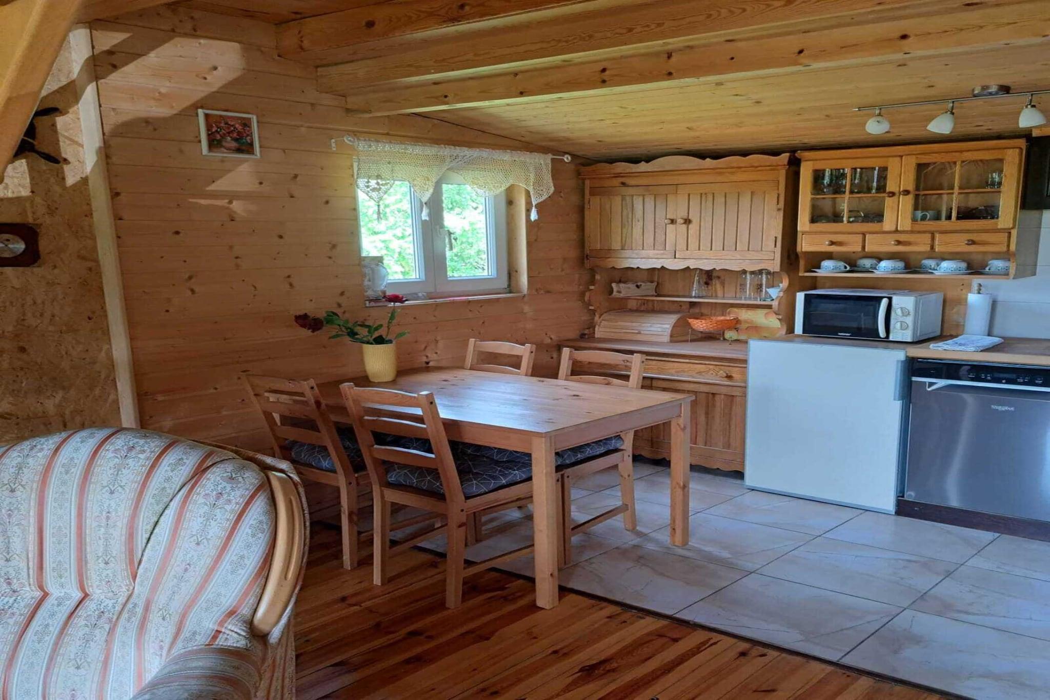 Koselig trehytte med peis på en vakker, romslig hage/naturtomt nær Koscierzyna. Ideell for familier med hunder. Nyt freden og slapp av i hengekøyen. Og liker du det mer aktivt, kan du utforske området på en sykkeltur eller ro ut på sjøen i en robåt. Regionen kalles også det kasjubiske Sveits og byr på et vakkert skog- og innsjølandskap. Spesielt attraktivt for naturelskere og de som søker avslapning Aktiviteter i nærheten: Besøk damplokomotivmuseet i Koscierzyna. Byen har også en vakker kjerne med et hovedtorg og fine restauranter. Det er til og med musikkfestivaler om sommeren. I Lubiana har keramikkfabrikken med samme navn et lagerutsalg. Andre severdigheter er i Stezyca, omtrent 20 km unna (det lengste brettet i verden, et opp-ned hus).