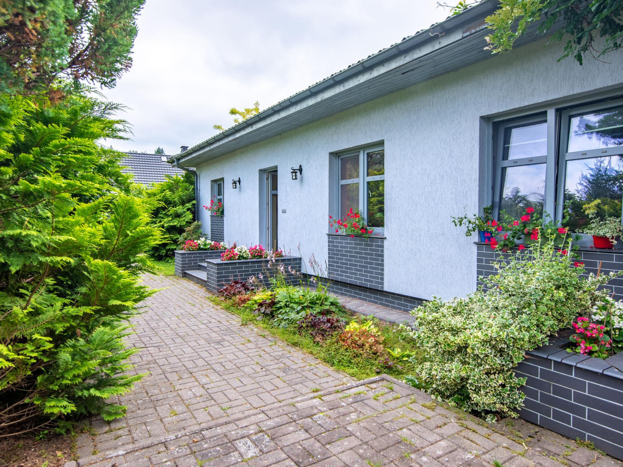 The house is located at the edge of the nature reserve "Drawski Park Krajobrazowy", in a quiet position between the two lakes Krosino and Okole Wielkie and by the Drawa river. 2-family house "Gleboczek 21", built in 2008, surrounded by trees. In a quiet, sunny, elevated position, along the wooded area, 10 m from the lake, 200 m from the river, in the countryside. For shared use: property 3'500 m2 (fenced), garden lawn and trees. Arbour, children's playground (swing). Private: terrace, barbecue. In the house: trampoline, washing machine, tumble dryer. Available: canoe, boat (extra). Motor access to the house (100 m via unmade road). Parking at the house on the premises. Grocery 5 km, supermarket 12 km, restaurant 5 km, bus stop 5 km, railway station 12 km, grass beach "mala przy dzialce" 10 m. Tennis 5 km, riding stable 2 km. Please note: car recommended. Fishing [permit required]. The owner lives in the same residence. The owner has a dog. Please on the property have the dog on a lead. It is possible to rent canoes (extra). Numerous discovery trails are near the house. The second sandy beach with a large jetty on Lake Krosino at the mouth of the Drawa to the lake (approx. 300 m from the facility). DE channels on TV.