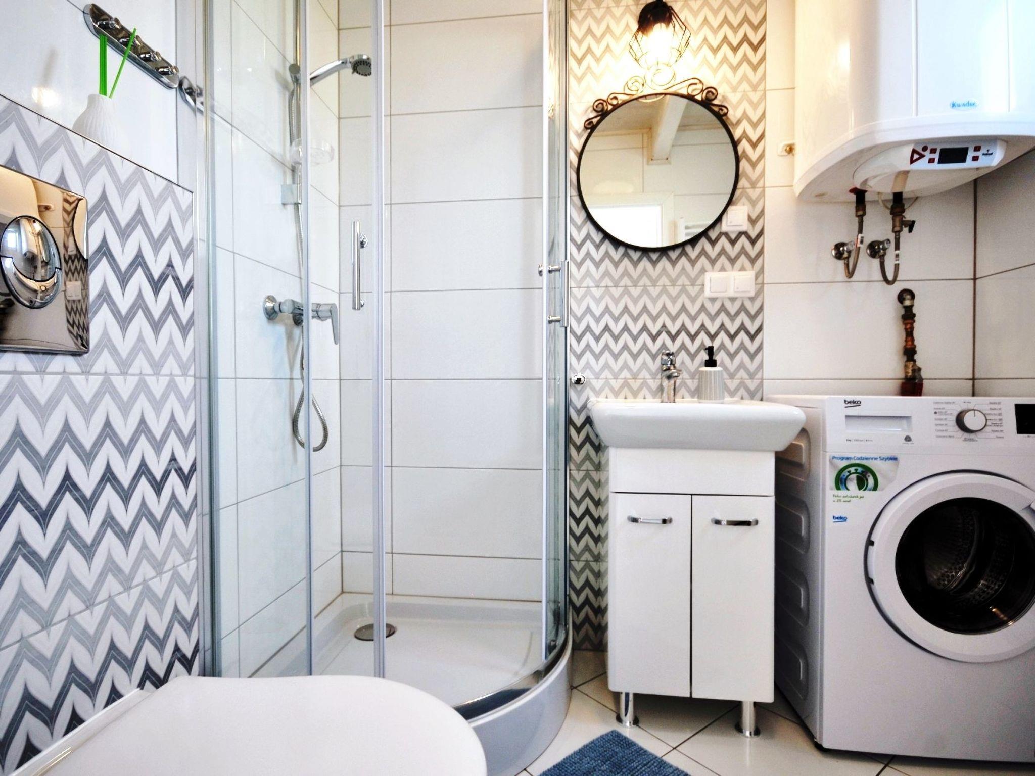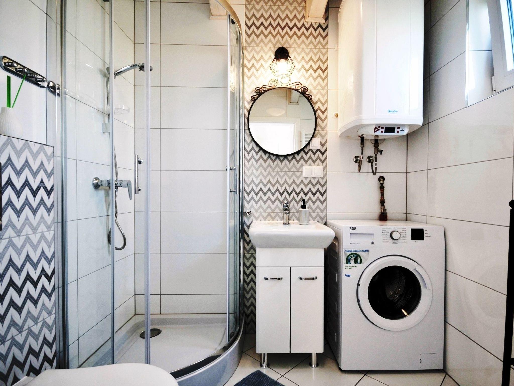 Bathroom 1 , Other bathroom equipment : washing machine, toilet paper, soap, towels