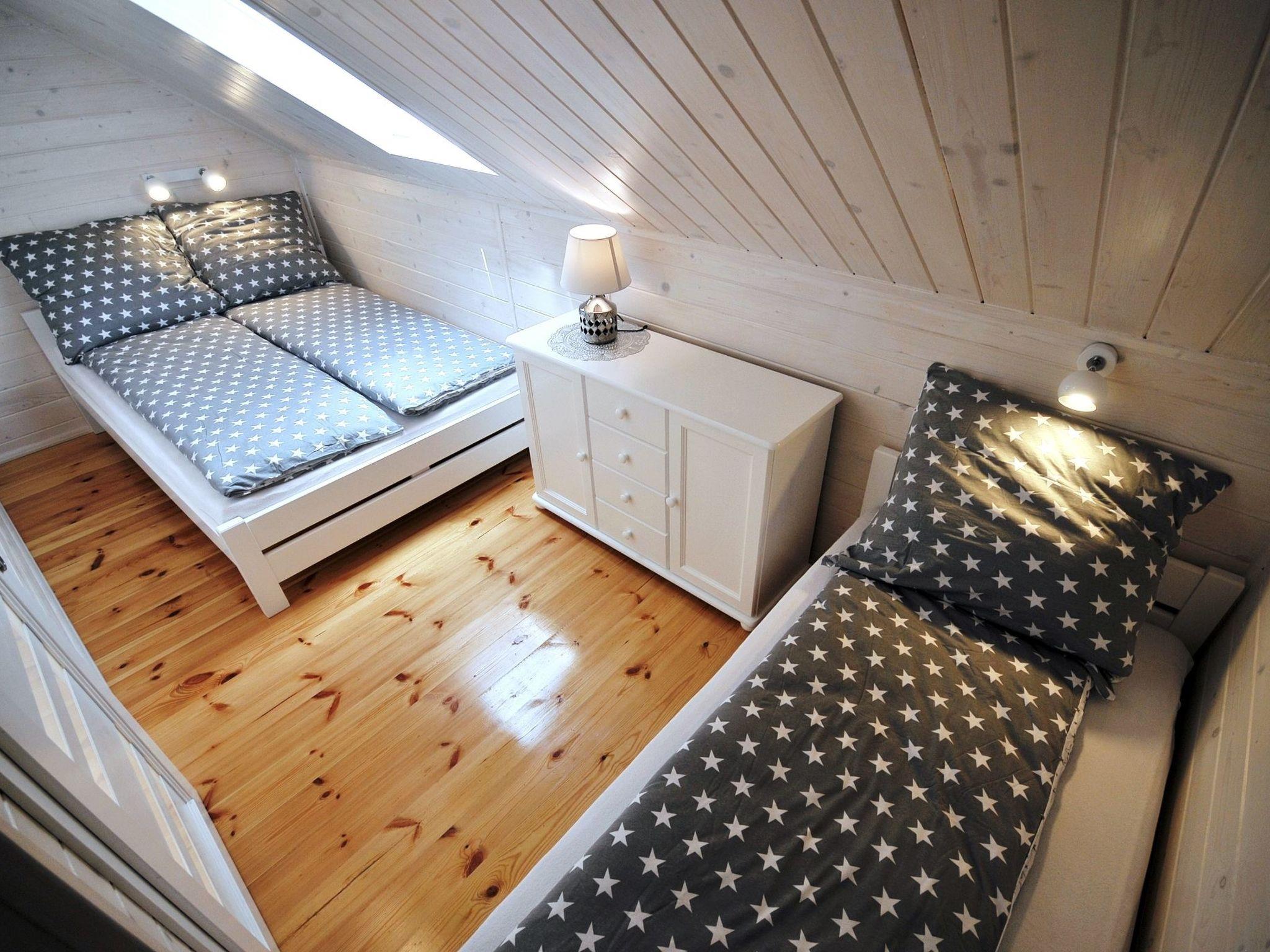 Our offer:- Area of a cottage: approx. 45 m2 / For 1 to 6 people- 2 bedrooms (each with a double bed and a single bed)- Spacious living room with a sleeping possibility for 2 people-