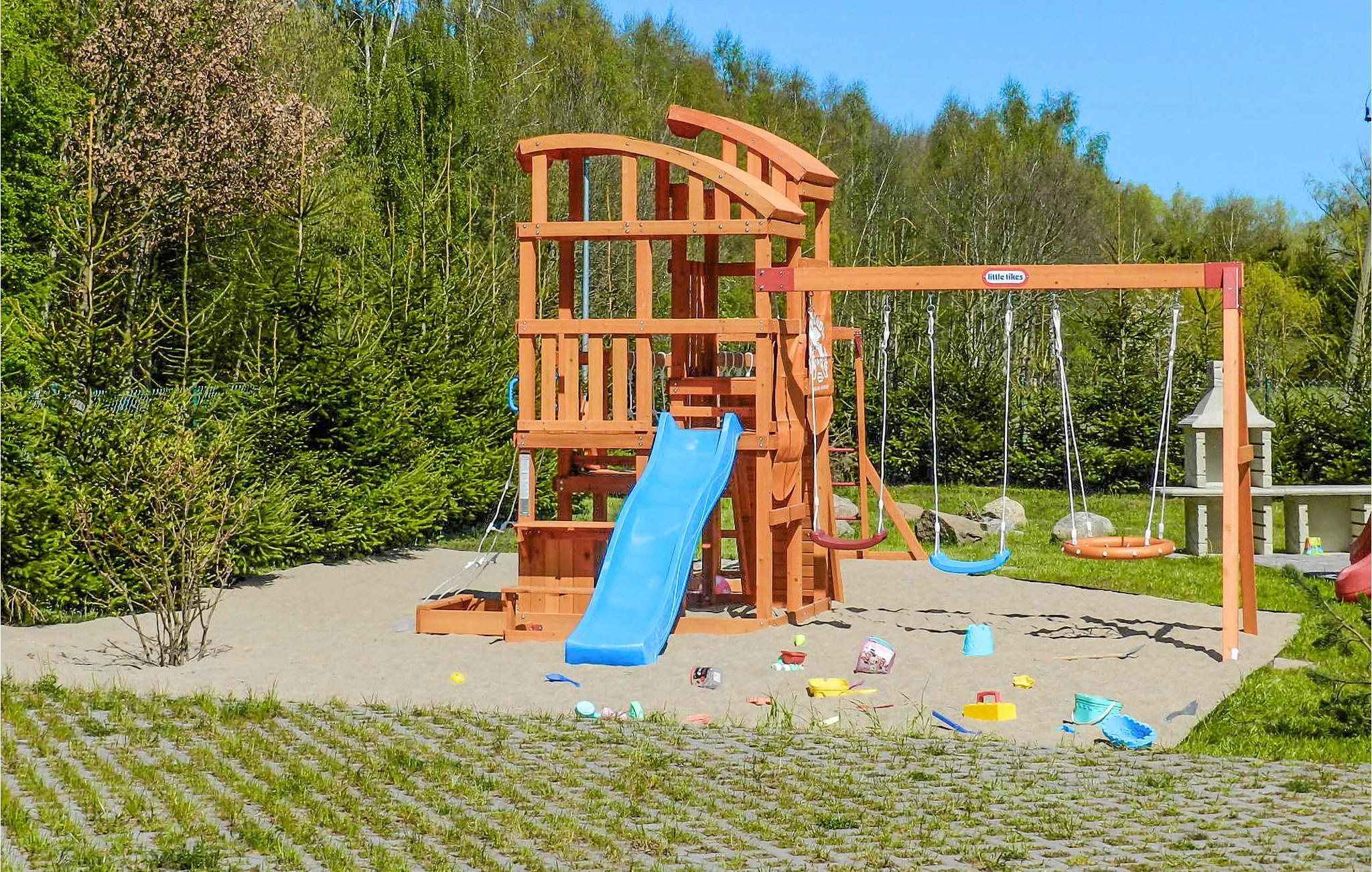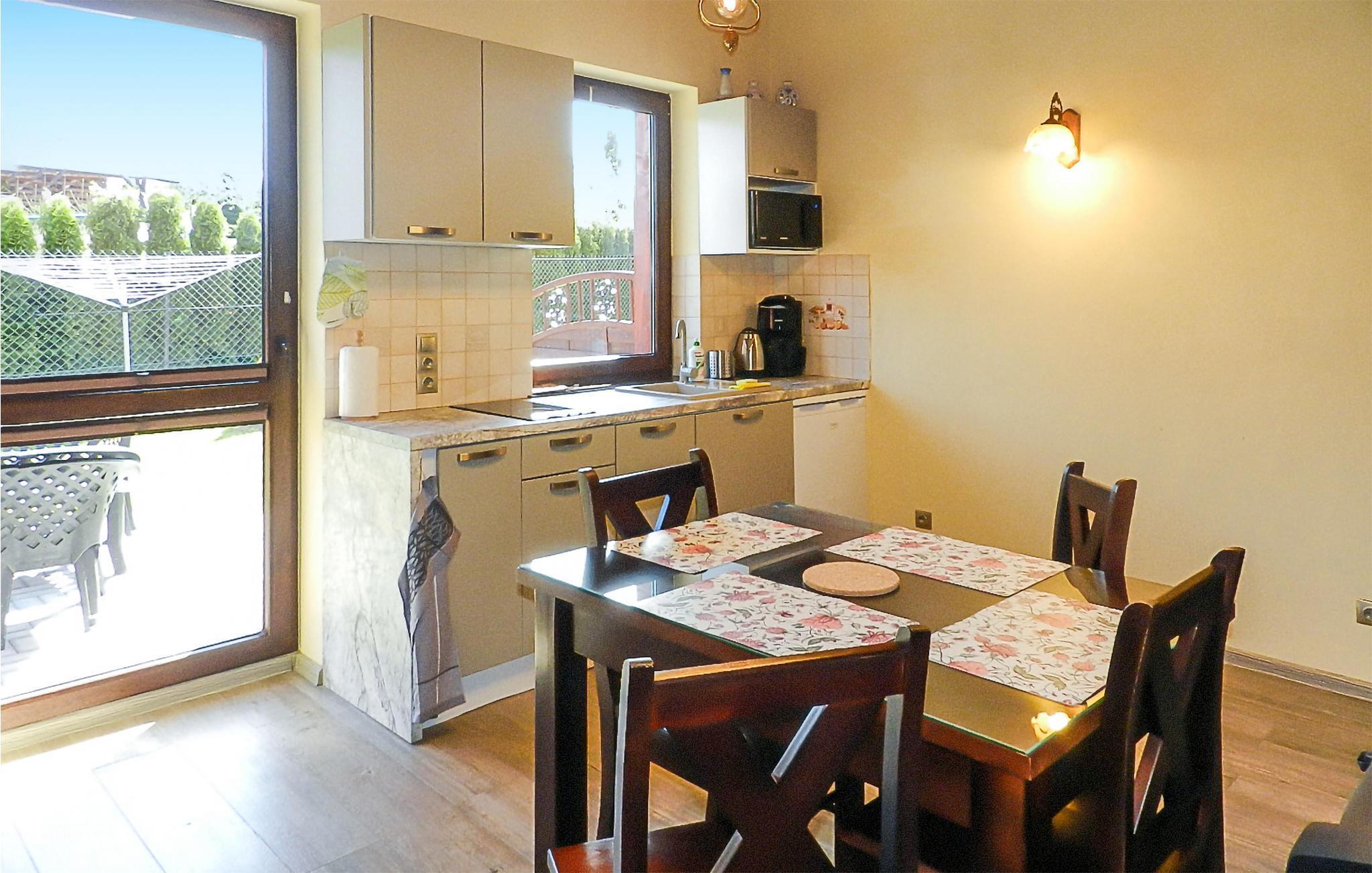 Den innbydende leiligheten er det ideelle stedet for en ferie med barn. Den har en idyllisk beliggenhet ved bredden av Lebsko og tilbyr alt familien trenger. Med sitt koselige interiør, som får et varmt uttrykk av de mange treelementene, er leiligheten perfekt for en avslappende ferie. Etter en begivenhetsrik dag kan du sette deg til rette i de hjemmekoselige rommene og nyte tiden sammen. I det felles bassenget kan du svømme noen runder uansett vær.
