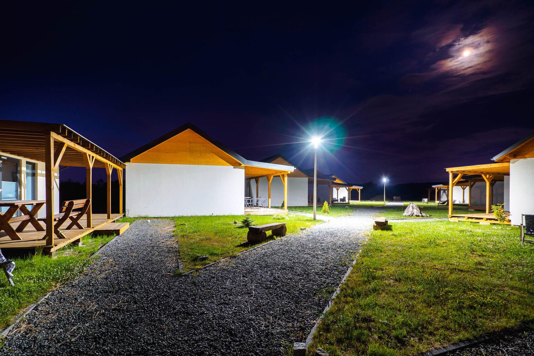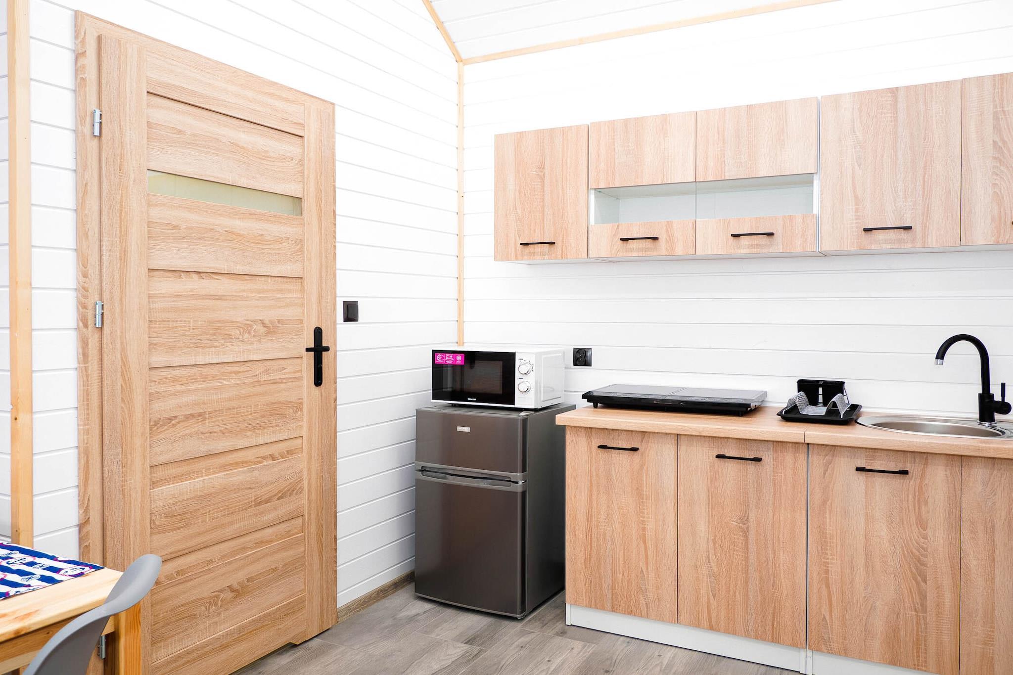 Senteret ligger i utkanten av sommerlandsbyen Jezierzany. Det er en kafé og restaurant på stedet, hvor du kan bestille både frokost og lunsj. Omtrent 1,5 km til den vakre strandstranden. 500 m til Lake Wicko. Nye enetasjes trehus. Hver har 2 separate soverom (arrangementet av senger kan konfigureres fritt: 1 dobbeltseng eller 2 enkeltsenger på hvert soverom), et bad, en stue med en kjøkkenkrok. Trådløst internett er tilgjengelig. Det er lekeplass og parkeringsplass på inngjerdet område. Det er mulig å leie fiskeutstyr på stedet. Prisen for oppholdet inkluderer: sengetøy, strøm- og vannforbruk, parkering, internett. Eieren av ferieanlegget har en fiskebåt og kan levere fersk fisk fra sjøen på forespørsel. Jezierzany er en rolig, liten ferielandsby som ligger på den sentrale kysten, nær Jaroslawiec, Darlowo og Ustka. Det fantastiske klimaet og landskapet, furuskogene, det klare vannet i havet og en klippe ved havet er fordelene som gjør at dette stedet tiltrekker seg mengder av turister hvert år. Det er også mange interessante attraksjoner som venter på turister her, som vil diversifisere deres kystferie. En rik gastronomisk base tilbys av nærliggende Jaroslawiec, 3 km unna. Attraksjoner i området: Stranden ved sjøen er ideell for turister som liker å sole seg på urørte steder. På stranden kan du se fargerike fiskebåter og finne gyllen rav. Etter den nylige renoveringen er stranden veldig bred og vakker. Et interessant monument i Jaroslawiec er fyret. Lykten ble bygget av rød og glassert murstein i sirkulær form, hver etasje er fremhevet av en dekorativ gesims. Balkongen, fra en høyde på 33 meter, har utsikt over havet og to store kystsjøer.