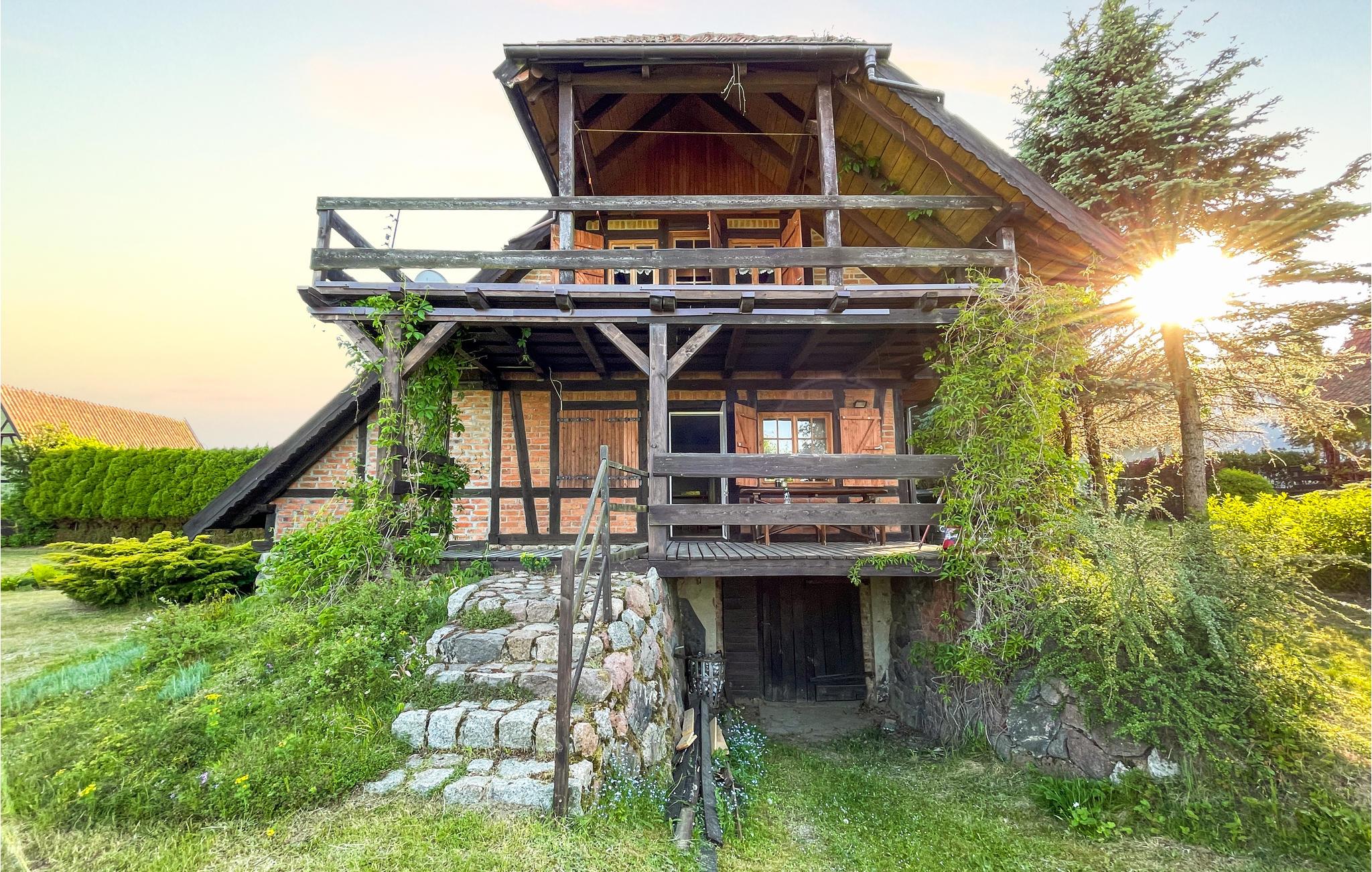I dette vakre, komfortable og moderne feriehuset kan du unnslippe hverdagens kjas og mas og slappe av virkelig godt. Det er innredet med stilige møbler. Det er en peis i stuen, som du kan tilbringe mange koselige øyeblikk foran. Huset ligger på en stor, skogkledd og åpen naturtomt i nærheten av en innsjø med en stille sone (motorbåt forbudt). Fra den vakre terrassen har du en flott utsikt over en innsjø og skogen bak den. For de yngste i familien er det en huske, en sandkasse, en barnestol og en barneseng. En kano kan leies. Transport fra flyplassen tilgjengelig på forespørsel mot et gebyr.
