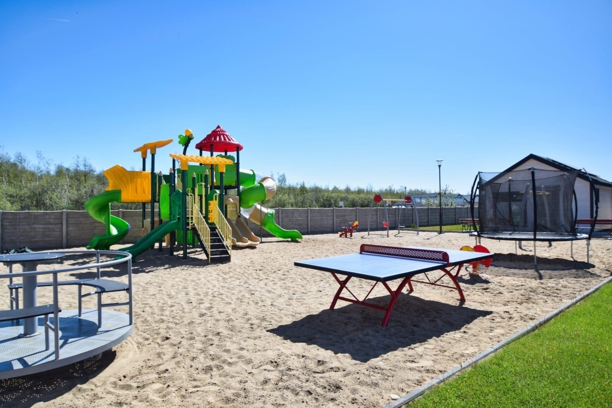 Første etasje: (åpent kjøkken(komfyr med kokeplater(komfyr med 2 kokeplater, induksjon), vannkoker, mikrobølgeovn, kjøleskap med fryser), Stue/spisestue(dobbel sovesofa, TV(flatskjerm)), soveværelse(enkeltseng, enkeltseng), bad(dusj, håndvask, toalett)) Resepsjonen, Internett-tilgang, Parkering, Bordtennis, Lekeområde, Plen, babybadekar, vaskemaskin(deles med andre gjester, betalt), oppvarming(elektrisk), terrasse, hage(privat, 25 m2), hage(deles med andre gjester, inngjerdet), hagemøbler, solsenge, grill(trekull), trampoline, sandkasse(deles med andre gjester), sklie(deles med andre gjester), høy barnestol, Hagebu, Huskestativ, baby crib(paid)