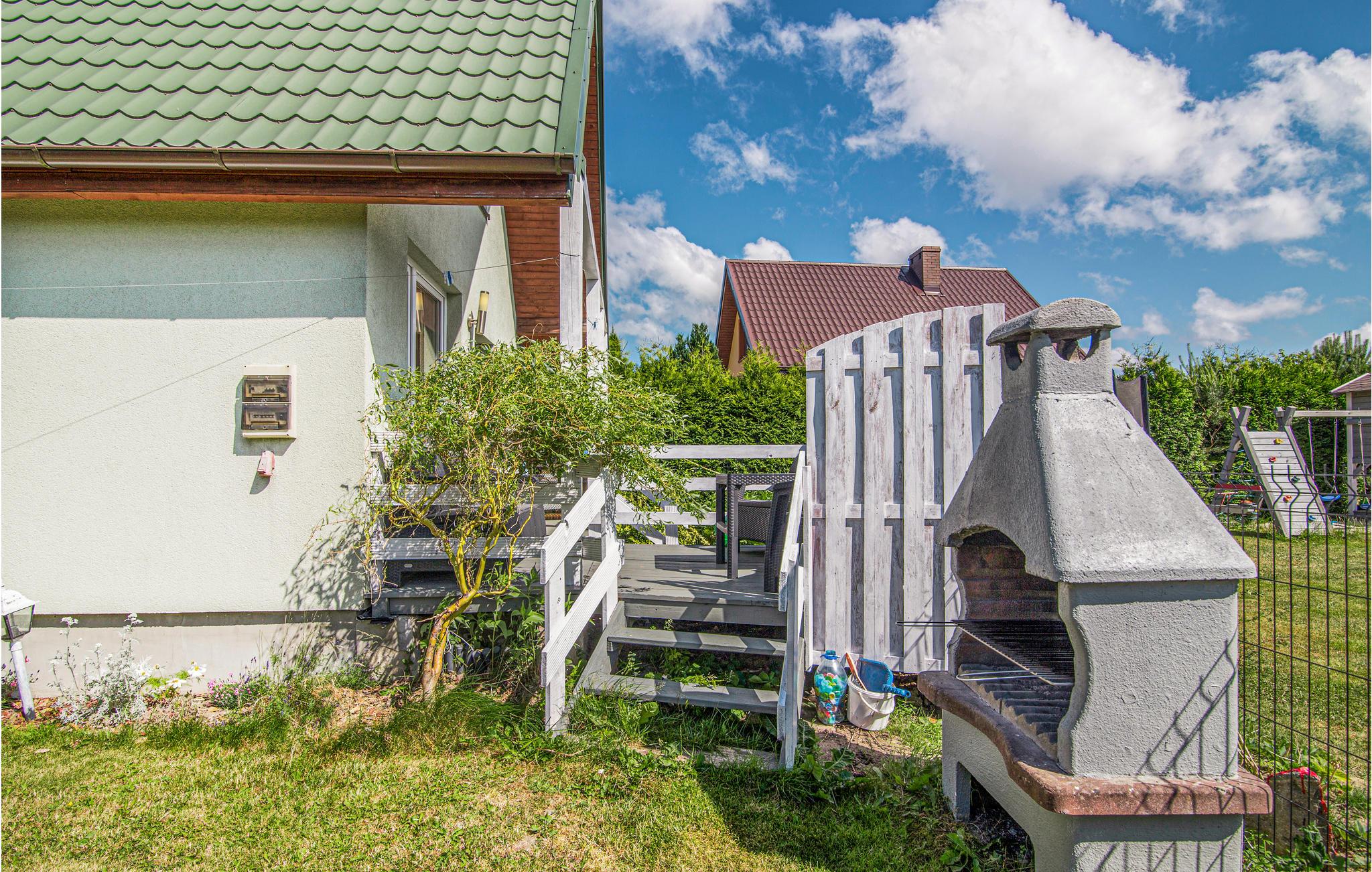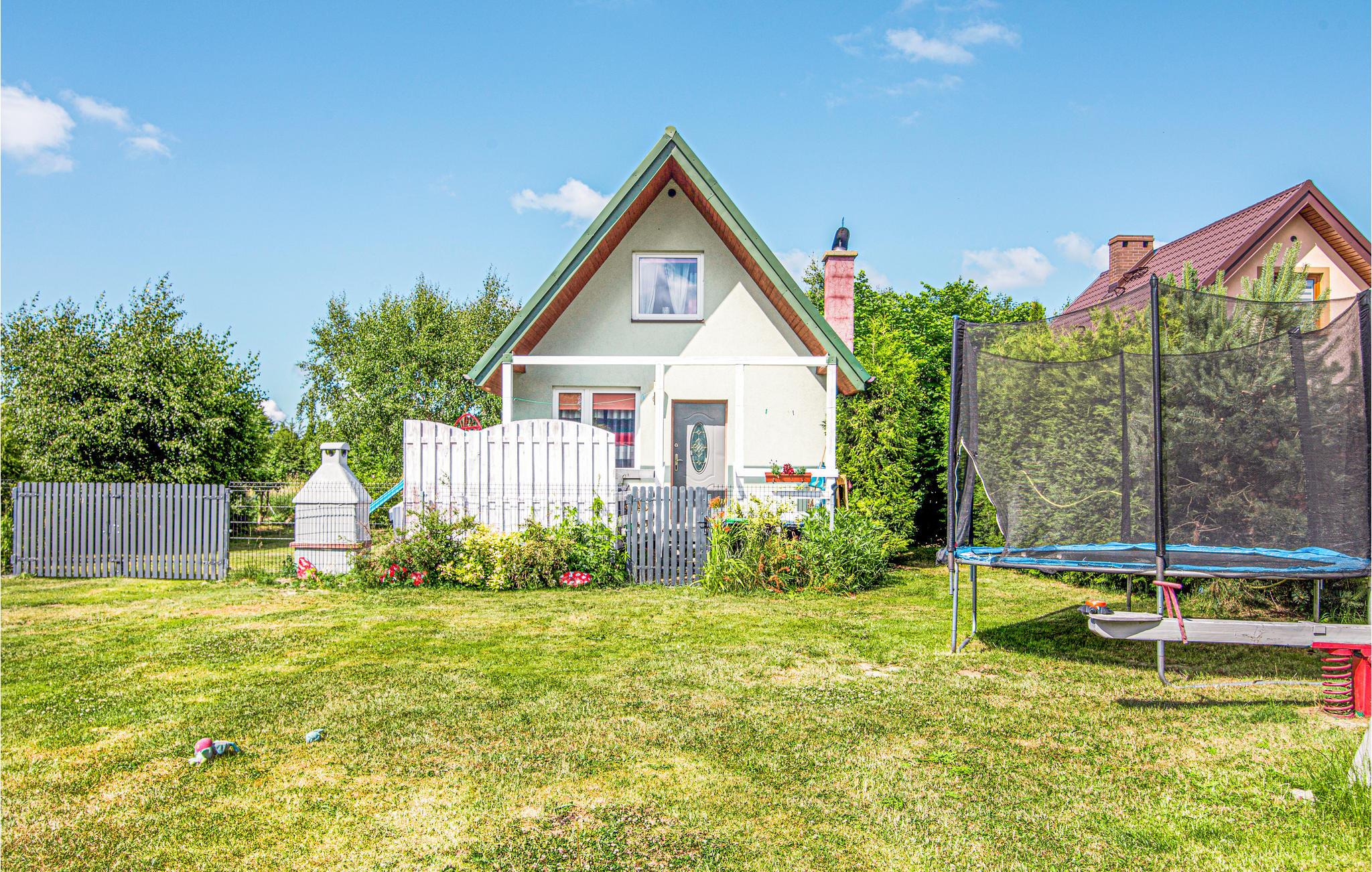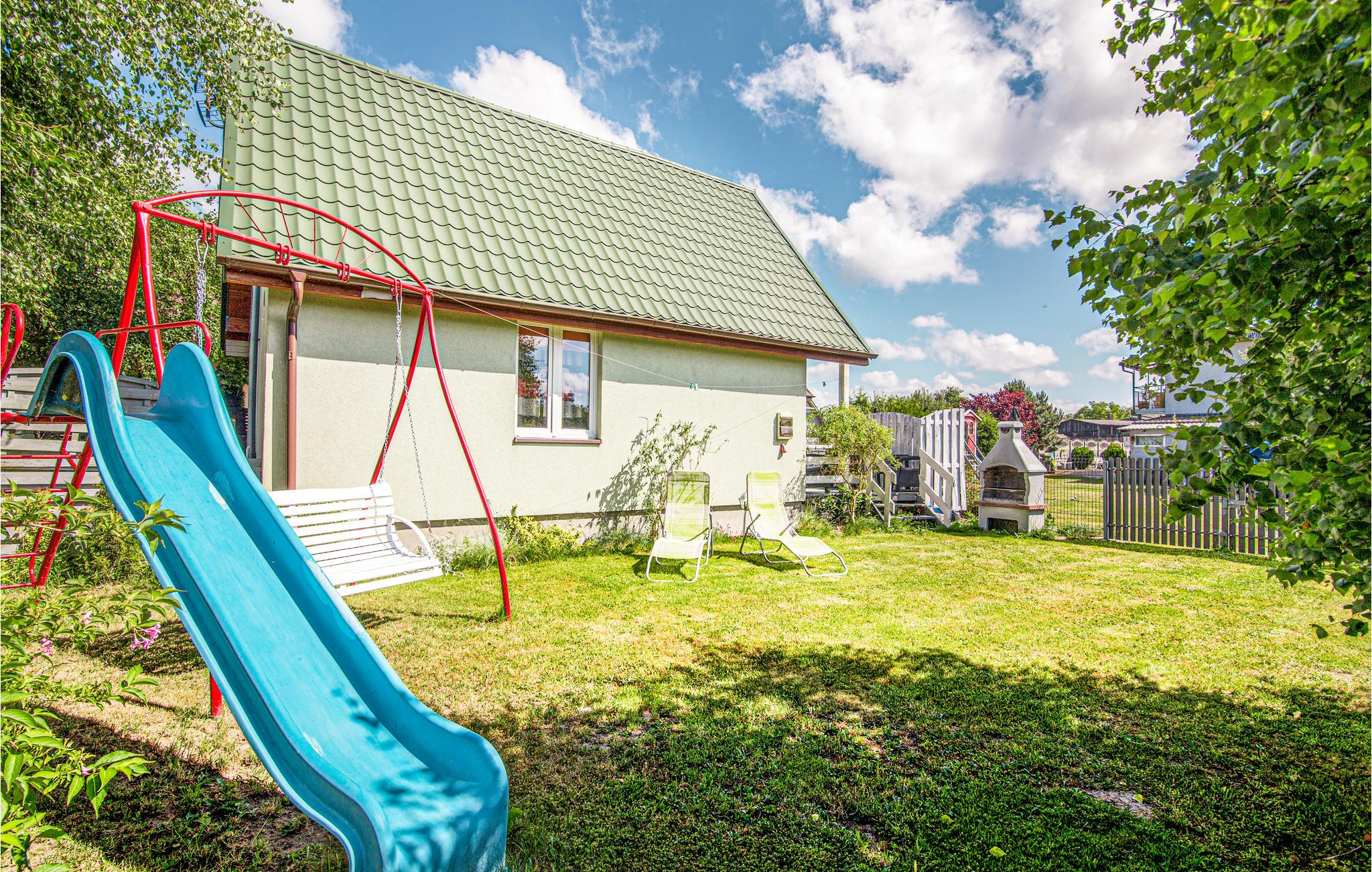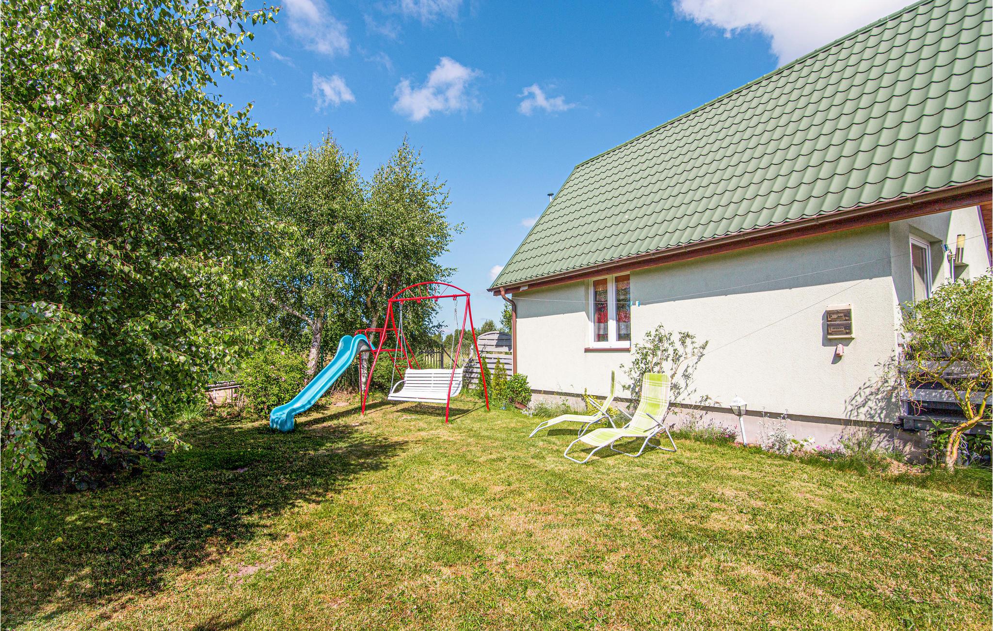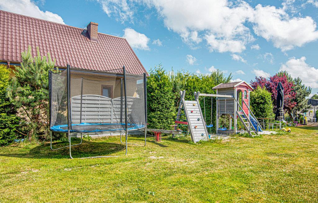 Huset ligger på en egen tomt som deles med andre bygninger. Gjestene har tilgang til en lekeplass, en sandkasse og en huske. På den grønne plenen kan du nyte solen eller slappe av på solsengene. Et eget gjerde sørger for sikkerheten til barn og kjæledyr som ønsker å leke ute. Ved siden av terrassen er det en grill, slik at du kan tilberede deilige grillretter. Feriehuset er praktisk innredet og godt utstyrt. Peisen inviterer deg til koselige kvelder på sofaen.