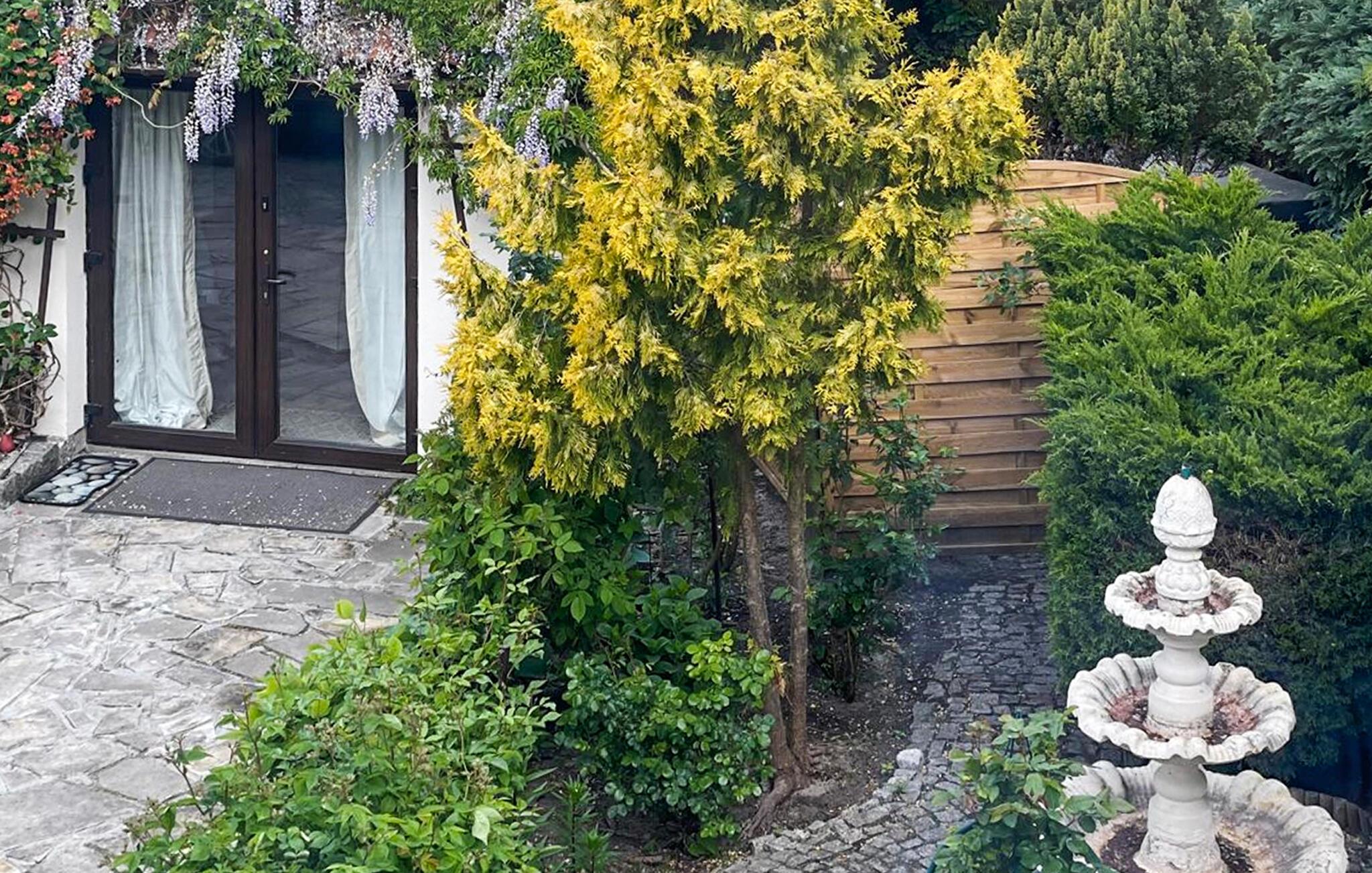 Tilbring solfylte timer i den lune hagen. Slå deg ned på den lille treterrassen eller finn et skyggefullt sted. Nyt frokosten i frisk luft, og slapp deretter av på den polstrede hagestolen ved den naturlige dammen eller les en bok omgitt av blomstrende planter.