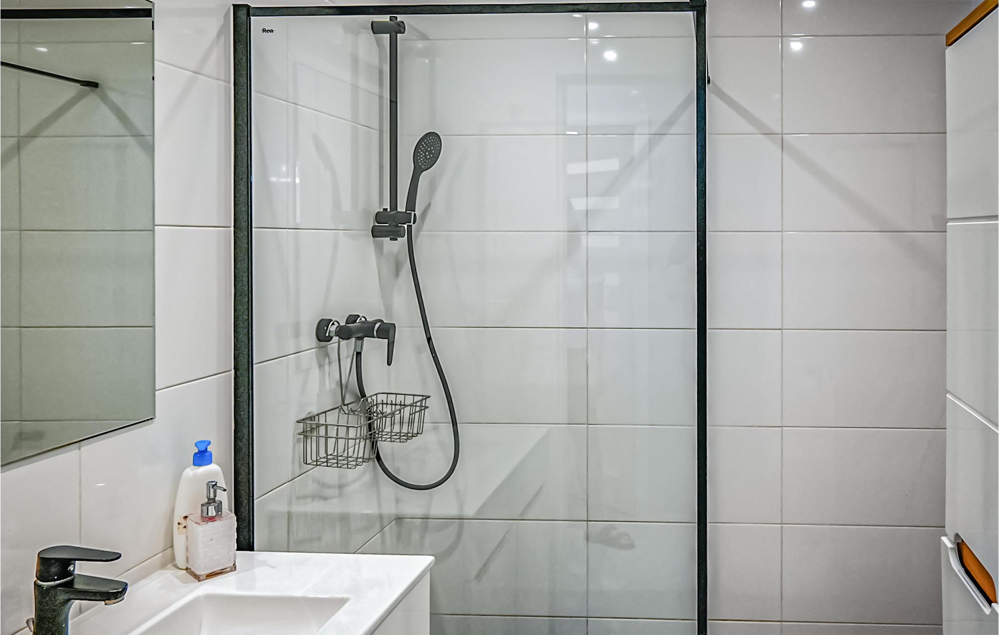 - WC med varmt og kaldt vann, Dusj