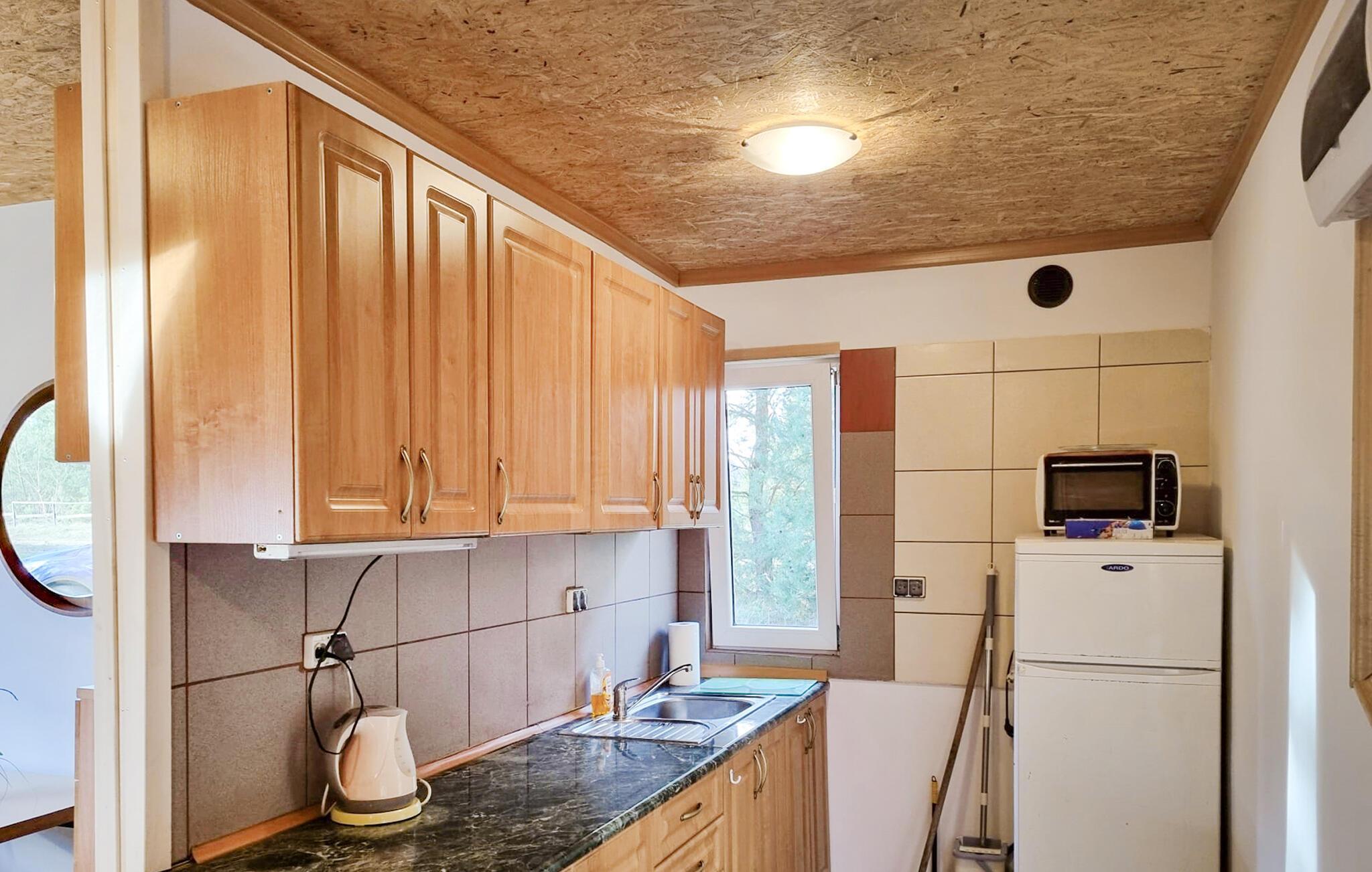 Opplev en time-out omgitt av skog og innsjøer, borte fra hverdagens kjas og mas. Dette enkle feriehuset har en rolig beliggenhet, midt i naturen. Stig inn i det koselige interiøret med enkel innredning og funksjonelle møbler. Slapp av i de polstrede sofaene med utsikt over de grønne omgivelsene, eller nyt et måltid ved det lille spisebordet. Bruk det kompakte kjøkkenet til å tilberede enkle måltider.