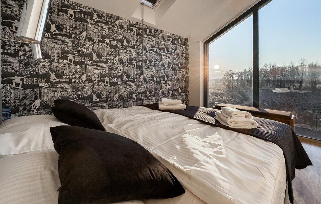 Velkommen til dette stilfullt innredede feriehuset, som vil skjemme deg bort med god plass til å tilbringe tid sammen med dine nærmeste. Store vindusflater skaper en lys og vennlig atmosfære der dere kan nyte kulinariske høydepunkter sammen, slappe av med muntre spillkvelder eller fordype dere i en god bok i fred og ro, mens peisen sørger for ekstra hygge på kjølige dager.