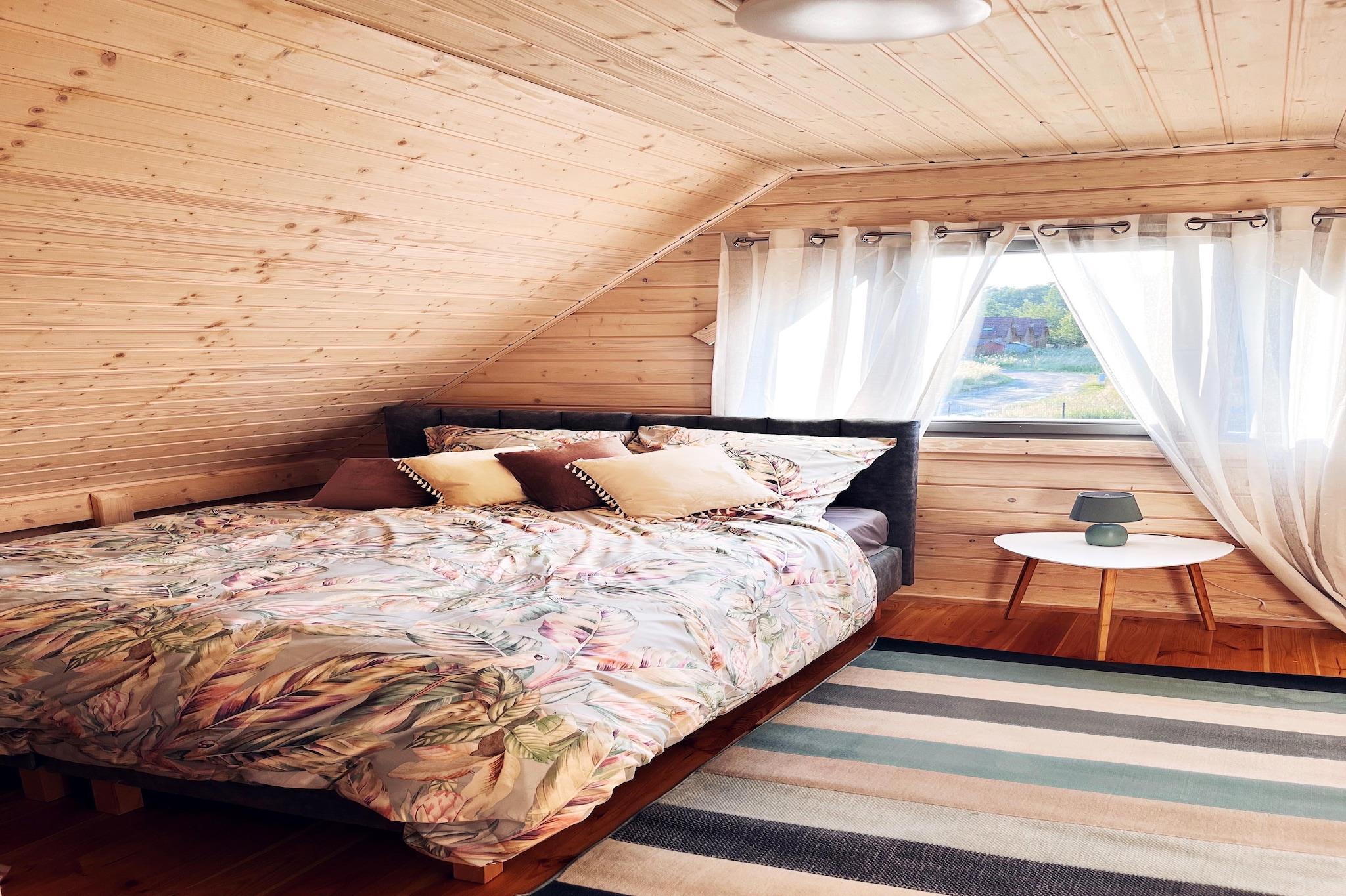Første etasje: (åpent kjøkken(vannkoker, vannkran med kokende vann, brødrister, komfyr(komfyr med 2 kokeplater, elektrisk), espressomaskin, oppvaskmaskin, kjøleskap med fryser), Stue/soverom(dobbel sovesofa, TV(Tyske TV-kanaler), spisebord), bad(dusj, håndvask, toalett)) i 2. etasje: (soveværelse(enkeltseng, enkeltseng), soveværelse(Dobbeltseng eller 2 enkeltsenger)) sprinkelseng, hage(deles med andre gjester, inngjerdet, anlagt hage, 1100 m2), hagemøbler, grill, parkering, trampoline, sandkasse, lekeområde, sklie, høy barnestol