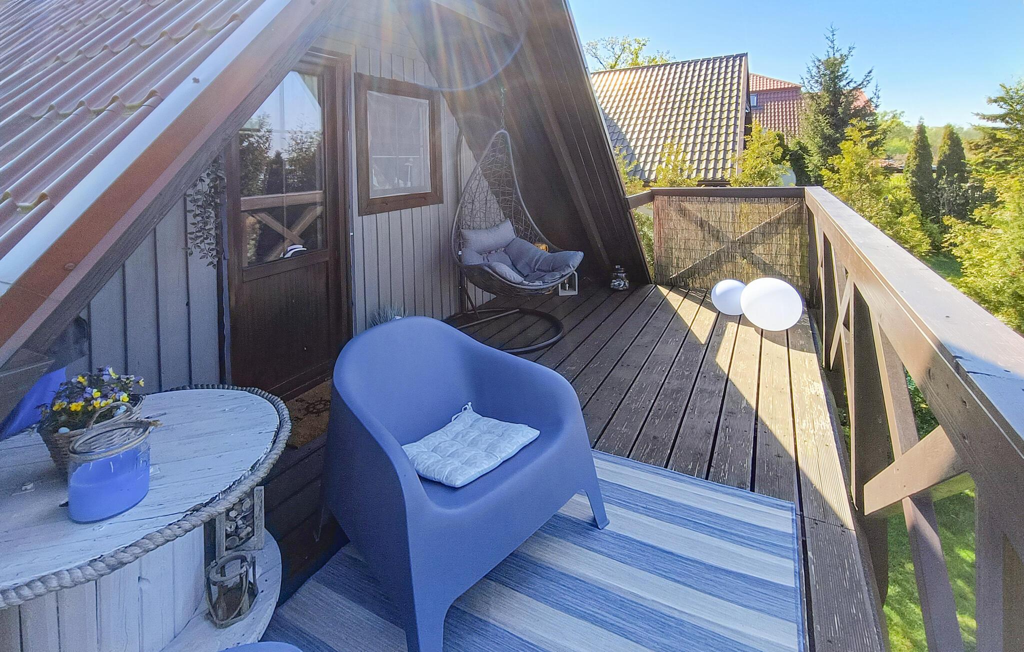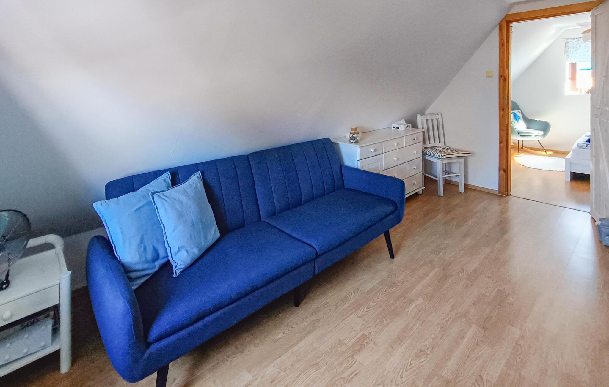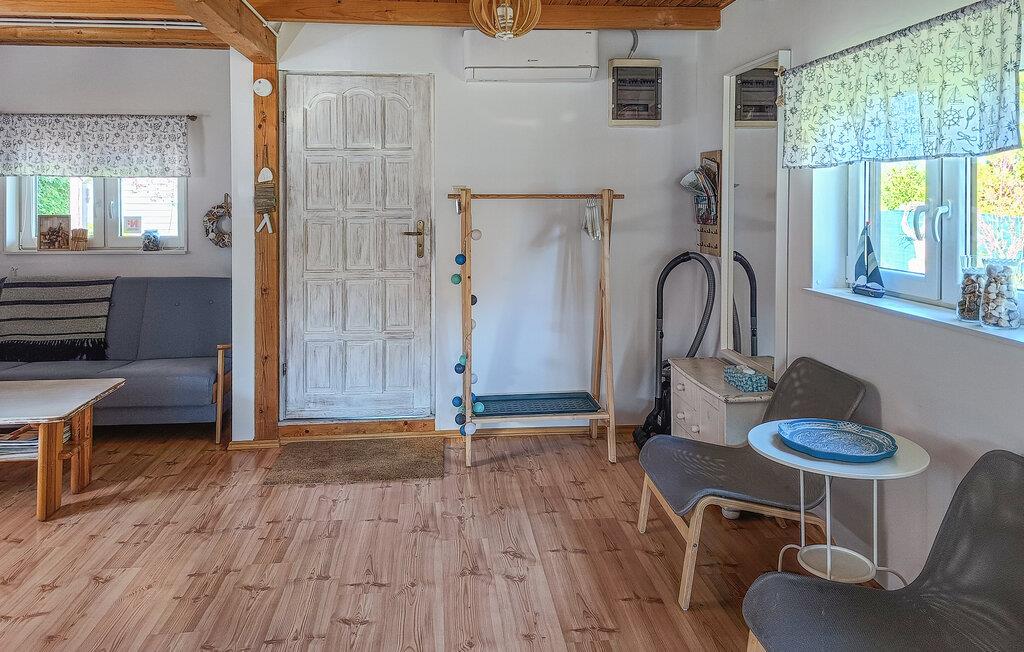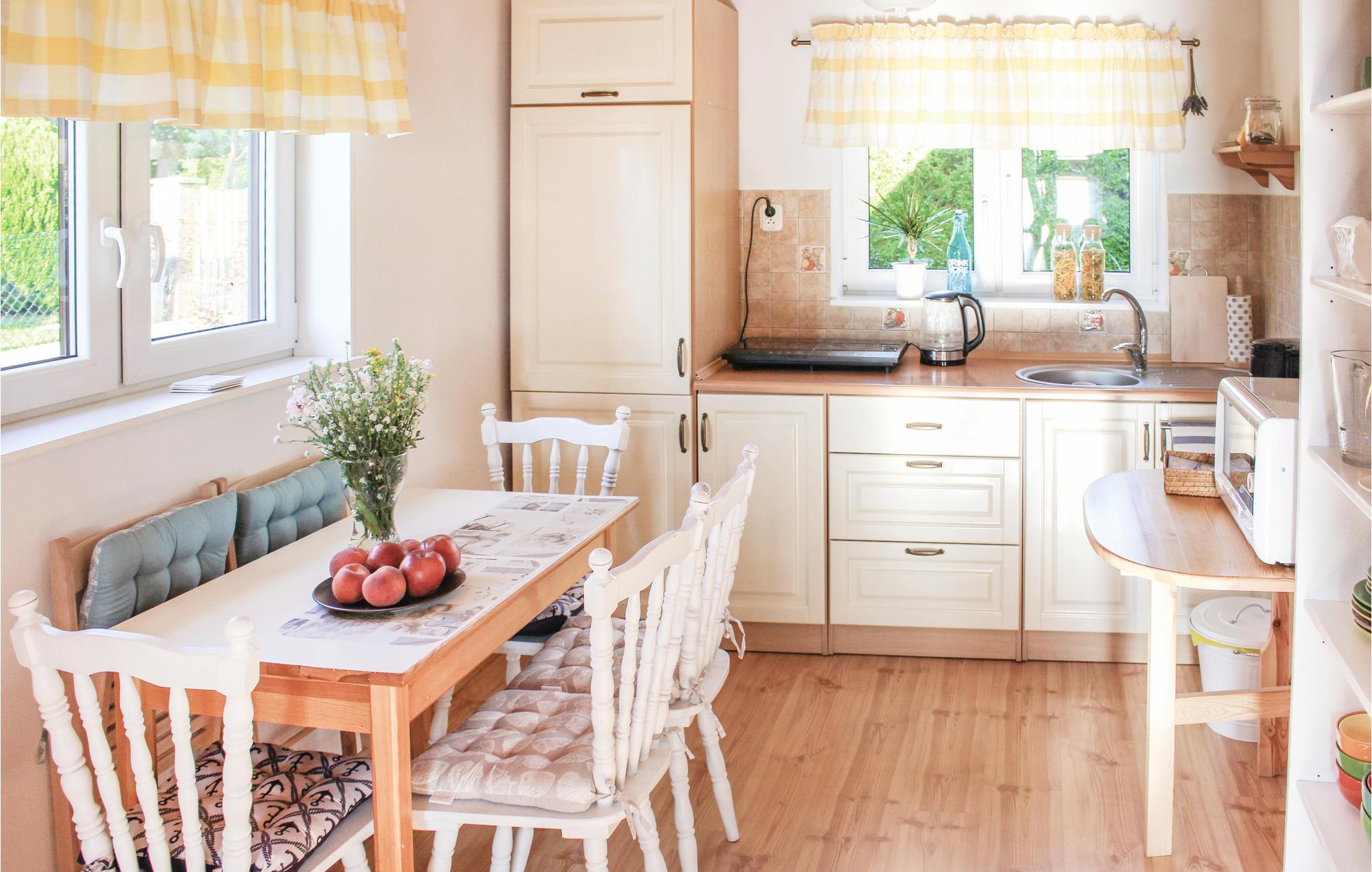 Feriehus i landsbyen Nowe Warpno, Pomorze Zachodnie. Det er moderne og praktisk innredet og godt egnet for en ferie med familien. Du vil definitivt nyte terrassen ved den store, velstelte hagen og den vakre panoramautsikten direkte til vannet. Dette stedet er det perfekte feriemålet for brettseilere og andre vannsportelskere. Mange sykkelstier inviterer deg også til å dra på utflukter. Det er en tursti fra Szczecin-lagunen hvor du kan beundre det vakre landskapet. En tur til Szczecin anbefales. Vi inviterer deg til å dra på ferie med hunden din. 4 sykler er tilgjengelig.