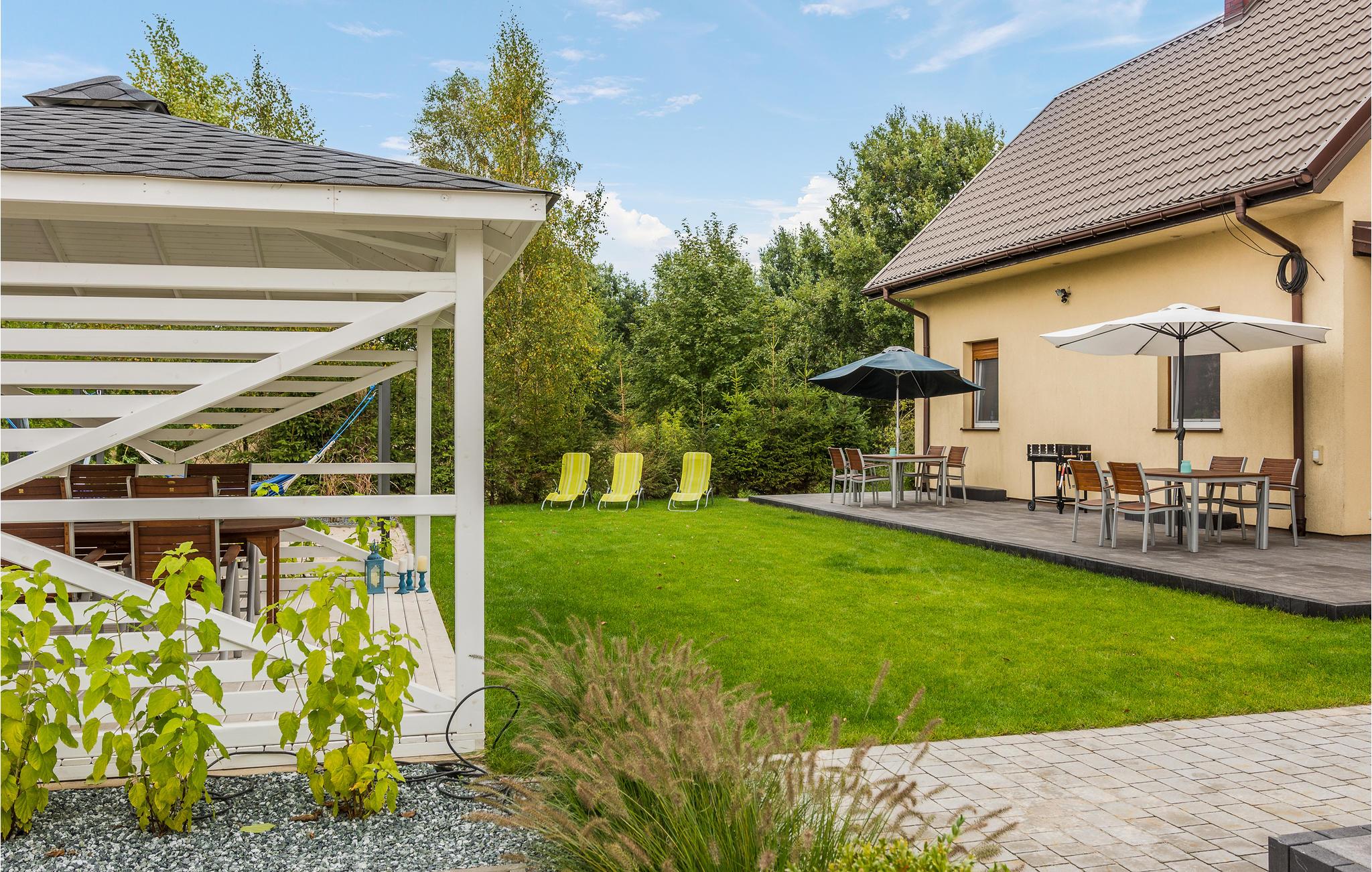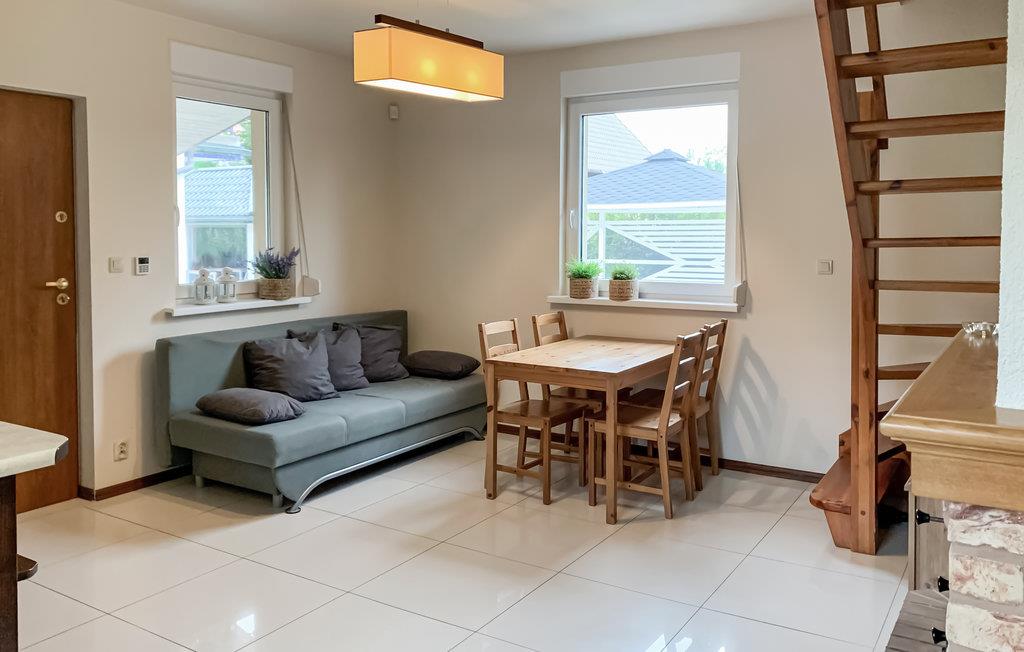 Feriehuset i Nowcin ligger i et boligområde med grønne områder. Det består av to etasjer og er enkelt og praktisk innredet. Du har en stor tomt med hagemøbler og grill til din disposisjon. Det er også mange attraksjoner for barn, inkludert en trampoline og sandkasse. Du kan forvente et typisk feriemål med mye grøntområder og turstier hvor du kan slappe av. I nærheten ligger byen Sarbsk, hvor vi anbefaler et besøk til sel-senteret. Sanddynene i Eba er også verdt et besøk. Du kan ta vindsurfingtimer på innsjøen Sarbsko - området rundt Nowecin byr på utmerkede forhold for sporten. Vi anbefaler å besøke Dinosaurparken (1300 m), Gdask 100 km, Sopot 85 km, Gdynia 78 km.