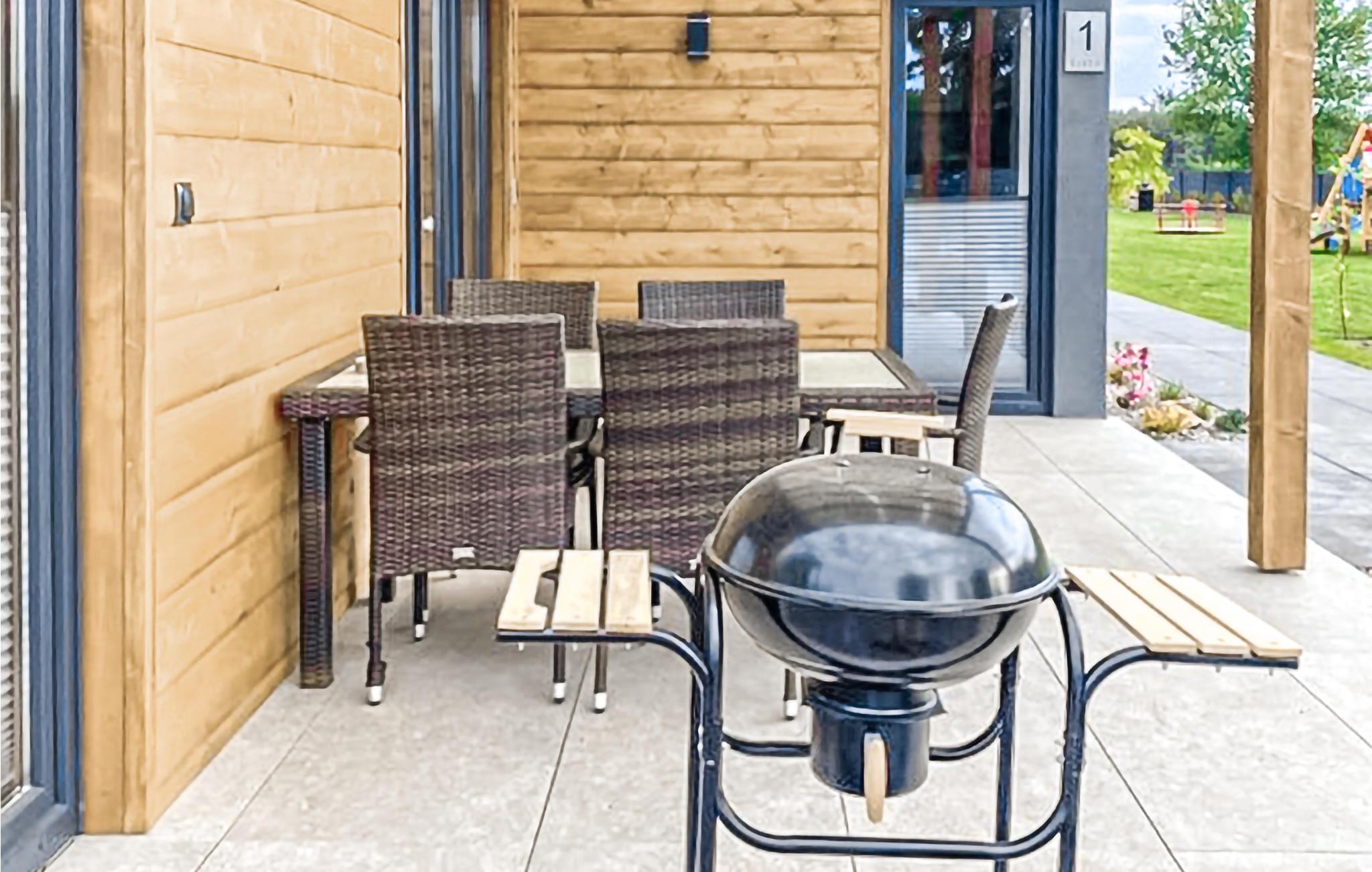 Innredningen er praktisk, koselig og meget stilfull, noe som gjør det ideelt for en avslappende ferie. Du har en velholdt og felles tomt til din disposisjon, hvor du kan tilbringe kveldene med grilling. Det er også mange attraksjoner for barn, blant annet sandkasse, trampoline, huske og sklie. Tenk deg å nyte morgenkaffen på den koselige treverandaen mens barna får utfolde seg i hagen og ha det gøy.