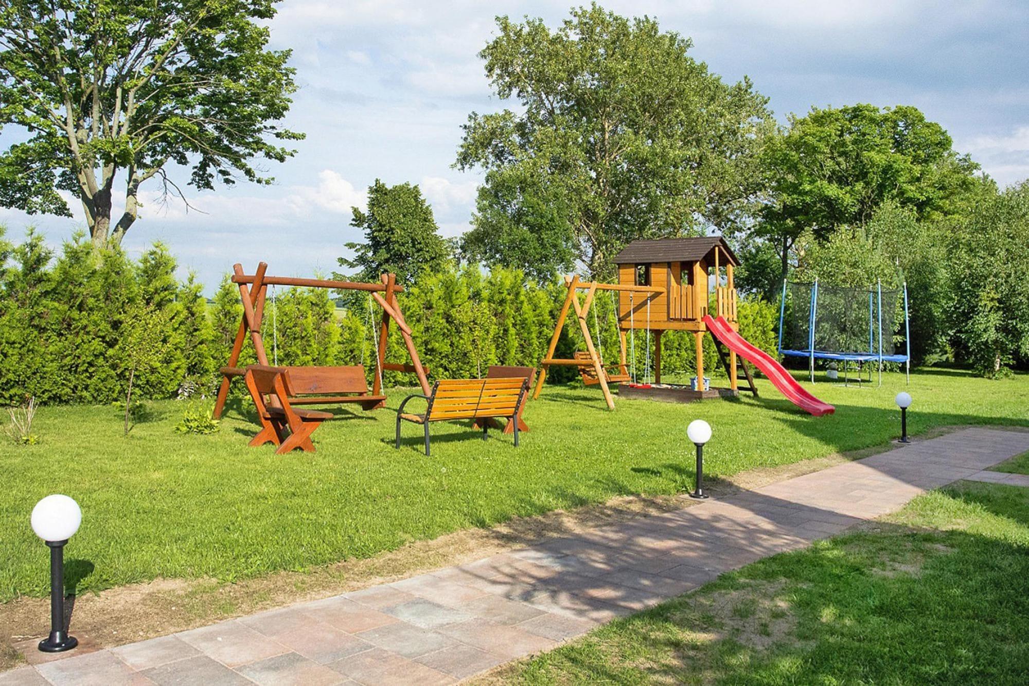 Et rolig område, i utkanten av en bygd ved bredden av innsjøen Jamno. Den nærmeste strandstranden ligger 4 km unna (det er også en sykkelsti der). Feriesenteret tilbyr attraktiv infrastruktur, inkludert sommerbasseng, badstue og boblebad. Overnatting i komfortable, murstein, to-etasjers feriehus. Hver av dem har en liten, privat hage med et sett med hagemøbler og grillutstyr. I første etasje er det en romslig stue (TV, bord, dobbel uttrekkbar sofa), kjøkken og bad med dusj (det er vaskemaskin). Det er 2 separate soverom oppe. Elektrisk oppvarming. Trådløst internett er tilgjengelig. I det inngjerdede området er det et utendørs oppvarmet svømmebasseng (åpent 07/06 - 08/09), et boblebad (åpent 26/04 - 31/10) og helårsbadstue. Det er også et sett med utendørs treningsutstyr, den såkalte «friluftsgymnas», samt en attraktiv lekeplass og en trygg parkeringsplass. Prisen for oppholdet inkluderer: sengetøy, vann- og gassforbruk, opphold med hund (maks. 2 hunder/hus), svømmebasseng (07/06 - 08/09), boblebad (26/04 - 31/10) ), badstue, treningsutstyr, sluttrengjøring, internett, parkering. Barneseng og barnestol tilgjengelig på forhåndsforespørsel. 400 m fra sentrum ligger Jamnosjøen, spesielt verdsatt av elskere av kitesurfing, windsurfing og fiske. I Osieki er det en liten matbutikk, en historisk kirke og en herregård omgitt av en park, som for tiden er et hotell og en restaurant. Den internasjonale sykkelruten R-10 går gjennom Osieki, som lar deg enkelt og bekvemt komme deg med sykkel til de nærliggende kystbyene: Sarbinowo, Mielno (et større feriested med mange attraksjoner og mange restauranter), Chlopy (en liten, historisk fiskerlandsby). ), Lazy, Gaski, Dabki, Darlówko.