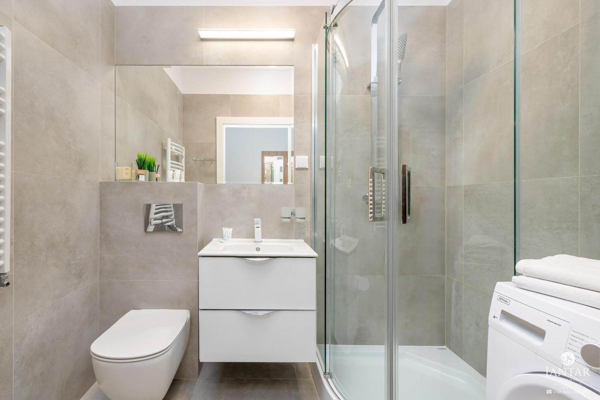 Kompleks av ferieleiligheter i sentrum av feriestedet, kun 70 m fra stranden. I umiddelbar nærhet er det kafeer og restauranter, samt et hotell med SPA-fasiliteter (innendørs svømmebasseng, sauna, boblebad). Den komfortable leiligheten tilbyr overnatting for 4 personer. Det ligger i første etasje (det er en heis). Det er en balkong med et sett med hagemøbler. Leiligheten består av stue, kjøkken, soverom og bad med dusj (det er vaskemaskin). Stuen har en dobbel sovesofa, TV og et bord med stoler. Sentralvarme. Det er trådløst internett. Det er parkering. Prisen for oppholdet inkluderer: strøm- og vannforbruk, oppvarming, parkering, internett. Barneseng og barnestol tilgjengelig på forespørsel. Attraksjoner i området: Pobierowo er et feriested. Det ligger ved kysten av Østersjøen, i sentrum av den pittoreske Rewal-kysten. Pobierowo tilbyr turister en ren strand og et bevoktet badeområde. Det er også en fiskebase her, perfekt som bakgrunn for suvenirbilder. Pobierowo er et perfekt sted for barn, idrettsutøvere og elskere. Barn vil glede seg over et besøk til Hvalparken i nærliggende Rewal (ca. 7 km), med ekte havgiganter, og til Fairy Tale Cottage, hvor de vil møte eventyrfigurer ansikt til ansikt. I dårlig vær vil et ideelt alternativ være en tur til et av flere offentlige innendørs svømmebasseng. En taupark med mange hindringer hengende høyt oppe i tretoppene vil også være fantastisk underholdning for hele familien eller en vennegruppe. Selvfølgelig med passende beskyttelse. Byens og hele regionens stolthet er den renoverte smalsporede jernbanen, som lar deg dra på en sjarmerende tur til nærliggende feriesteder.