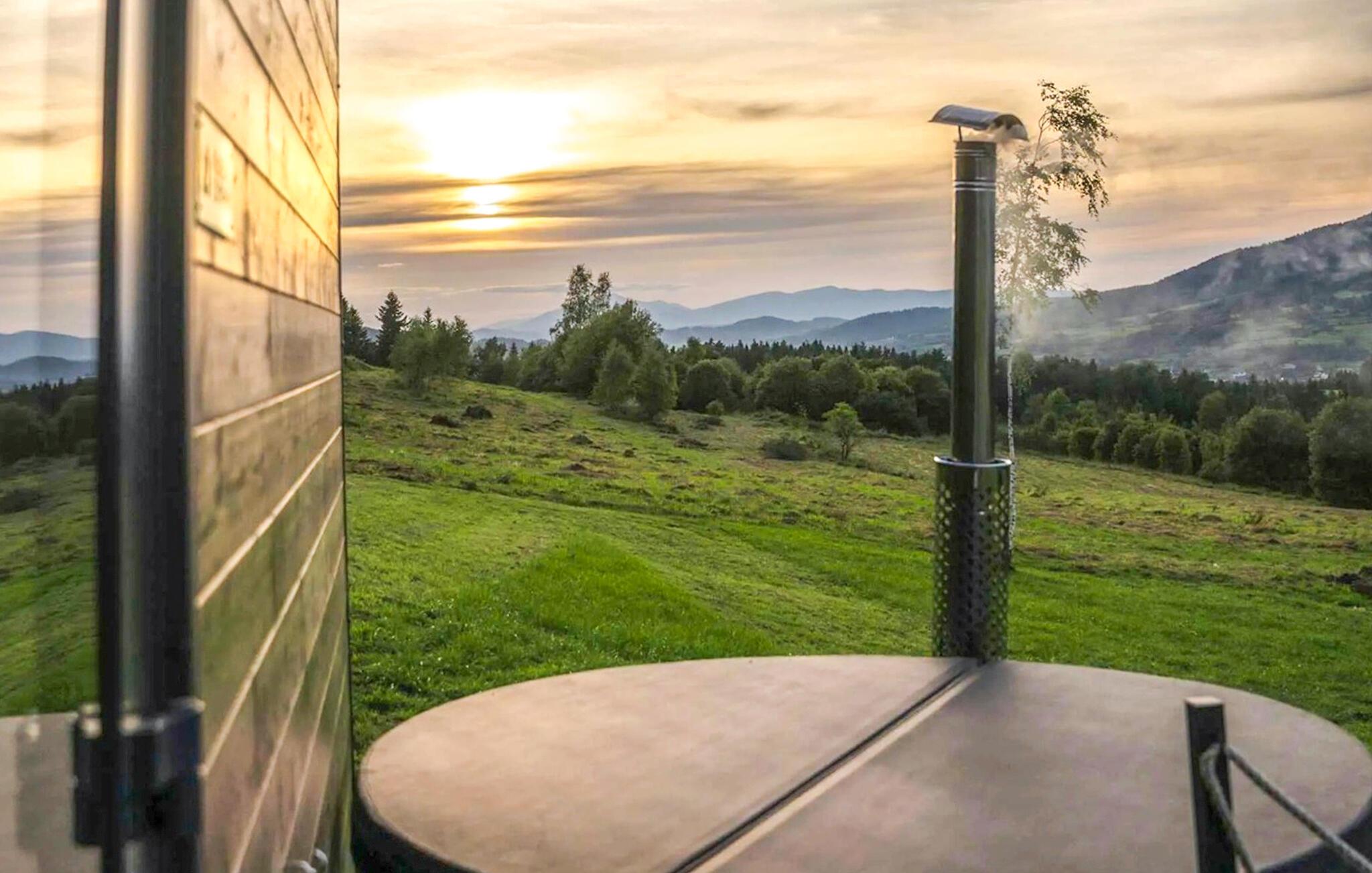 Spis frokost på terrassen om morgenen med vidstrakt utsikt over fjellene, og nyt roen i naturen. Tilbring avslappende timer i den felles badstuen, eller nyt et varmt bad i boblebadet om kvelden mens solen bader kveldshimmelen i røde og oransje nyanser.