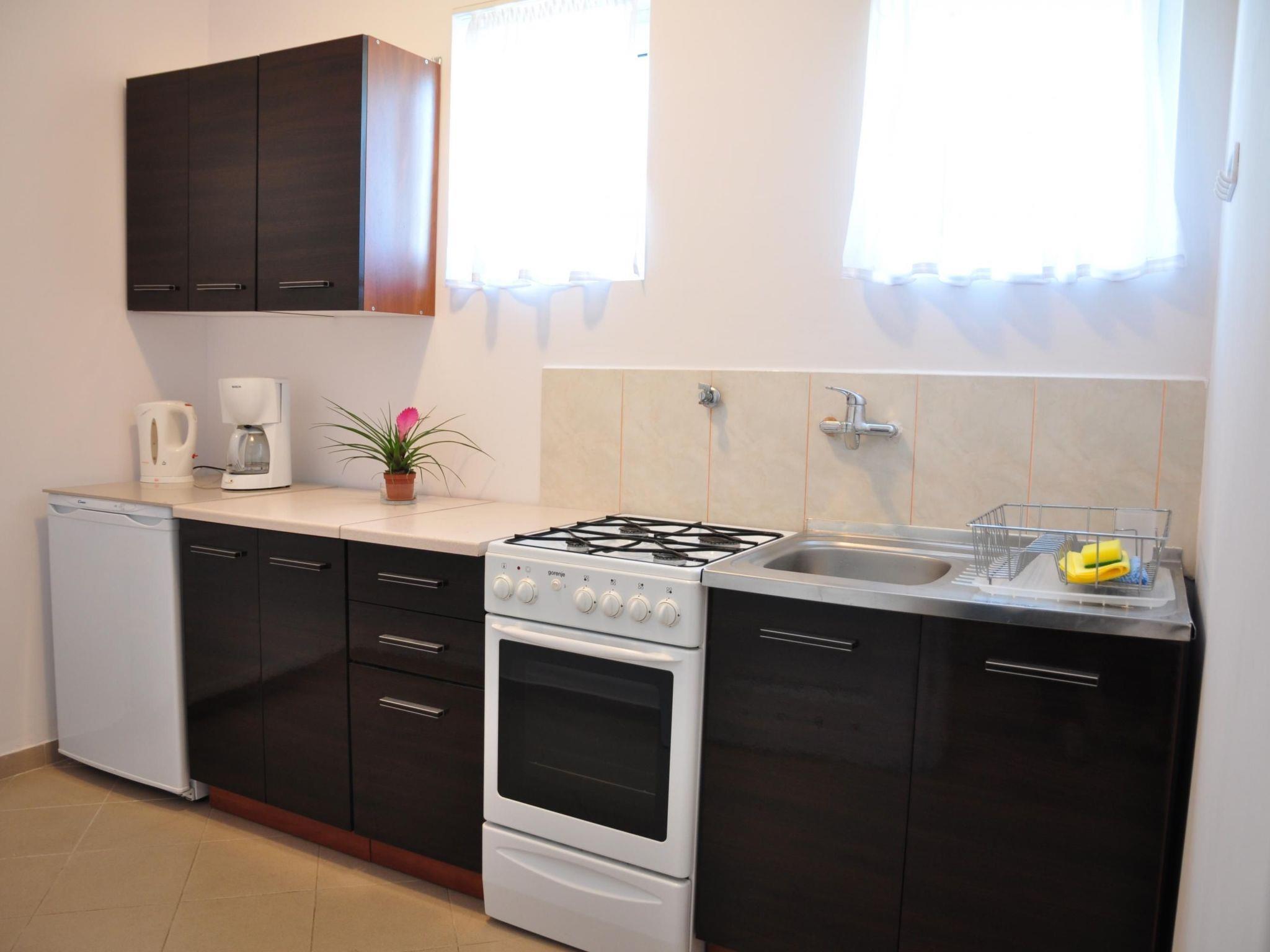 The interior of the holiday flat is designed to meet the needs of a large group. With a total of 5 rooms, including a practical kitchenette, two fully equipped kitchens and 3 bathrooms, the flat offers everything you need for a carefree stay. The spaciousness of the room is complemented by amenities such as TV-SAT for relaxed evenings and two large dining tables where shared meals become an experience. The large terraces also promise relaxing hours with a view of Pucka Bay.