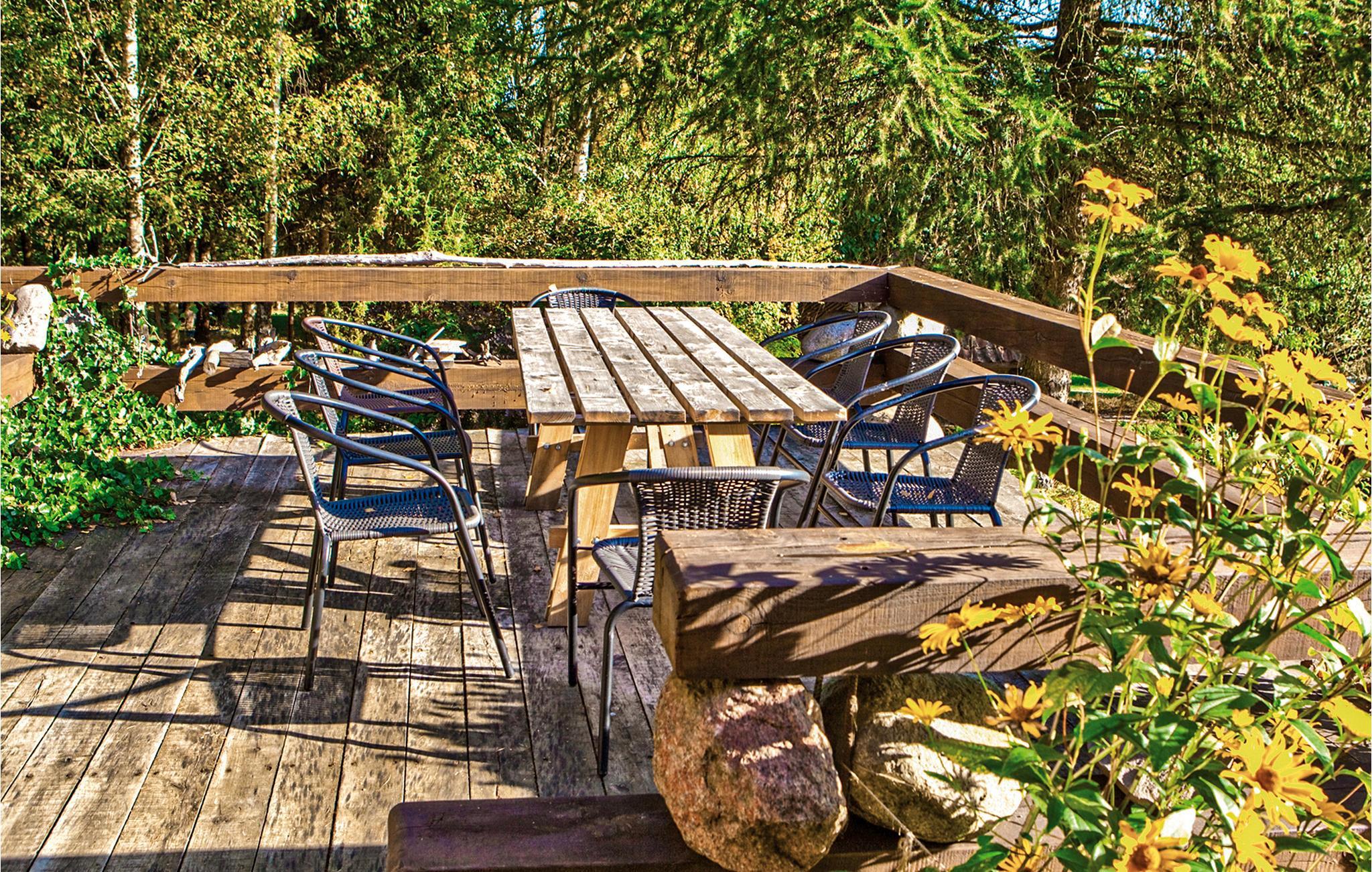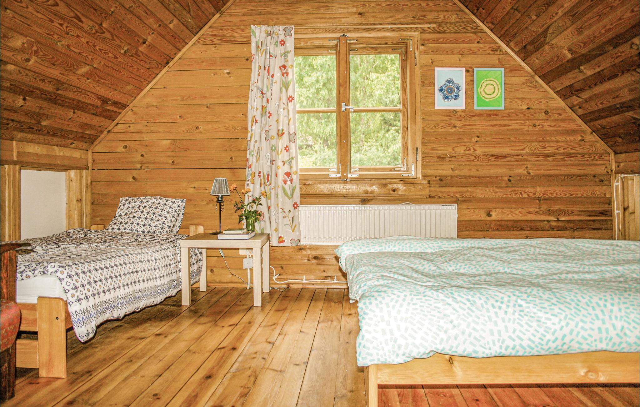 Dette romslige trehuset har en ideell beliggenhet nær innsjøen, og er ideelt for en ferie med barn og fortryller med sin rustikke sjarm. Bruk det som base for en herlig ferie med utforsking av nærområdet og opplevelser i naturen. Etter en aktiv dag kan dere kose dere ved peisen og nyte tiden sammen.