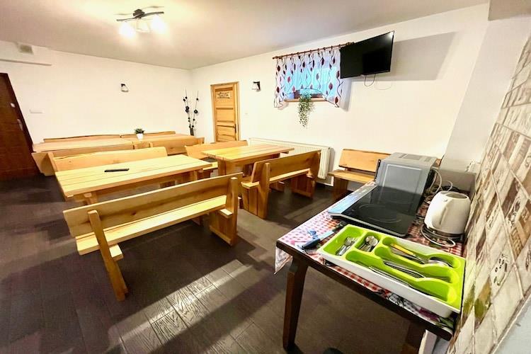 Vi tilbyr et komfortabelt dobbeltrom med eget bad i et feriehus i Ruciane Nida. Et felleskjøkken med spiseplass er tilgjengelig for alle gjester. Parkering, internettilgang og satellitt-TV er tilgjengelig. En vakker hage omgir huset, perfekt for avslapning utendørs. Hagemøbler, grill og lekeplass er tilgjengelig, noe som gjør dette til et ideelt sted for både par og barnefamilier. En avslappende badstue og boblebad er tilgjengelig for de interesserte, tilgjengelig mot et tillegg på PLN 50 per time per person. Masuria er det perfekte stedet å slappe av for naturelskere og vannettusiaster. Våre komfortable overnattingssteder i Ruciane Nida ligger i nærheten av den pittoreske Pisz-skogen – et av de største skogskompleksene i Polen, perfekt for fotturer, sykling og samvær med naturen. I tillegg ligger feriehuset vårt i nærheten av en marina, noe som gjør oss til et flott utgangspunkt for å utforske herlighetene på den store masuriske sjøstien. Dette unike stedet lar deg seile, fiske eller bare slappe av ved vannet.
