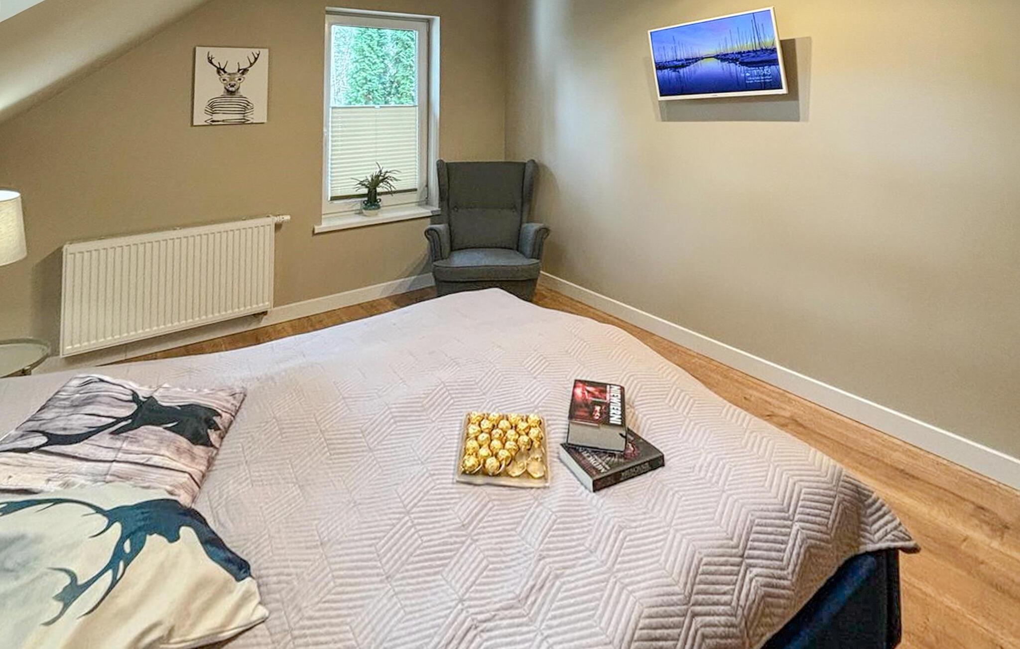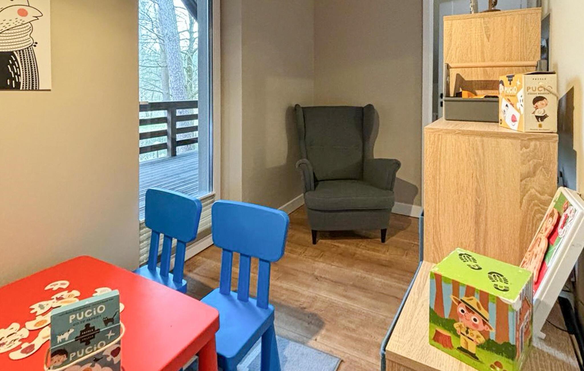 Barna dine vil føle seg like hjemme som du gjør i dette komfortabelt innredede feriehuset. La de små bruke det fargerike lekerommet mens du lager mat på det innbydende kjøkkenet. Tenn opp i vedovnen og kos dere med en god bok i den koselige sofaen, eller møt opp til en hyggelig spillkveld.