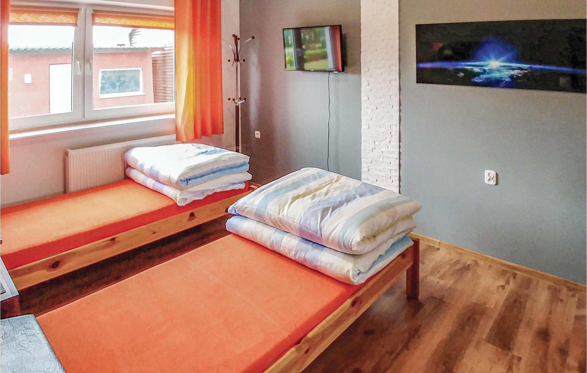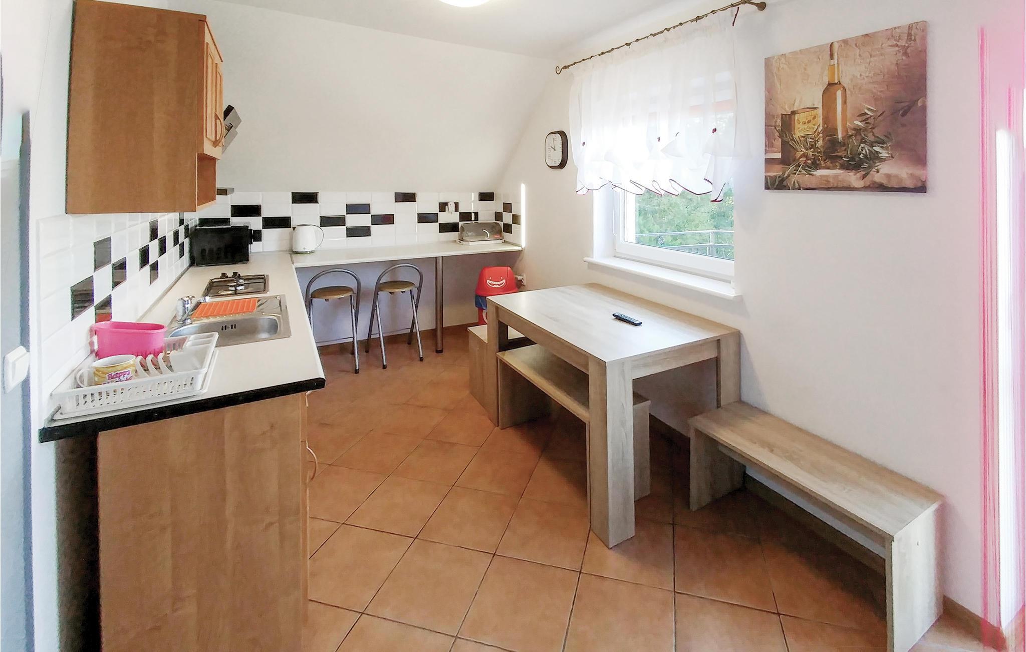 Feriehuset ligger i landsbyen Rusinowo. Rusinowo ligger ved Østersjøen, mellom Darowo og Jarosawiec. Disse stedene er velkjente turistmål, perfekt for natur- og badeelskere. Huset består av tre komfortable leiligheter som er veldig praktiske for store familier eller vennegrupper. Eiendommen ligger på en inngjerdet, vakkert vedlikeholdt tomt. Etter en begivenhetsrik dag kan du slappe av i hagebassenget. Du har også hagemøbler, en grill og en lekeplass med trampoline til din disposisjon. I nærområdet kan du besøke badelandet, fyret eller fiskehavnen. Det finnes butikker og restauranter i nærheten. Du har mulighet til å benytte deg av en garasje.