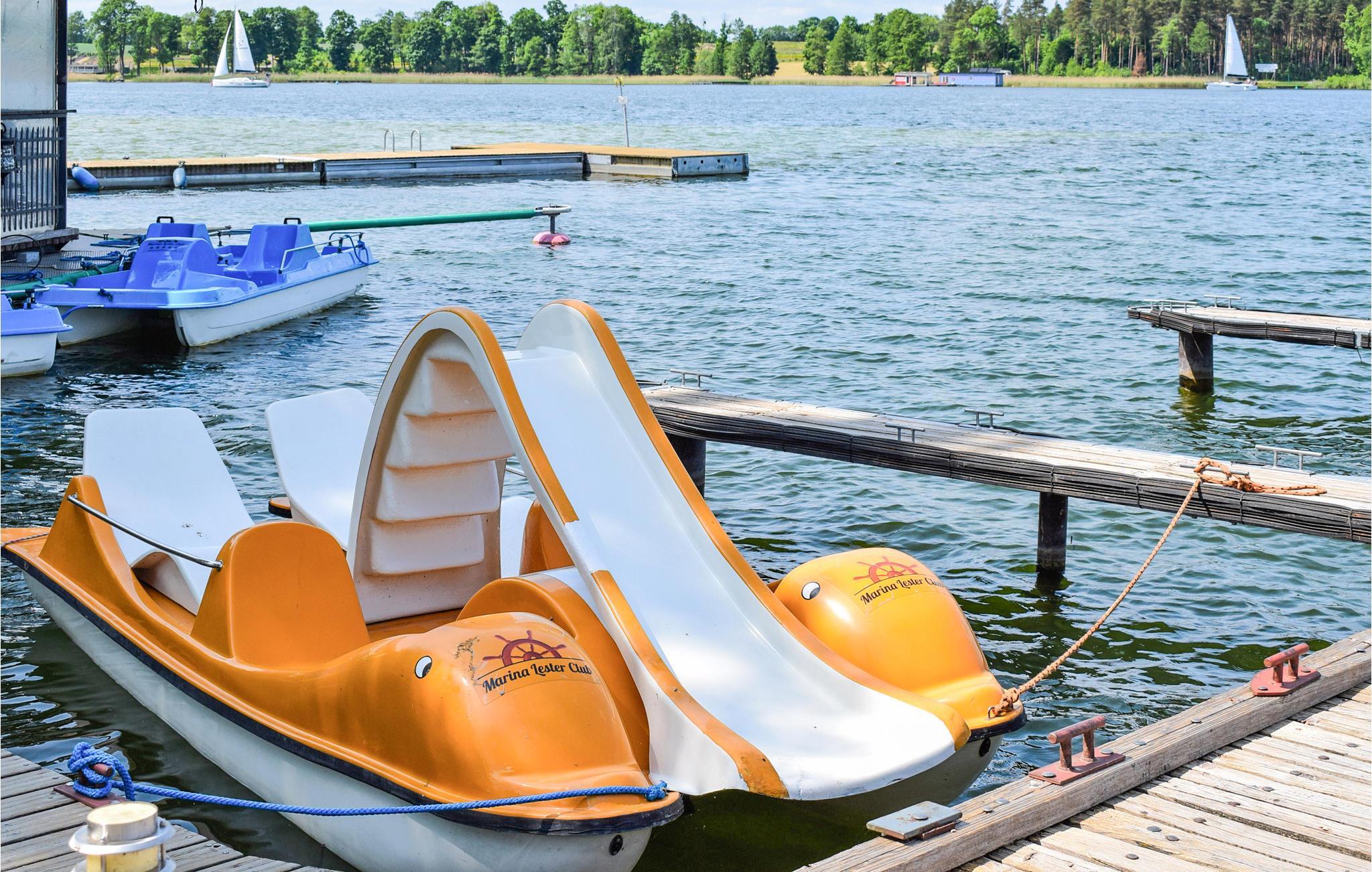 Er du en ivrig vannsportentusiast eller sportsfisker? Da er denne leiligheten i første etasje bare noen få skritt fra innsjøen en absolutt hit! Den moderne innredede leiligheten med lys atmosfære er den perfekte rammen for en flott ferie med vannsportaktiviteter, fiske og fotturer. Planlegg dagsprogrammet om morgenen ved spisebordet. Skal du padle, ha det gøy med pedalbåten, bade eller fiske i dag? Sett deg godt til rette i den røde sofaen eller på terrassen etter en lang dag. Avslutt dagen med et glass vin. I morgen kan du dra til innsjøen igjen og leie en pedalbåt eller padle kajakk. Glem ikke å kjøpe en deilig is.