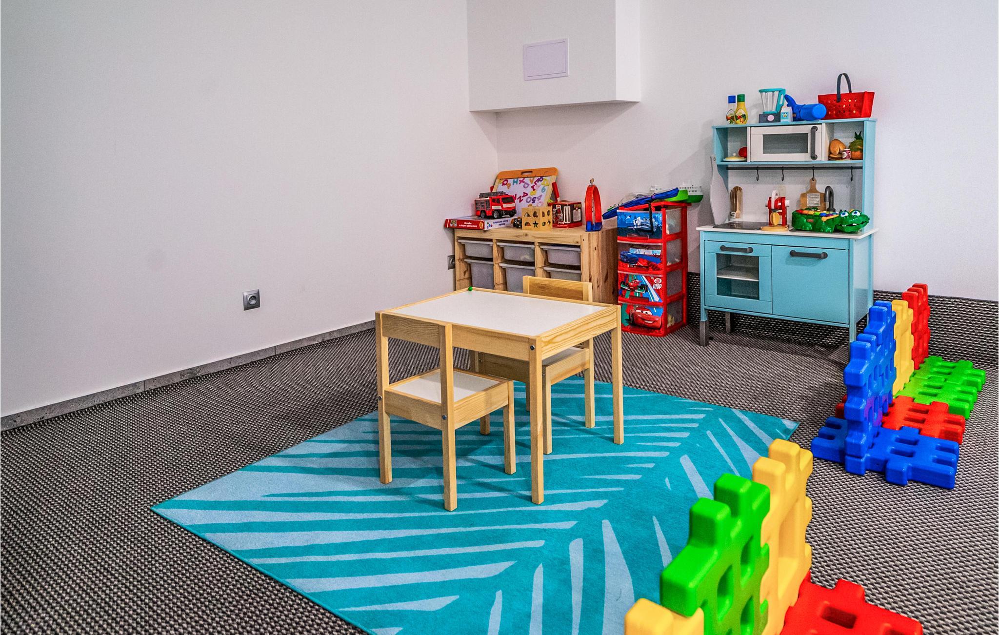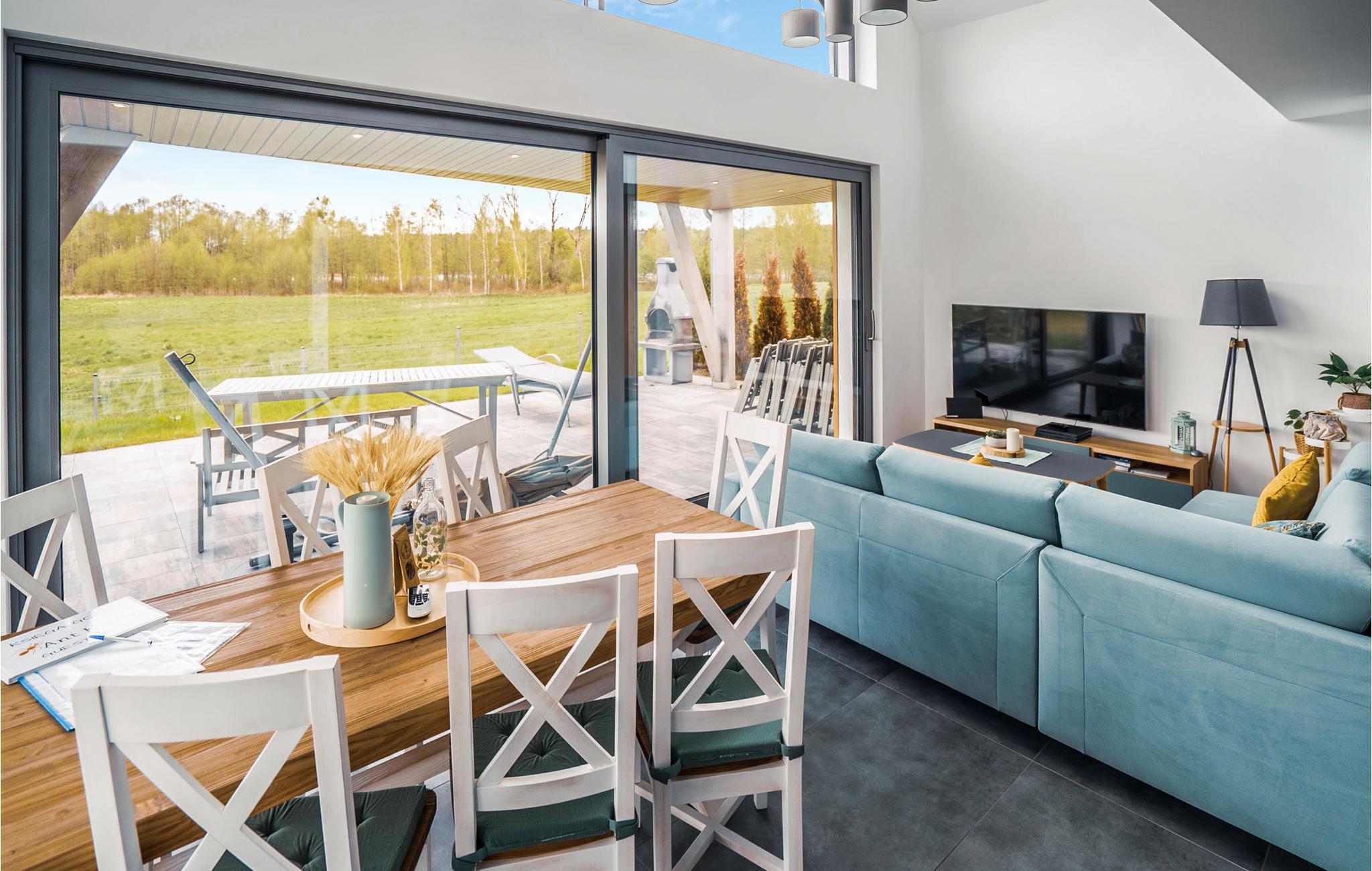 Velkommen til dette moderne og veldig smakfulle feriehuset. Se frem til ditt komfortable opphold i dette flotte huset som ikke overlater noe å være ønsket. Stuen er åpen og gir deg naturlig lys med den store vindusfronten, som du kan nyte fullt ut mens du lager mat, slapper av og leker. Alle aldersgrupper kan kose seg her. for eksempel forfølge ditt treningsprogram eller se på barna dine boltre seg i lekerommet. Du kan ha ditt personlige velværeprogram i den private badstuen eller i den felles tønnebadstuen i hagen mens du nyter utsikten over innsjøen. Den store hagen gir deg også mange muligheter. For eksempel kan du spille volleyball, la barna oppdage lekeplassen og samles til et måltid og grille på terrassen.