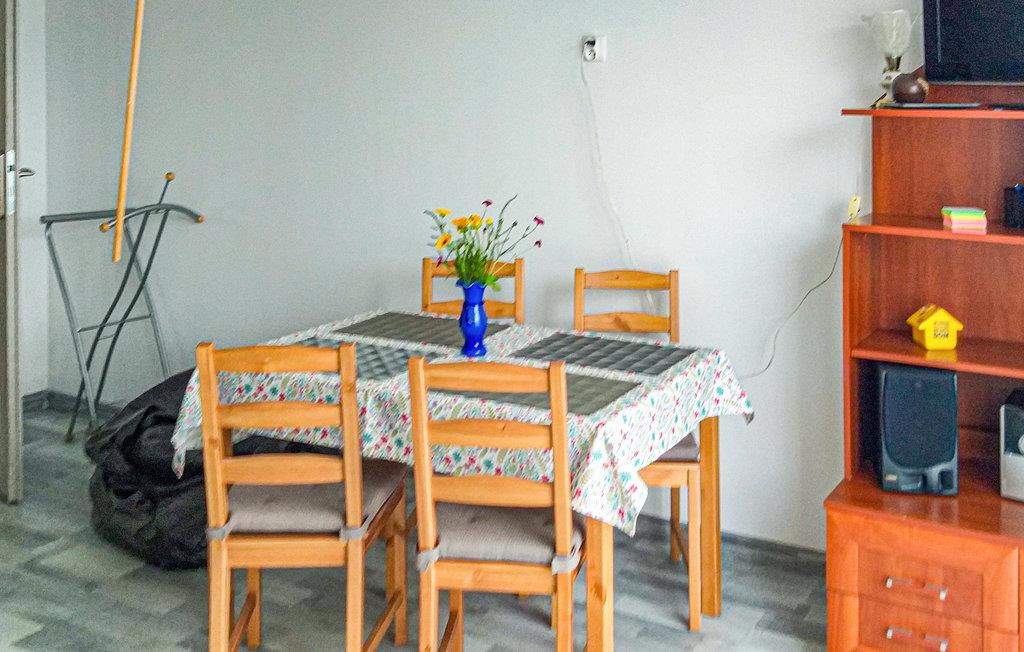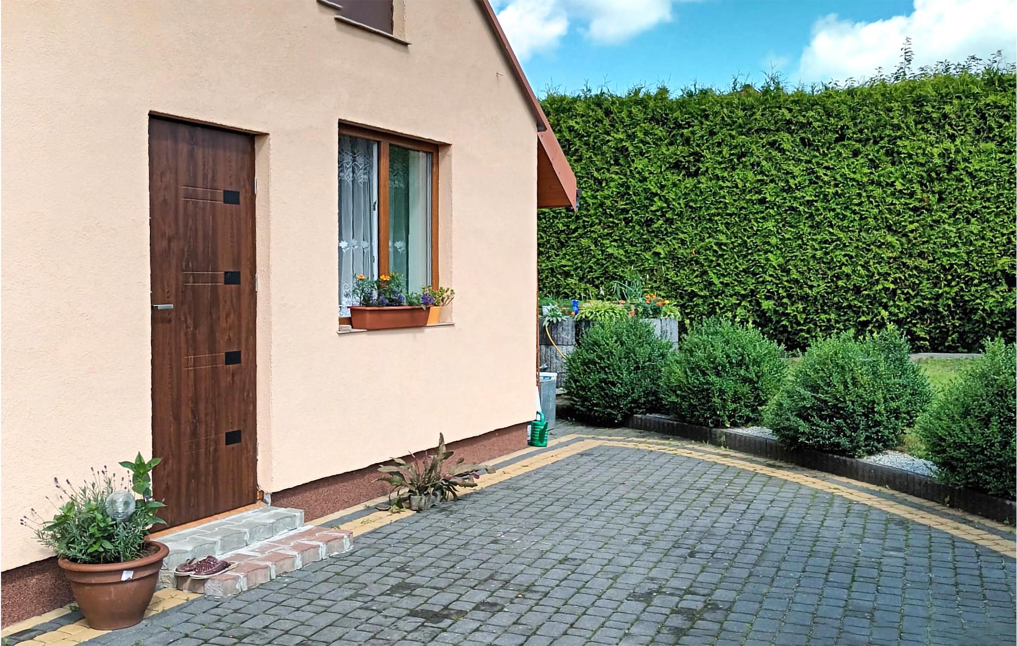 Huset ligger på en felles eiendom med eierens hus. I nabolaget finner du en innsjø og en skog - ideelt for naturelskere. Boligen består av et kjøkken, en stue, et bad og en mesanin. Dette komfortabelt innredede feriehuset er ideelt for 5 personer.