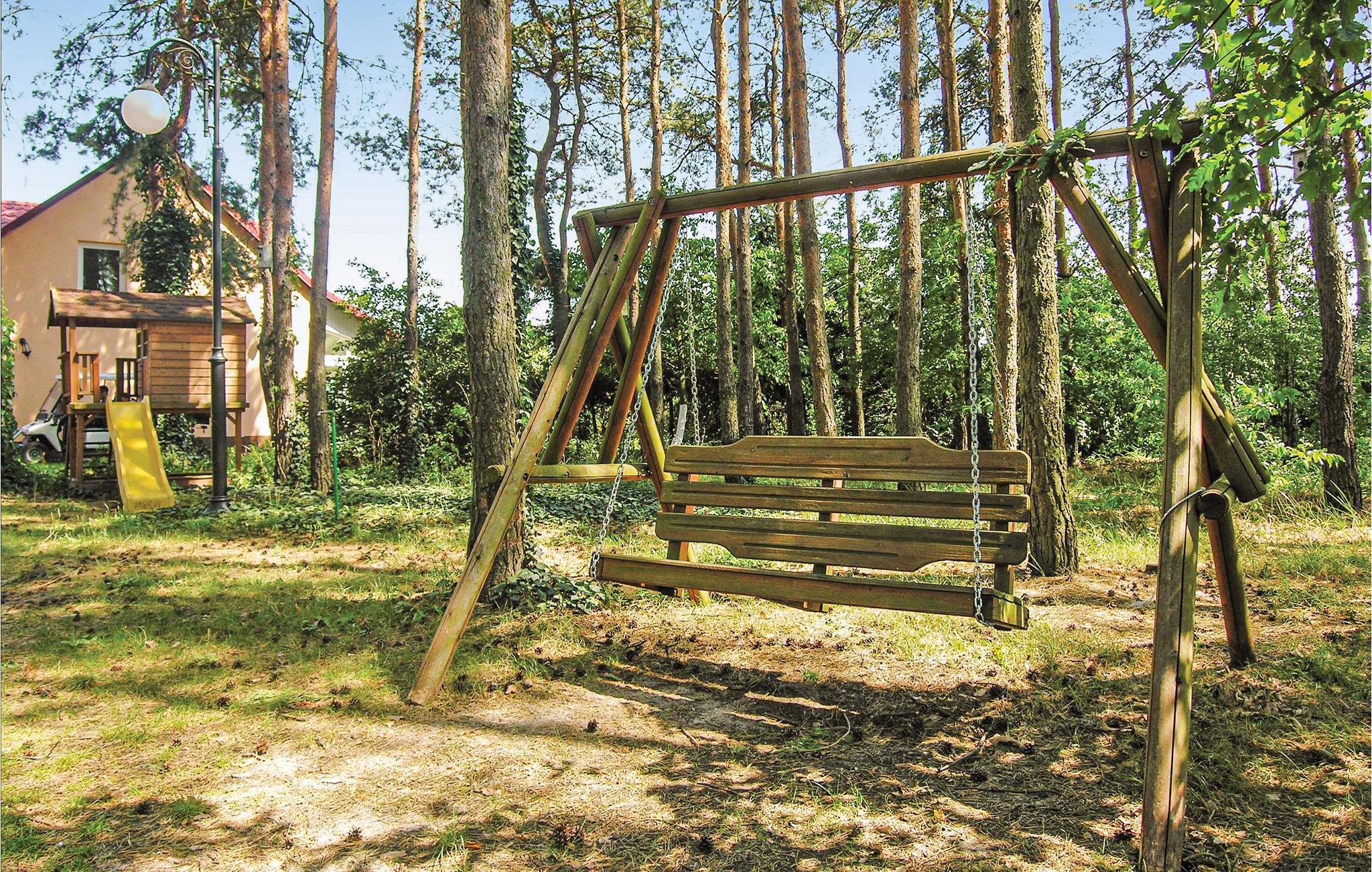 I dette store feriehuset vil du tilbringe ferien omgitt av et attraktivt og moderne interiør. Det er en fiskedam ved huset, så du kan fiske her. Eiendommen er en delt tomt. Feriehuset ligger i umiddelbar nærhet av en skog. Kanoen står til din disposisjon for felles bruk. På den store eiendommen driver huseieren en liten gård med griser og kyr. Det er gode forbindelser til Poznan eller Katowice, da det er en togstasjon i nærheten av huset.