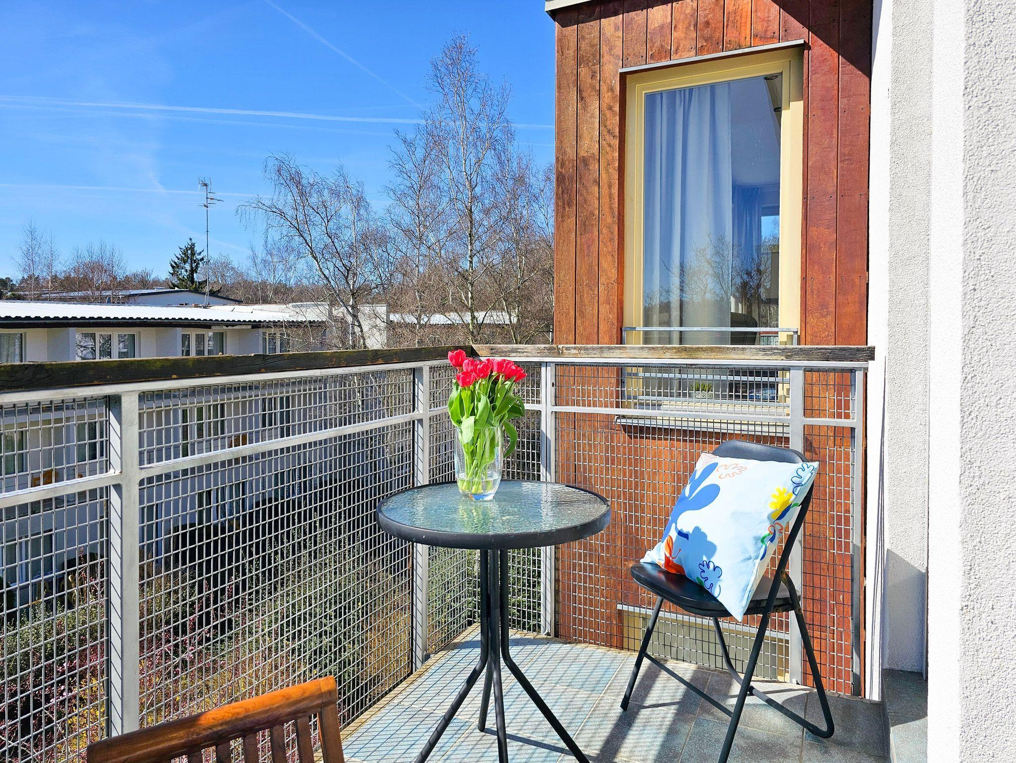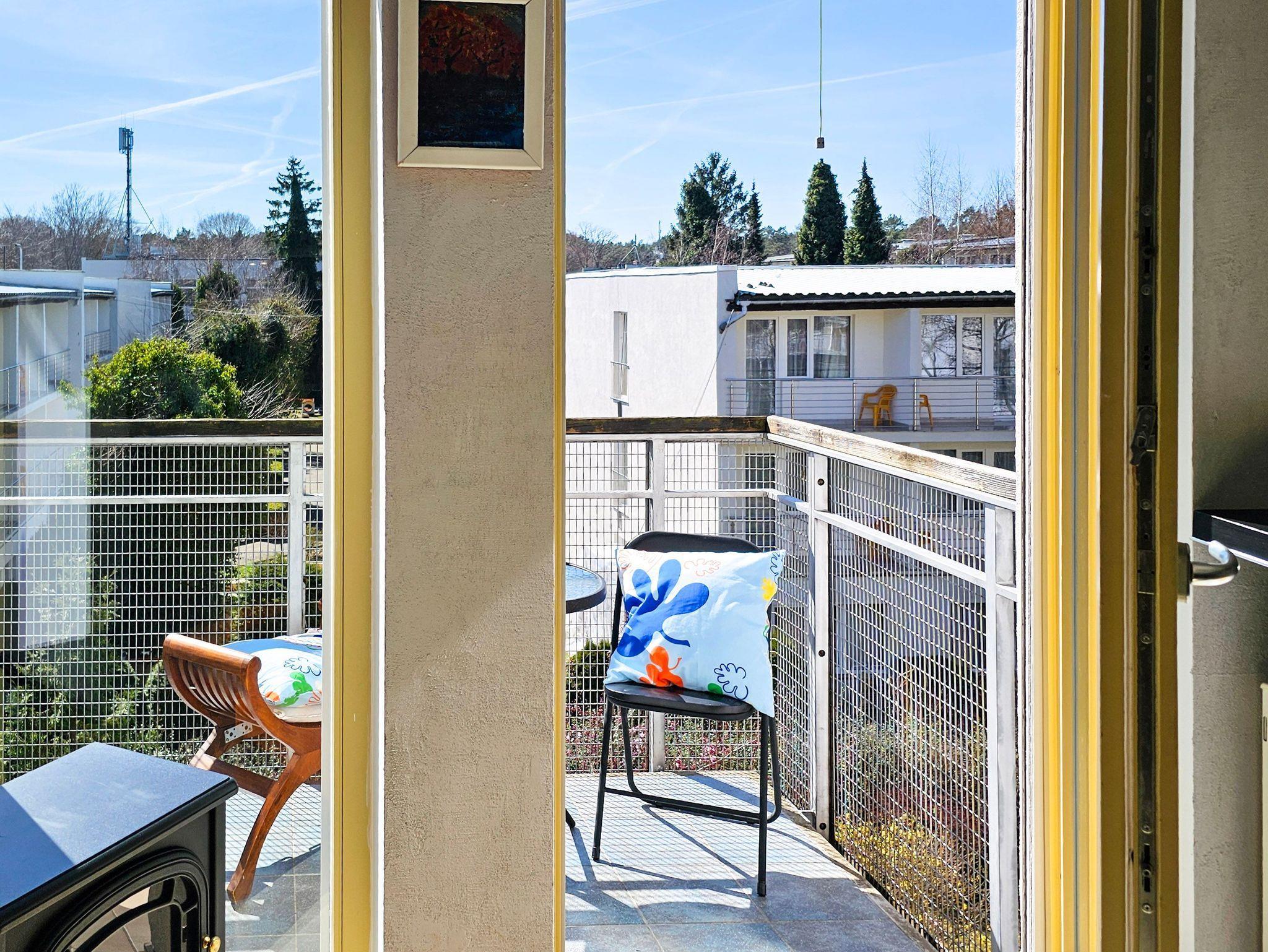 Studio-Apartment mit Balkon, vorbereitet für den Aufenthalt von 3 Personen. Es befindet sich innerhalb der geschlossenen Wohnanlage „Zacisze Lene“ im westlichen, ruhigen Teil von winoujcie, an der Wand des Waldes und in der Nähe des Strandes.