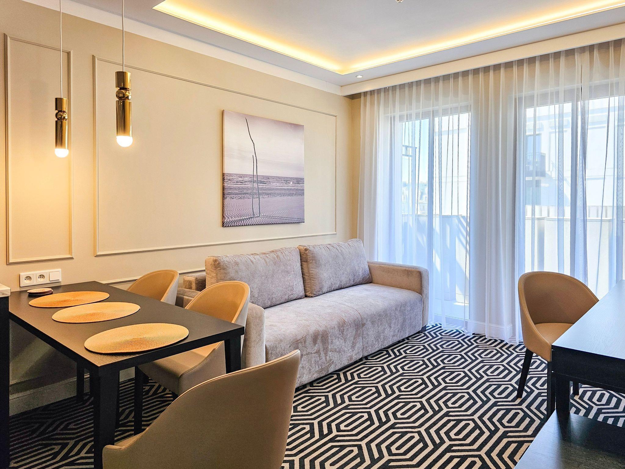 Hotelapartment mit Wohnzimmer und Schlafzimmer, gelegen im Baltic Park Fort-Komplex, direkt am Strand und im Herzen der Promenade.