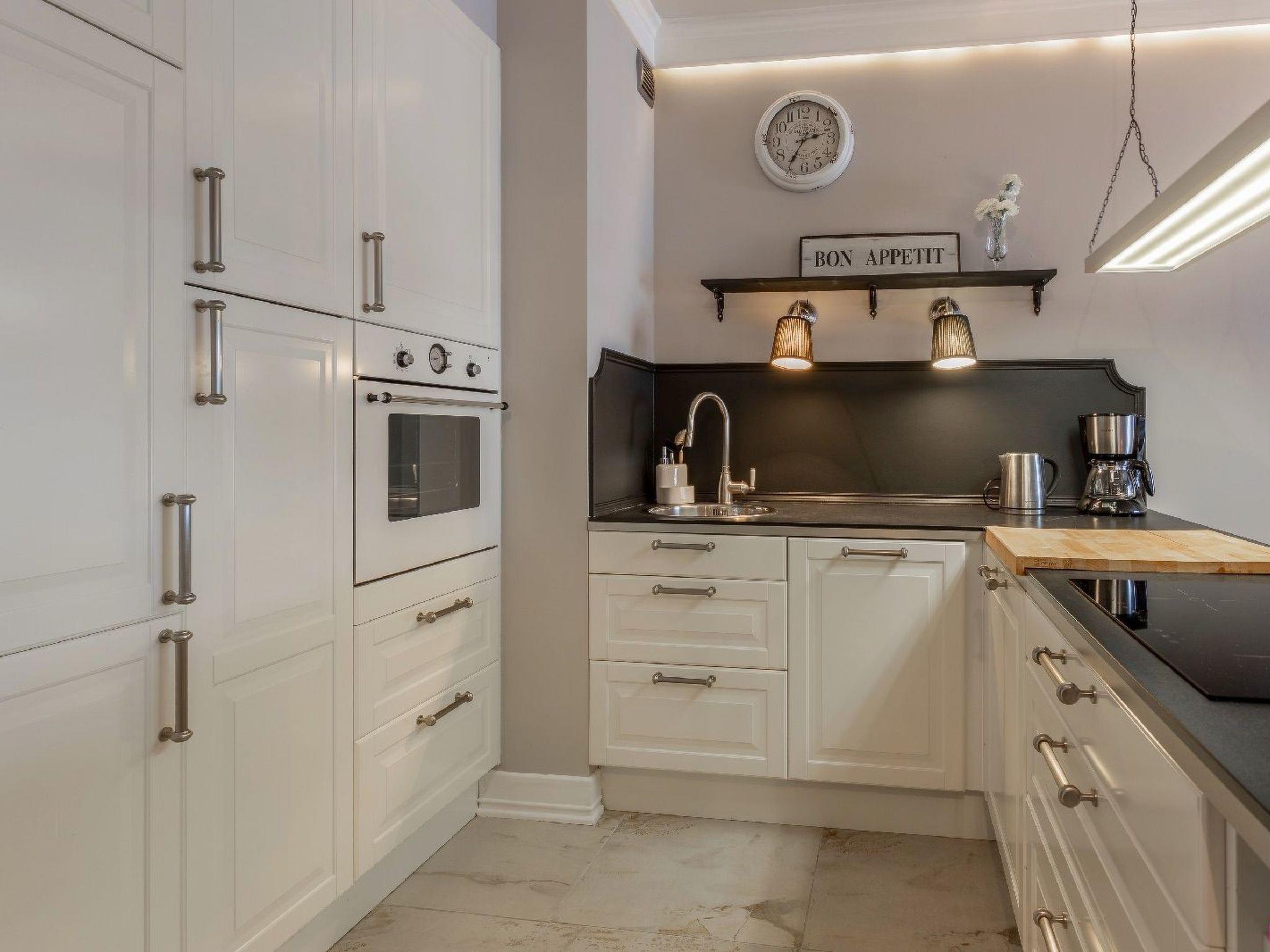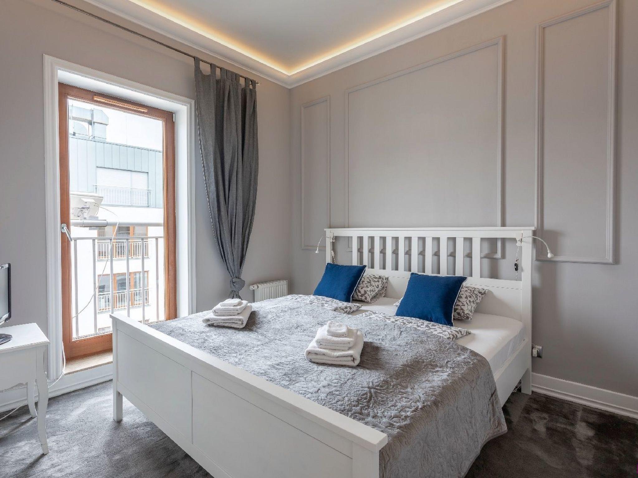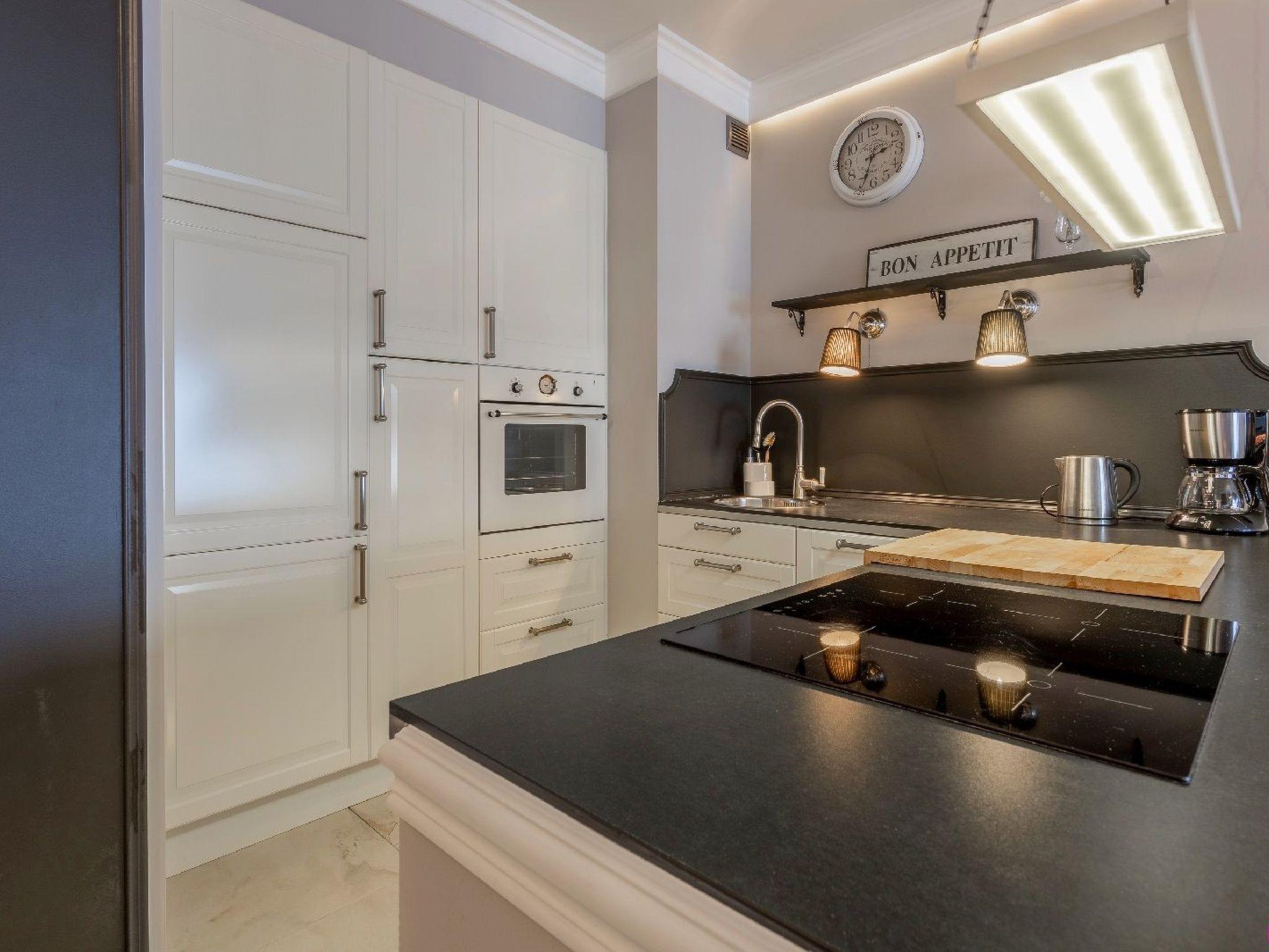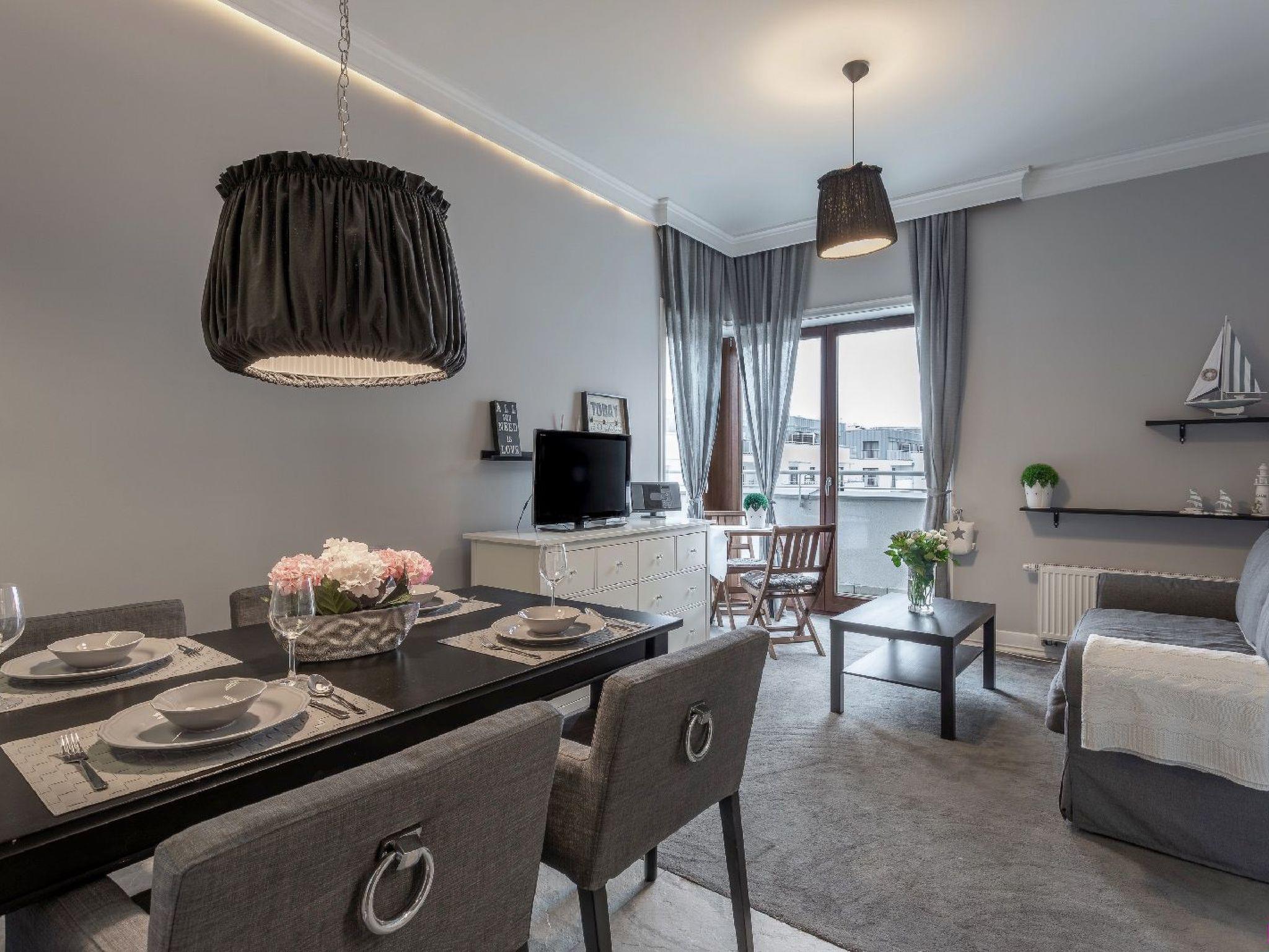 It is a very spacious, extremely elegant and fully equipped flat with a large bedroom, living room with kitchenette and bathroom with a total area of 45 m2. Its additional advantage is a sunny balcony. Each element of this classic interior has been selected to provide not only the greatest comfort of use, but also to influence the aesthetic sense and inspire joy of communication with beauty and sophistication, which is confirmed, among others, by a large and comfortable double bed, high ceiling, which enlarges the space and gives a feeling of spaciousness, and a soft carpet in which you can happily dip your bare feet. The flat combines luxury and sensuality with a touch of lightness - the furnishings are expressive yet harmonious, warm and very sublime. It certainly encourages you to stay longer and allows you to spend your free time comfortably after all-day trips by the sea in a spirit of opulence and elegance.