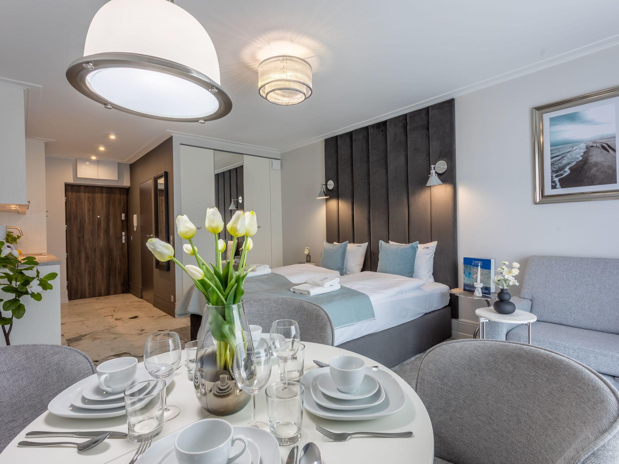 It consists of a living, dining and sleeping area, fully equipped kitchenette and bathroom. Its total area is 29 m2, which is perfectly complemented by a balcony - the perfect place to drink your favourite coffee in the morning. The flat combines luxury and sensuality with a touch of lightness - the furnishings are expressive yet harmonious and very sublime. It certainly encourages you to stay longer and allows you to spend your free time comfortably after all-day trips by the sea in a spirit of opulence and elegance. Here, every day is like an exciting cruise, after which you land in the harbour to ... recharge your batteries for new adventures. An ideal place for people who want to feel the real atmosphere of the sea.