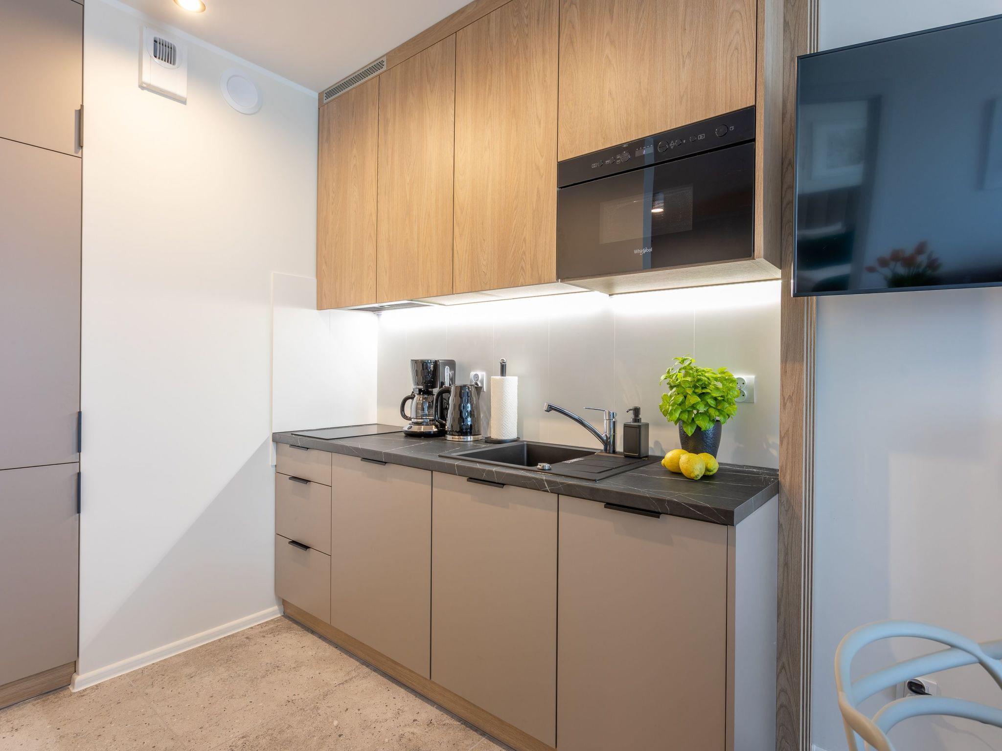 The location of the flat is also unique: it is in the immediate vicinity of the promenade (approx. 500 m) and next to a park with a well-equipped playground for children. There are also famous shops, bars, cafés and restaurants nearby, where you can drink aromatic coffee or taste local specialities and buy beautiful amber souvenirs.