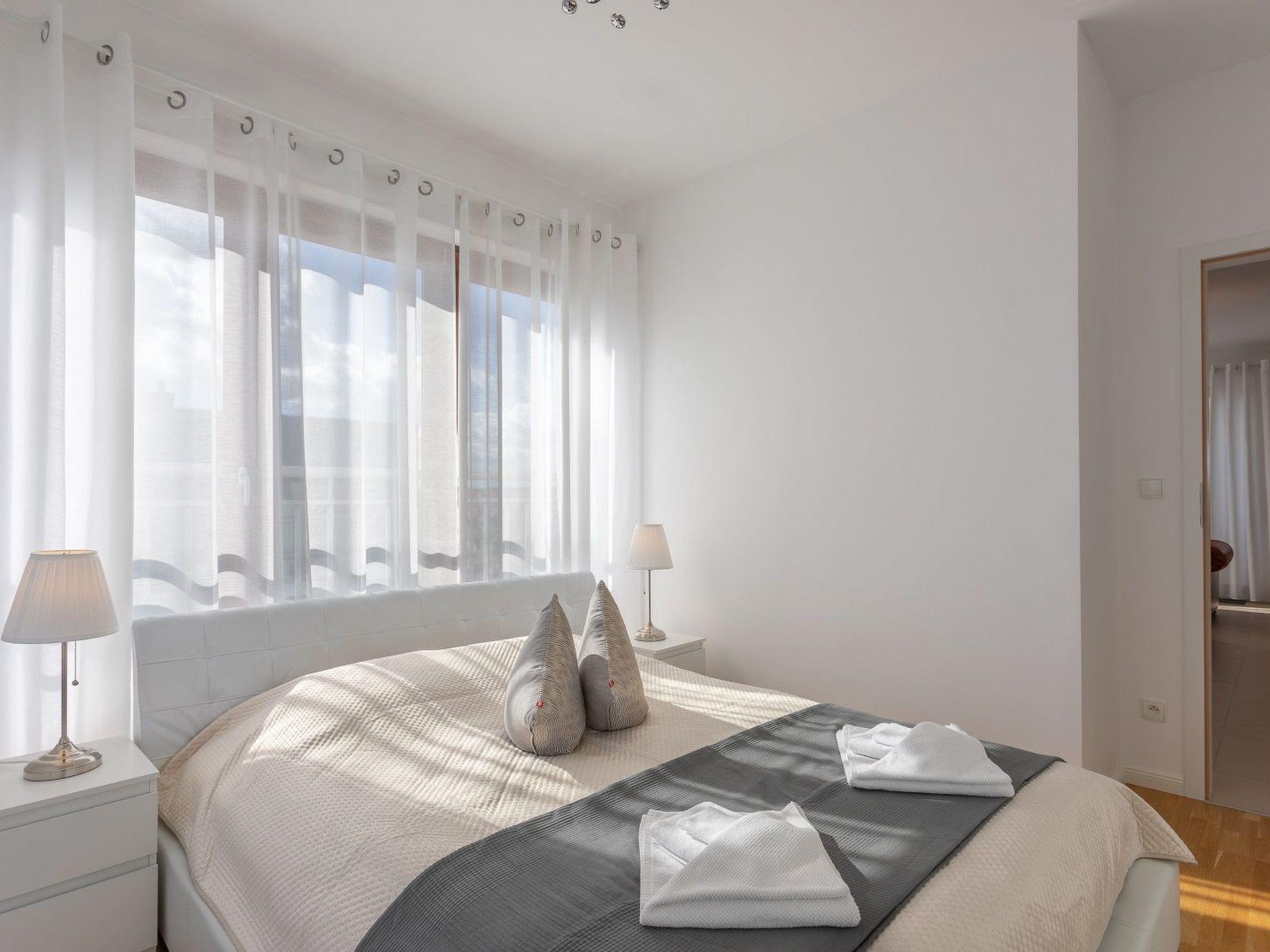 The "Glamour" flat in Swinoujscie is located in a quiet neighbourhood in a modern building that was completed in 2010 and is part of the "Platan Complex" complex. In the immediate vicinity of the "Platan Complex" there is a fitness studio, a Thai massage studio and a bicycle hire centre. There are shops such as Biedronka supermarket and LIDL nearby, as well as a wide range of bars and restaurants. The flat is also just 700 metres from the German-Polish border crossing. The nearby UBB train station also makes it easy for you to travel to Germany.