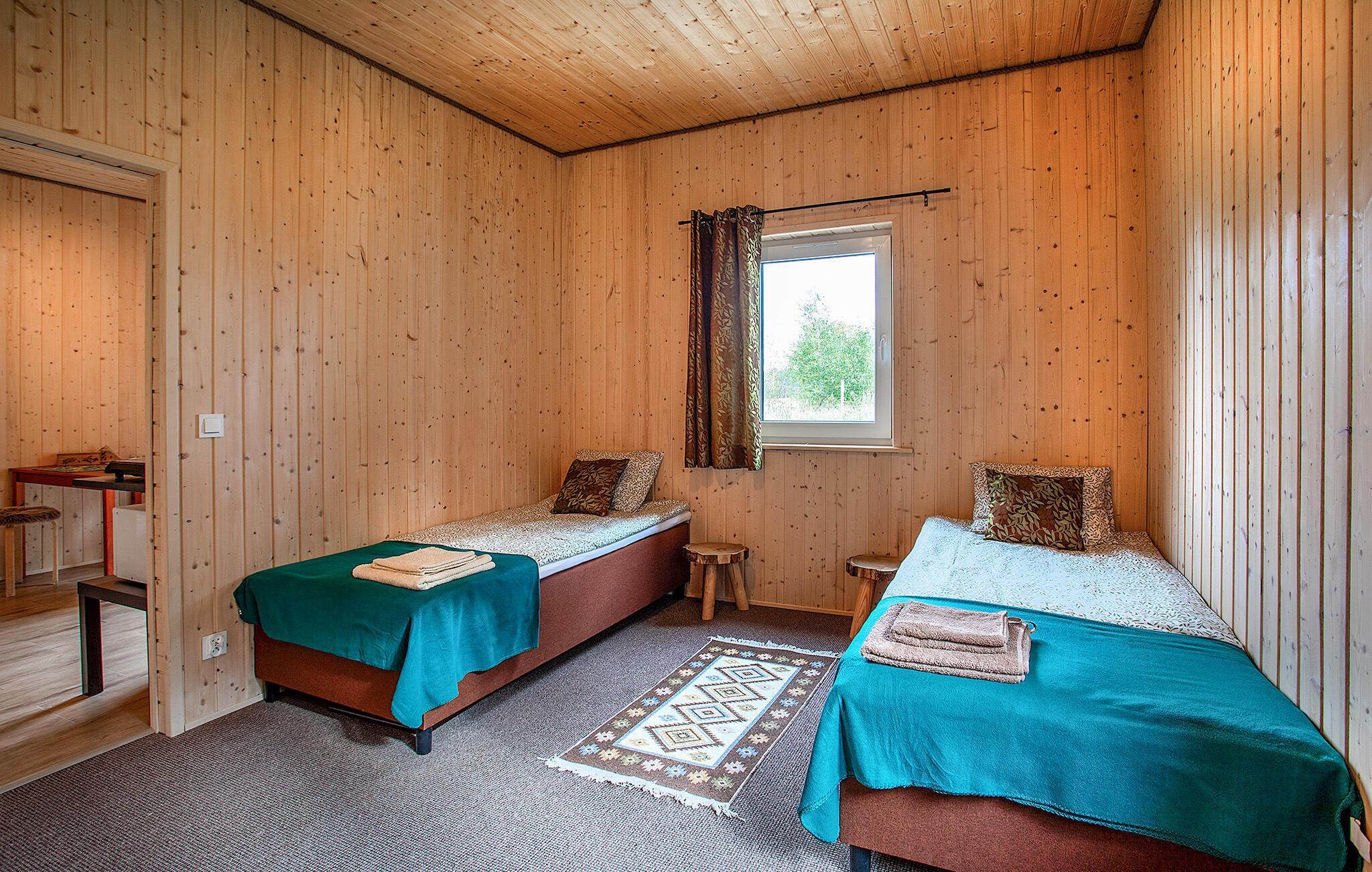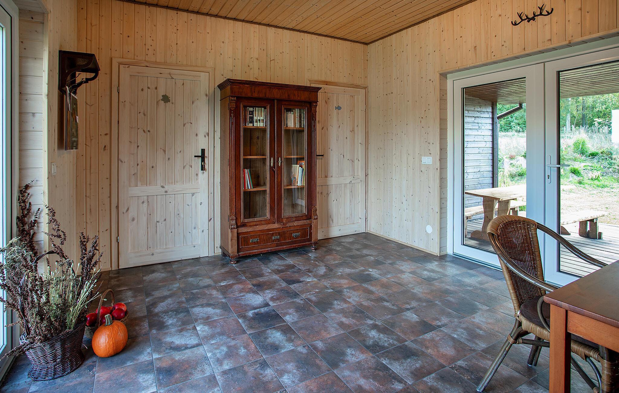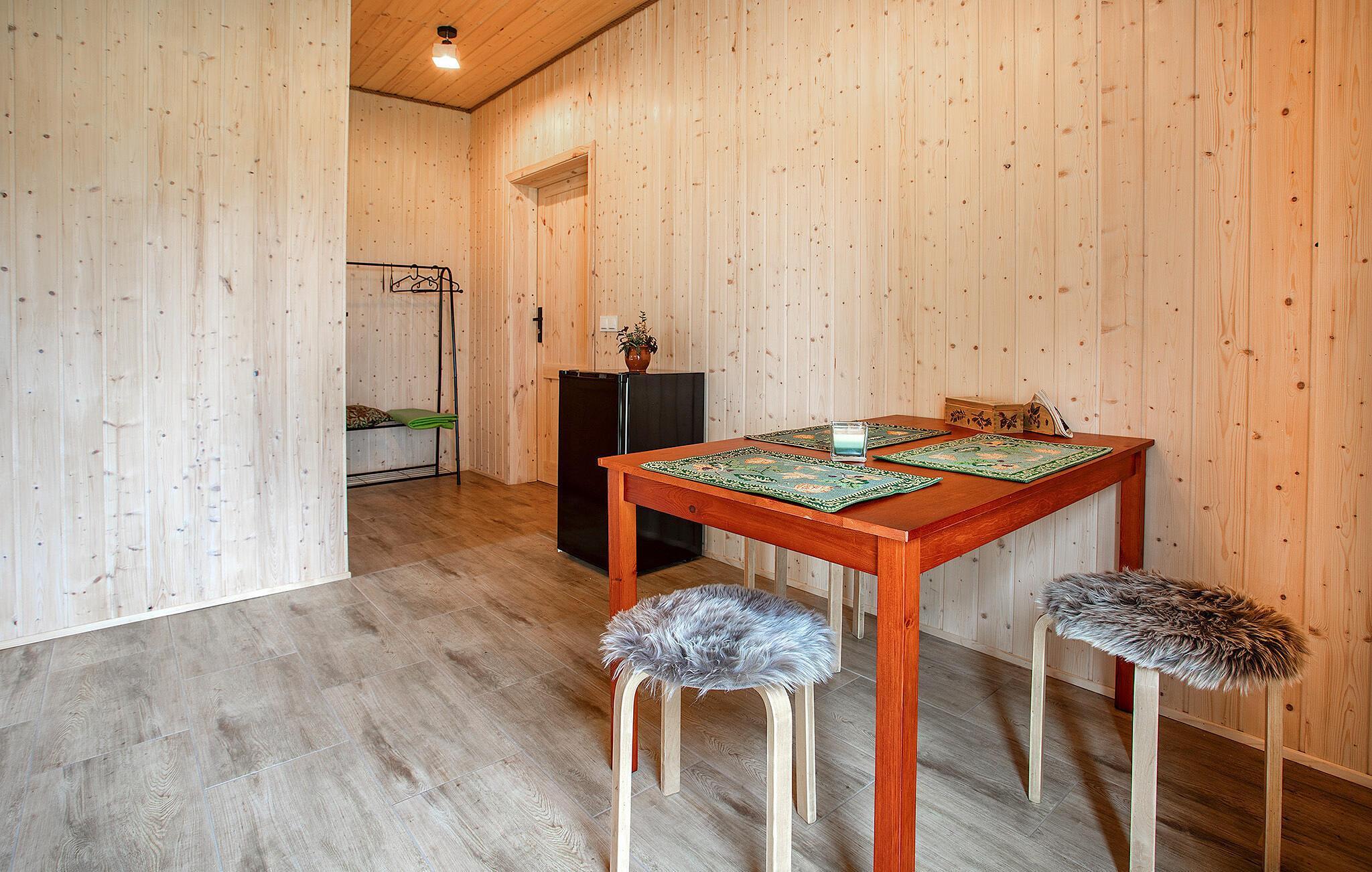 Denne ferieleiligheten venter på deg i landlige omgivelser som en del av en agriturisme. Det koselige og naturlige interiøret er inspirert av Tuchola-skogen, som omgir huset på alle kanter. Fordyp deg i innredningen i tre i brune og grønne nyanser. Den varme atmosfæren skaper en umiddelbar følelse av velvære. Nyt måltidene sammen, og fra ferieleiligheten har du utsikt over skogen, hagen, åkrene, engene og en dam.