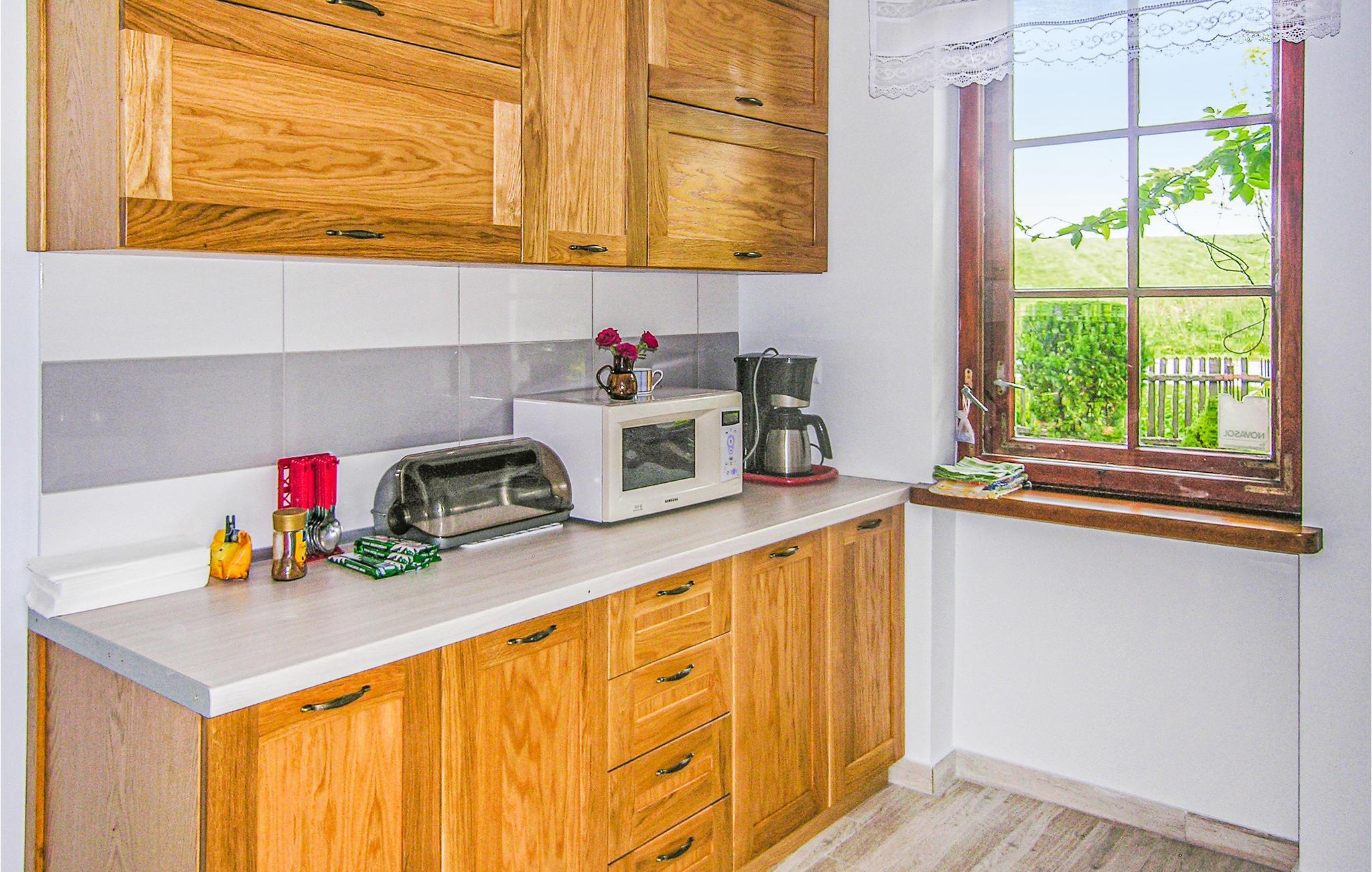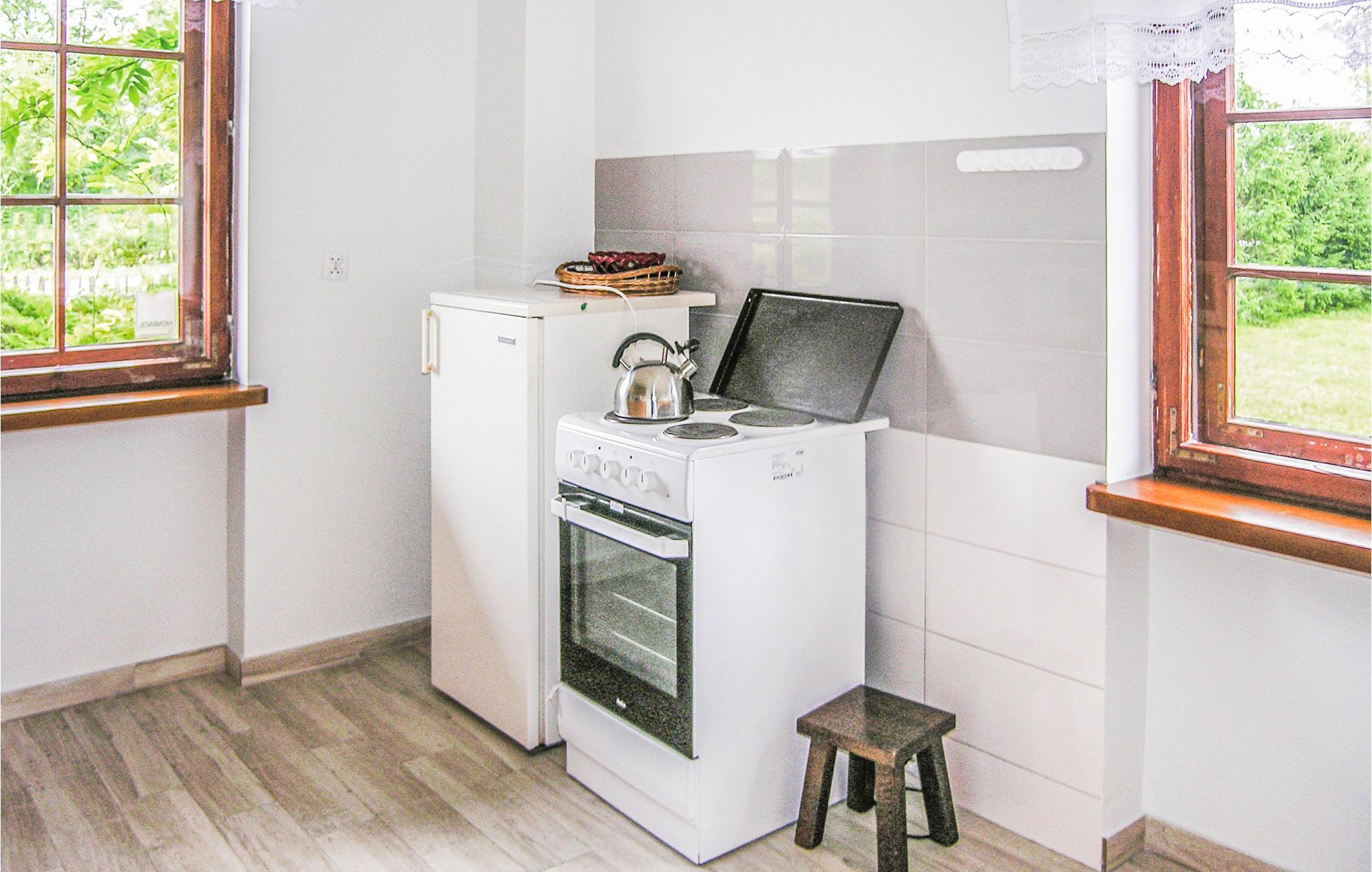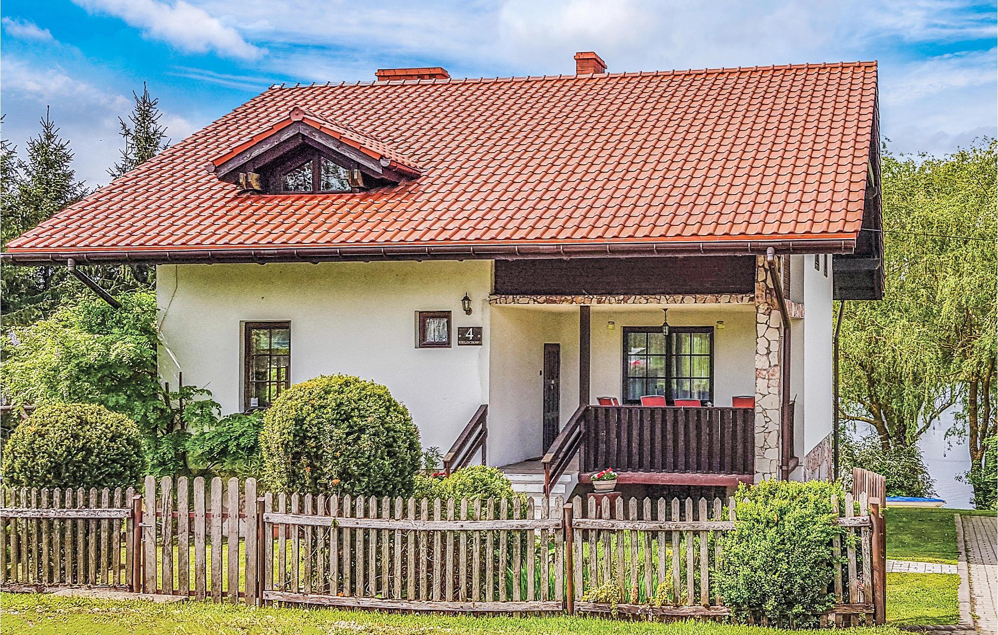 Feriebolig i landsbyen Wielochowo. Feriehuset ligger på en delvis inngjerdet tomt direkte ved innsjøen. Det er en privat brygge for bading. Huset er godt innredet med både eldre og moderne møbler. Du kan slappe av med familie og venner i fred og ro på den vakkert anlagte tomten. Det er også en grill og hagemøbler for sosialt samvær. Liker du å være aktiv på ferien? Da kan du leie båt eller kano. Den velkjente sykkelstien Green Velo passerer også i nærheten. Termy Warmiskie svømmehall ligger ikke langt unna.