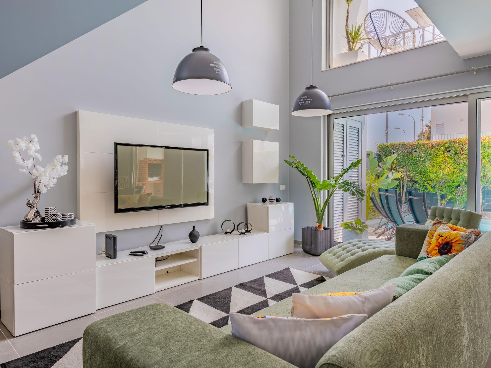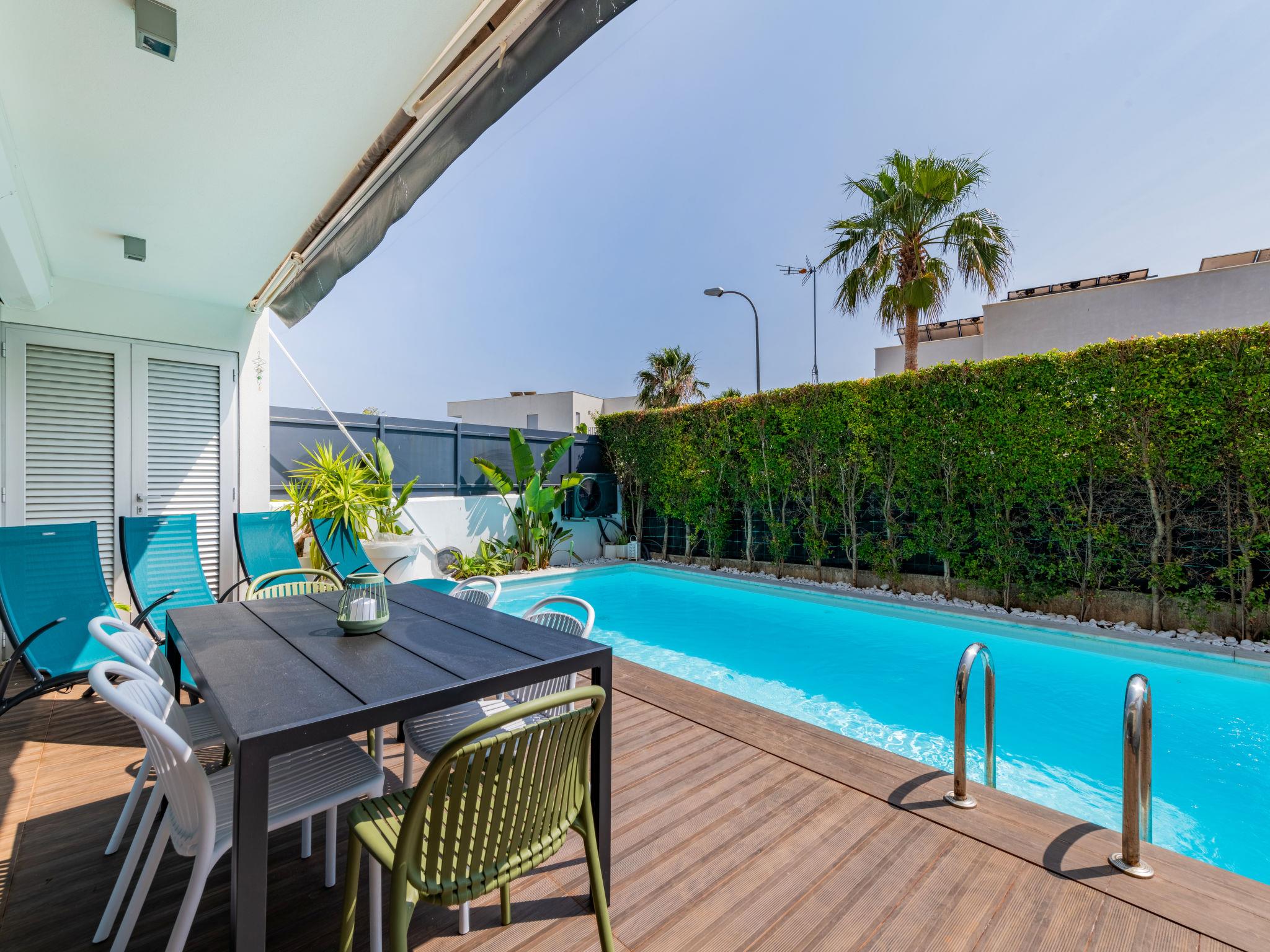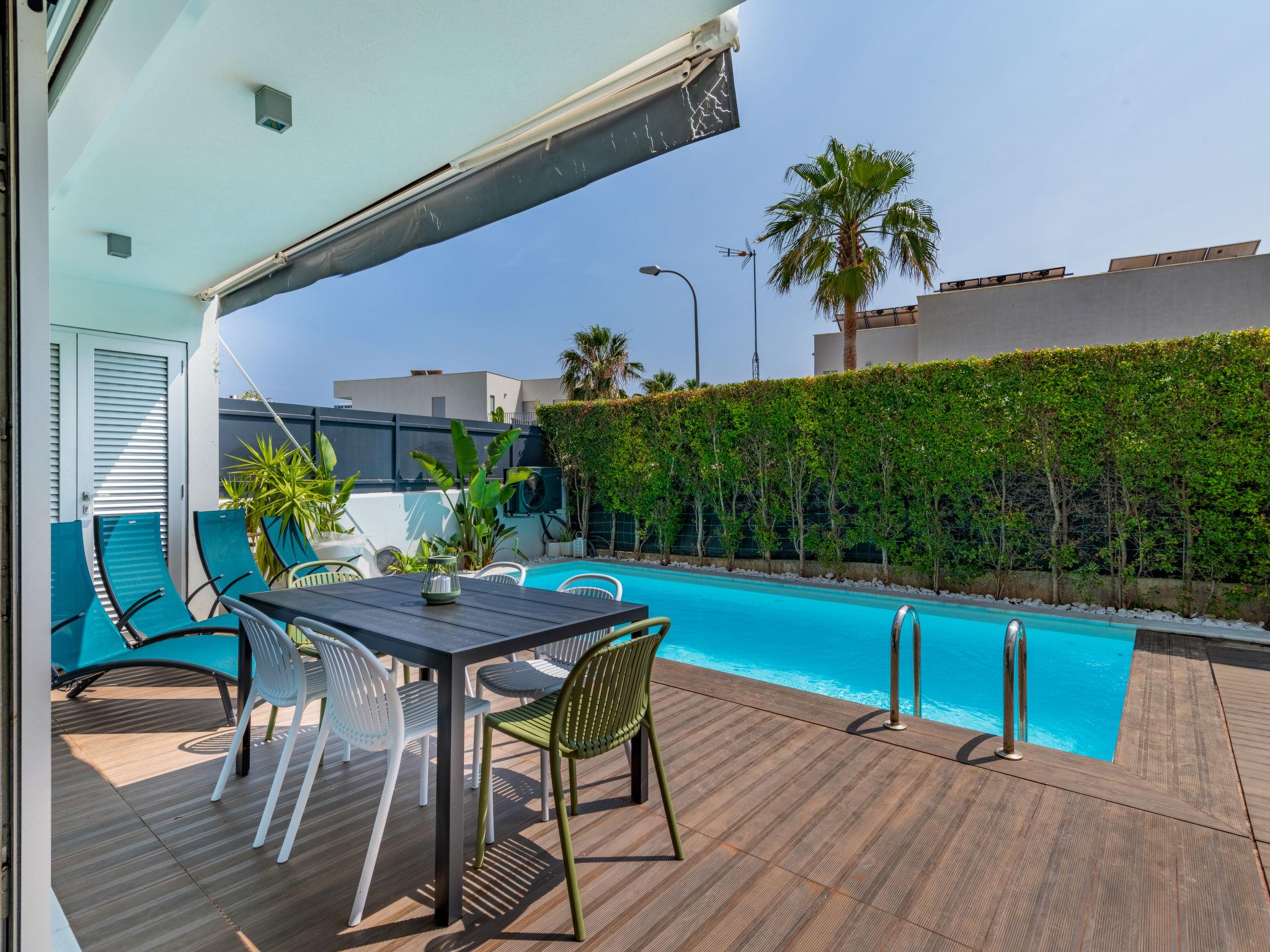 Very modern, comfortable terraced house "Miguel VIP Properties". In the resort 2.1 km from the centre of Albufeira, 1.7 km from the sea. Private: swimming pool angular, heated (4 x 6 m, depth 110 - 110 cm, seasonal availability: 01.Jan. - 31.Dec.). In the house: WiFi, air conditioning, drying room. Parking (for 2 cars). Grocery, supermarket 250 m, shopping centre 1.1 km, restaurant 350 m, bar 800 m, bakery, café 250 m, bicycle rental 2.9 km, bus stop 220 m, railway station 5.5 km, sandy beach "Praia da Oura" 1.7 km, diving center 5.5 km. Marina 5.9 km, golf course (18 hole) 4.8 km, surf school 10.1 km, riding stable 10.3 km, children's playground 1.2 km. Nearby attractions: Adventure Mini Golf Park 1 km, Zebra Safari Tours 2.9 km, Algarve Shopping 9.4 km, Zoomarine 10.6 km, Krazy World 15.3 km, Faro Airport 35.3 km. Well-known lakes can easily be reached: Lagoa dos Salgados 13.4 km. Please note: Loading and unloading of baggage is possible at the holiday house. The owner does not accept young groups.