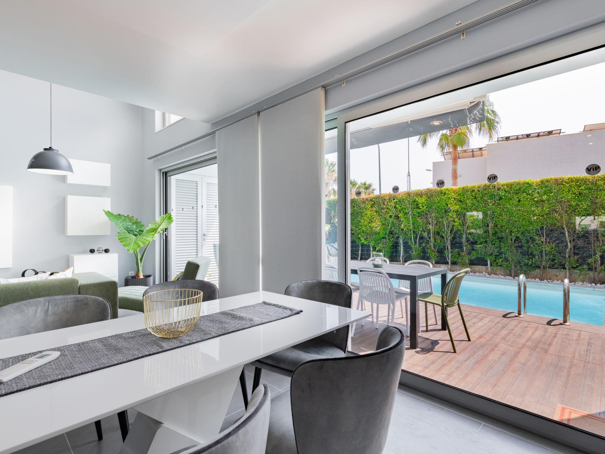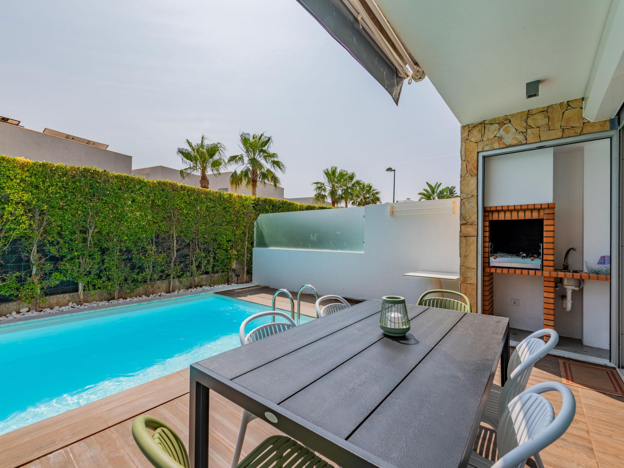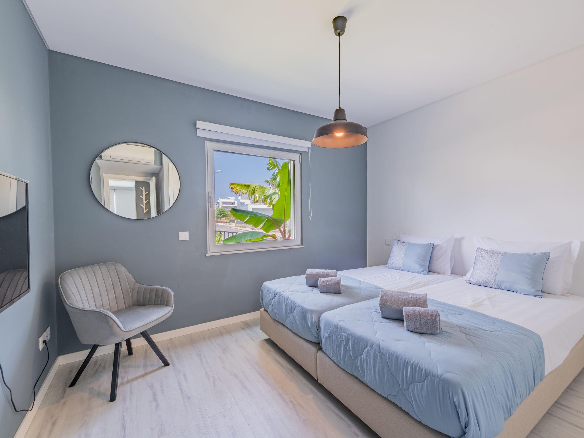 Very modern, comfortable terraced house "Miguel VIP Properties". In the resort 2.1 km from the centre of Albufeira, 1.7 km from the sea. Private: swimming pool angular, heated (4 x 6 m, depth 110 - 110 cm, seasonal availability: 01.Jan. - 31.Dec.). In the house: WiFi, air conditioning, drying room. Parking (for 2 cars). Grocery, supermarket 250 m, shopping centre 1.1 km, restaurant 350 m, bar 800 m, bakery, café 250 m, bicycle rental 2.9 km, bus stop 220 m, railway station 5.5 km, sandy beach "Praia da Oura" 1.7 km, diving center 5.5 km. Marina 5.9 km, golf course (18 hole) 4.8 km, surf school 10.1 km, riding stable 10.3 km, children's playground 1.2 km. Nearby attractions: Adventure Mini Golf Park 1 km, Zebra Safari Tours 2.9 km, Algarve Shopping 9.4 km, Zoomarine 10.6 km, Krazy World 15.3 km, Faro Airport 35.3 km. Well-known lakes can easily be reached: Lagoa dos Salgados 13.4 km. Please note: Loading and unloading of baggage is possible at the holiday house. The owner does not accept young groups.