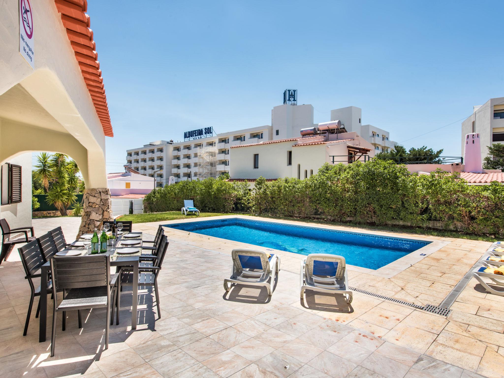 Very cosy, comfortable villa "Corcovada V4 VIP Properties". In the resort 2.8 km from the centre of Old Town of Albufeira, 1.2 km from the sea. Private: swimming pool angular, heated (4 x 8 m, depth 90 - 200 cm, seasonal availability: 01.Jan. - 31.Dec.). Outdoor shower. In the house: WiFi, billiard table, table football, air conditioning, washing machine. Parking at the house. Shop 800 m, grocery 400 m, supermarket 200 m, shopping centre 1.9 km, restaurant 190 m, bar 700 m, bakery, café 400 m, bicycle rental 3.4 km, bus stop 290 m, railway station 5.6 km, sandy beach "Praia da Oura" 1.4 km, diving center 6.2 km. Marina 5.3 km, golf course (18 hole) 2.2 km, surf school 10.8 km, sailing school 16 km, minigolf 1.6 km, riding stable 11.1 km, children's playground 2 km. Nearby attractions: Adventure Mini Golf Park 1.6 km, Zebra Safari Tours 1 km, Electric Karting Albufeira Marina Albuf 6.3 km, Algarve Shopping in Guia 10.2 km, Zoomarine 11.7 km, Faro Airport 39 km. Well-known lakes can easily be reached: Lagoa dos Salgados 14.1 km. Young groups under 25 y.o. will be charged an extra deposit per person on spot. The pool heating service (20ºC-22ºC) must be informed to the KH one week before of your arrival.