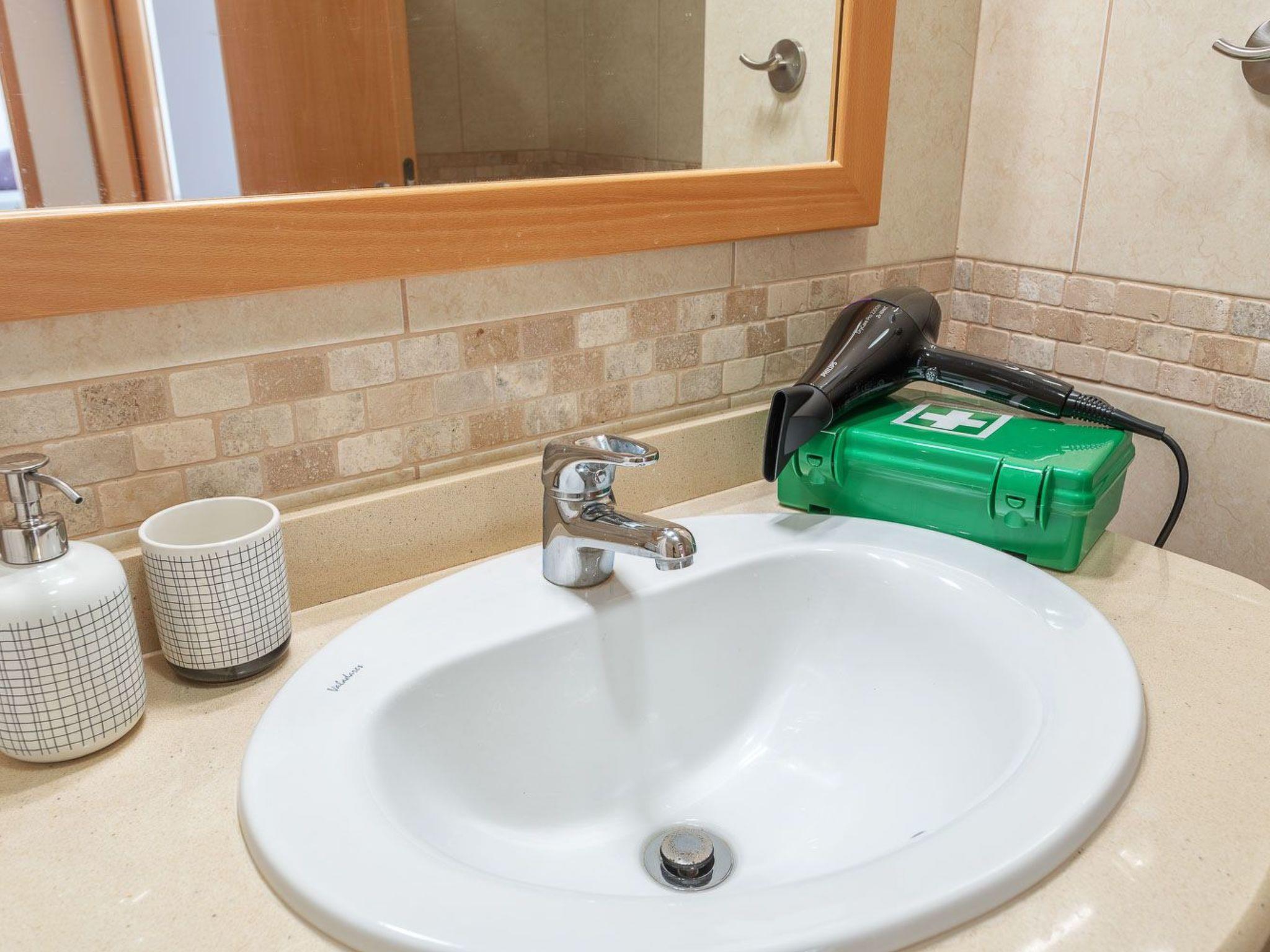 First aid kit in apartment is equipped with thermometer and all the necessities.