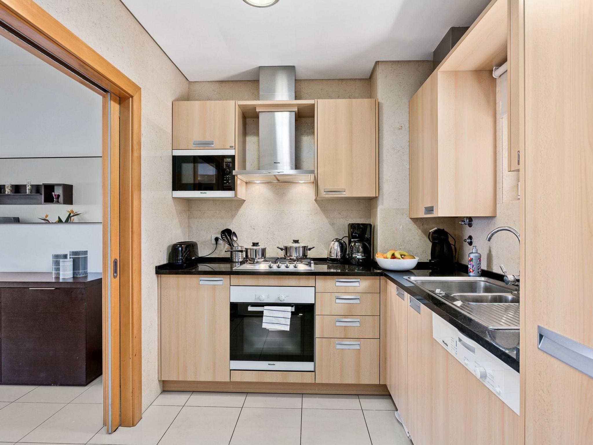 Inside, you'll find a convenient array of amenities ensuring a hassle-free stay. The apartment is equipped with air conditioning throughout, guaranteeing comfort during those warm Algarve days and nights. For those extended stays or simply to take care of your laundry needs, a washing machine and clothes dryer are provided for your sole use. The kitchen comes fully equipped with a dishwasher, coffee machine, and electric kettle, catering to all your dining needs, whether it's a quick breakfast or a more elaborate meal.